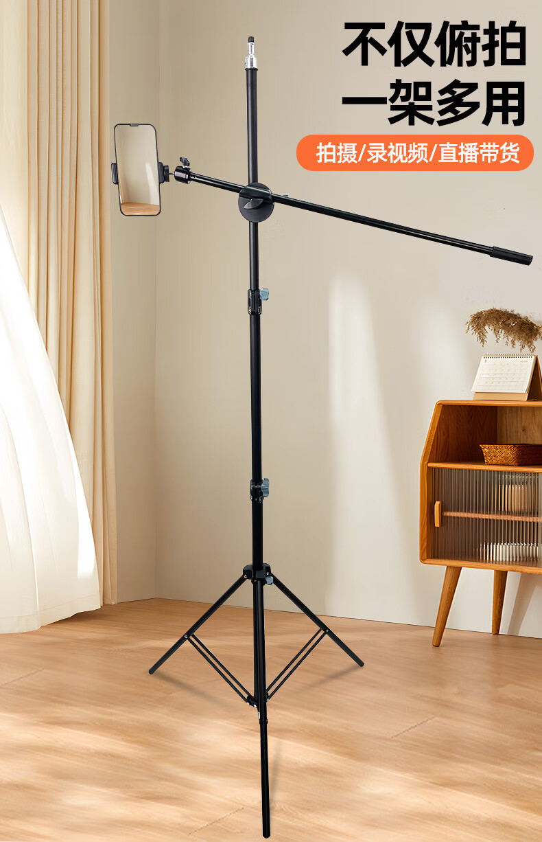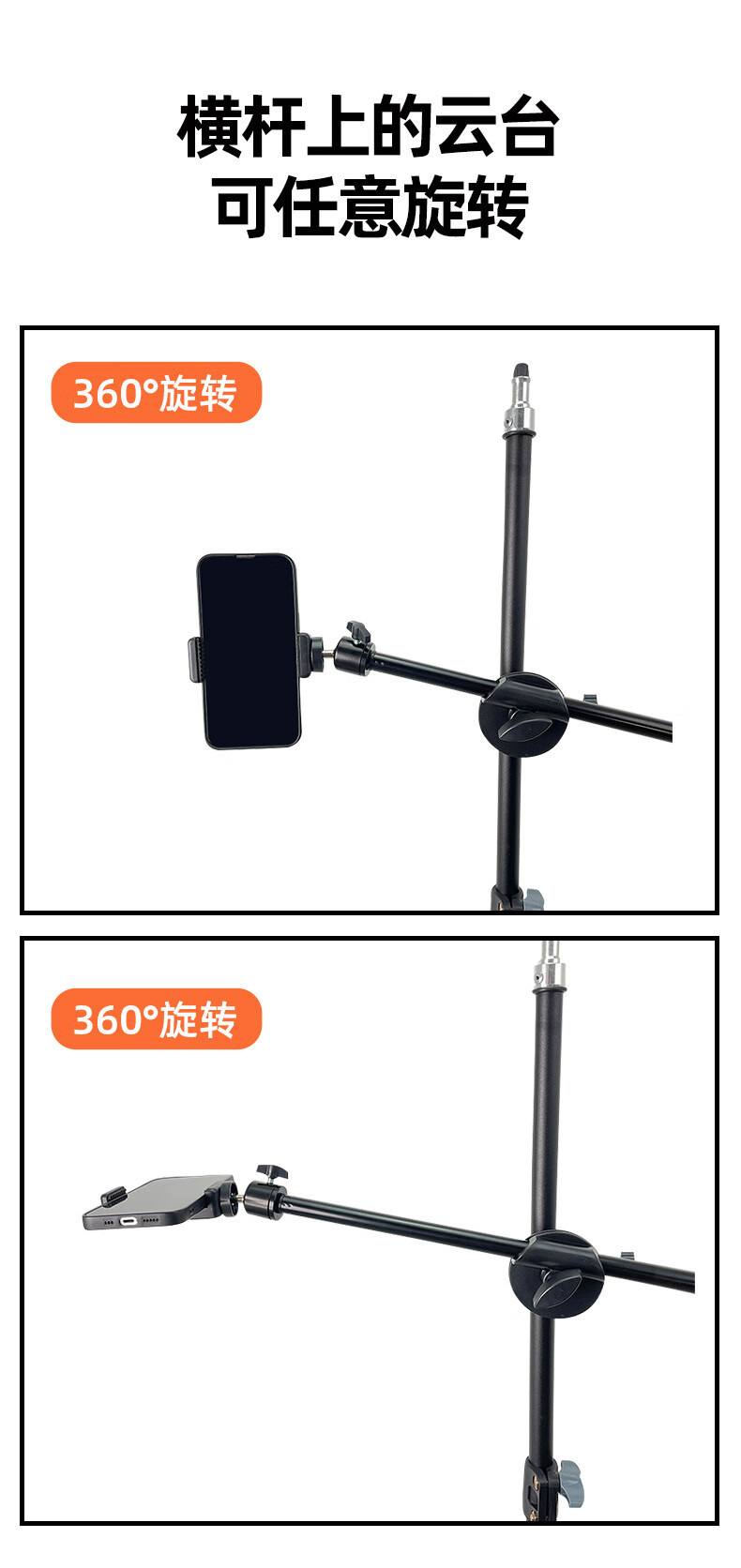 YONGEER metal crossbar floor-standing overhead shooting mobile phone live broadcast photography bracket extension rod cross-arm mobile phone stretch clamp crossbar bracket mobile phone clip crossbar bracket + pan/tilt + mobile phone clip