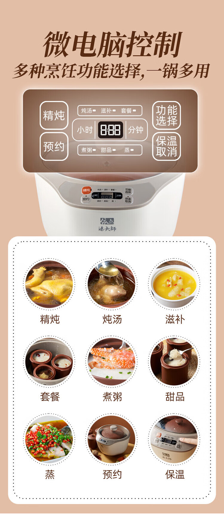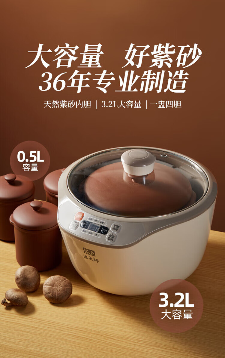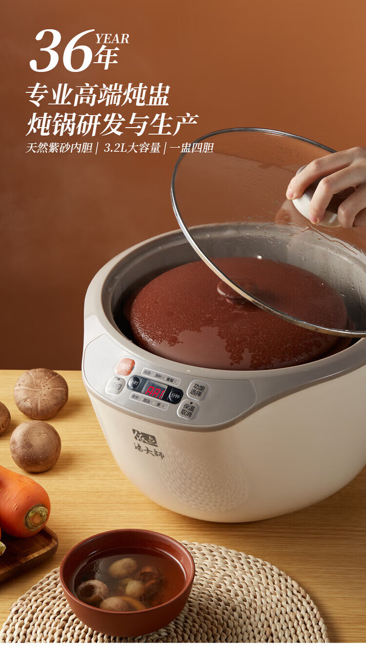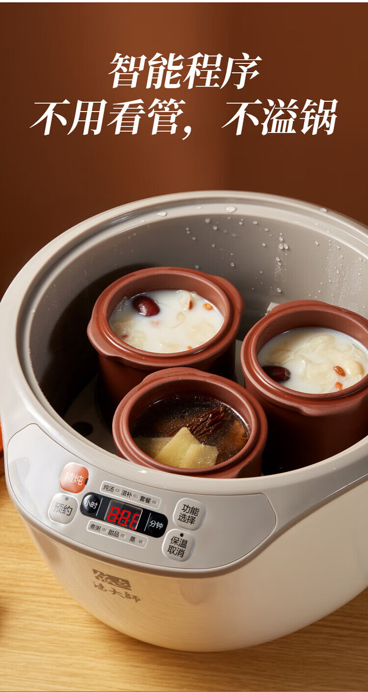 Yili electric stew pot, electric stew pot, stew pot, 4-person household water-proof stew pot, electric casserole, purple casserole, porridge pot, stew rice, health artifact, scheduled time, one pot, 4 gallbladders, 3.2L DZ32-1 3.2L *2-4 people