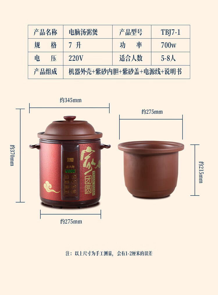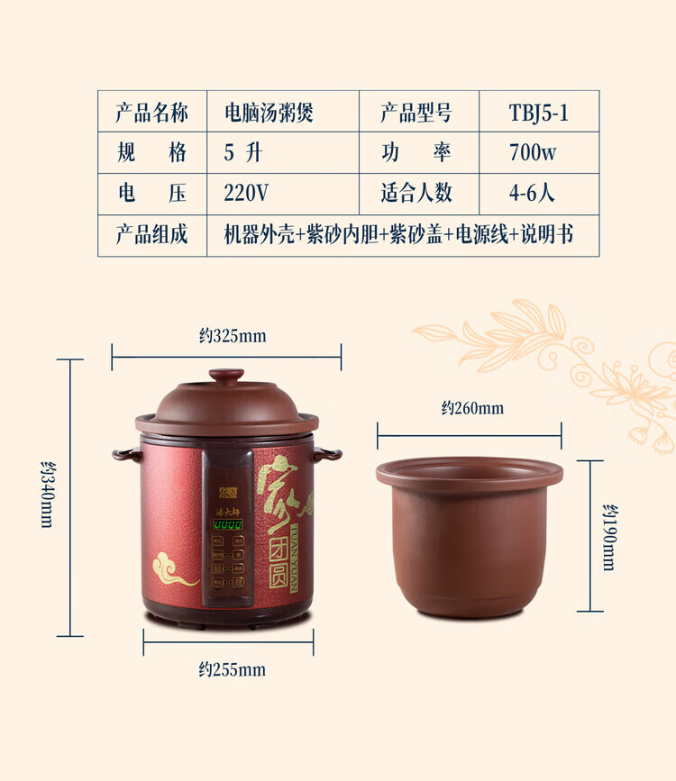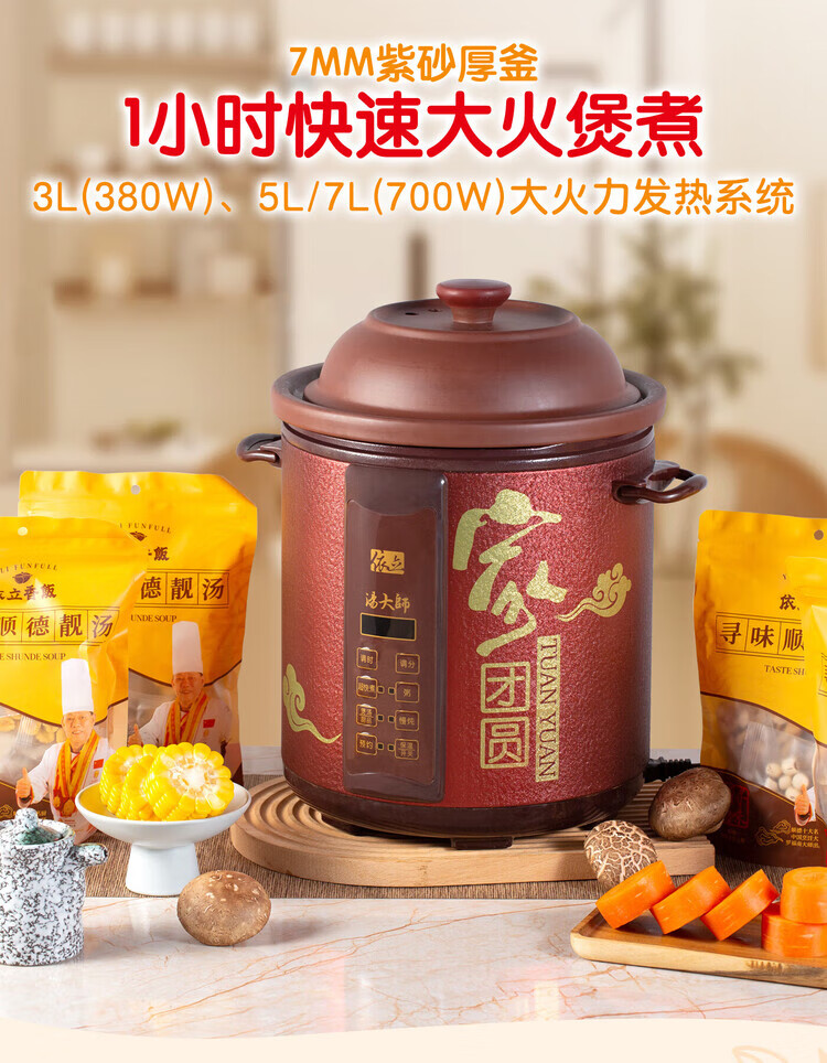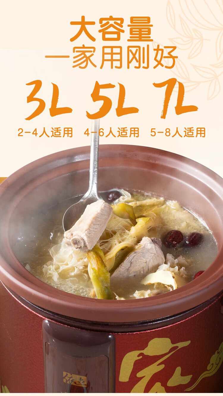 Yili Electric Stew Pot Electric Cooking Pot Quick Stew Soup Pot Electric Casserole High Power Large Capacity Purple Clay Fast Boiling Porridge Artifact Stew Pot Reservation Timing 3L5L7L TBJ5-1 5L *3-5 people