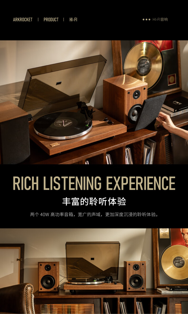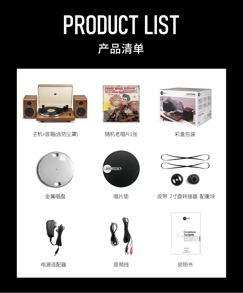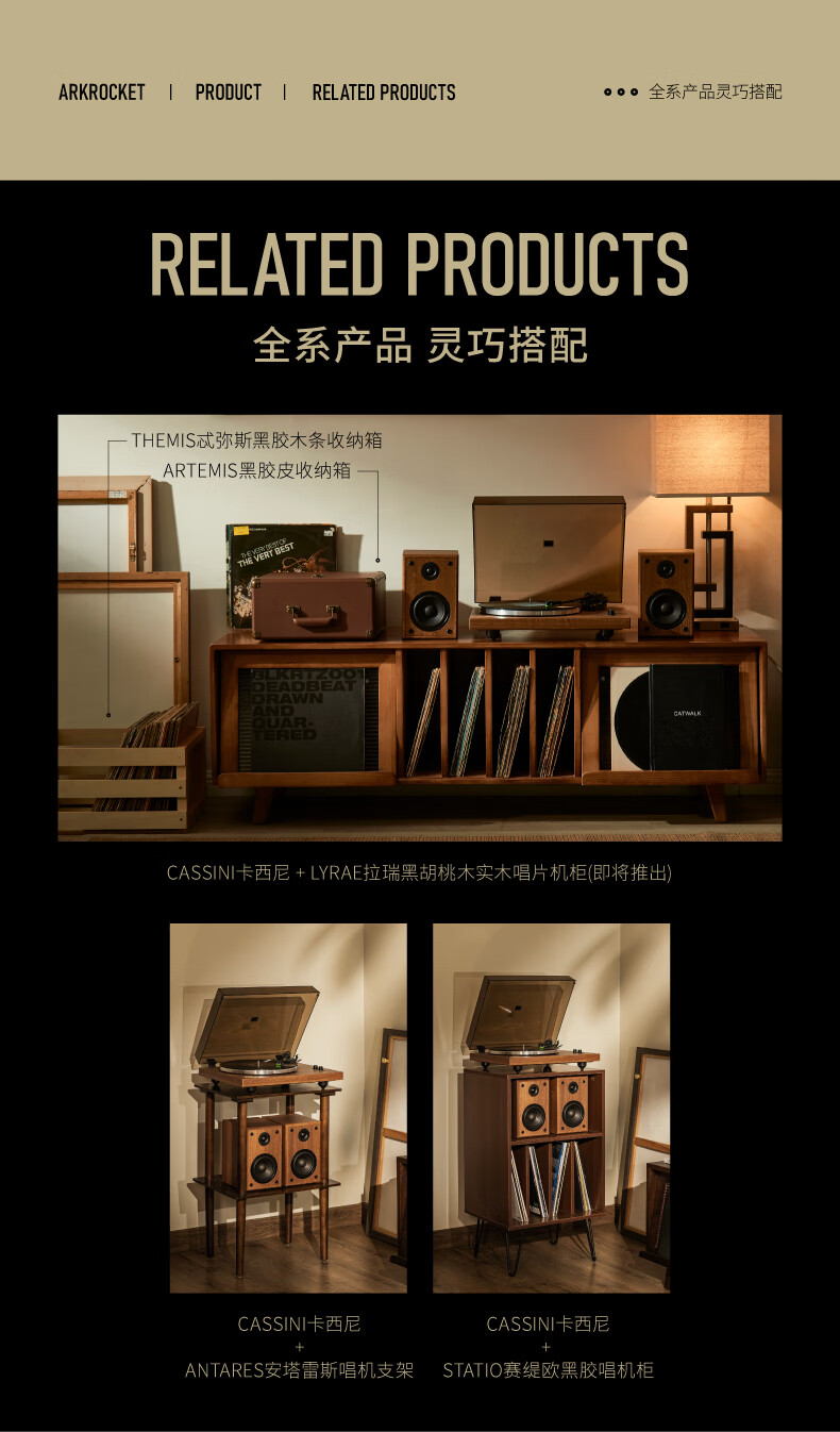 ARKROCKET Cassini CASINI retro Bluetooth vinyl record player professional-grade LP film phonograph split type moving magnetic needle machine with sound Valentine's Day gift ornament walnut color Cassini + cabinet + designated records
