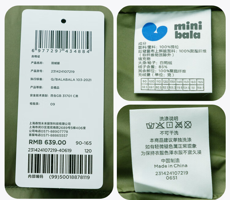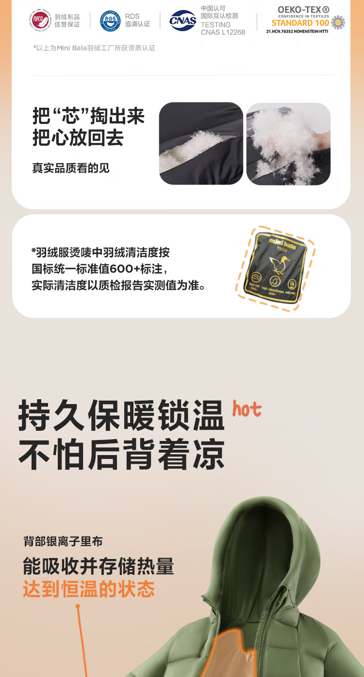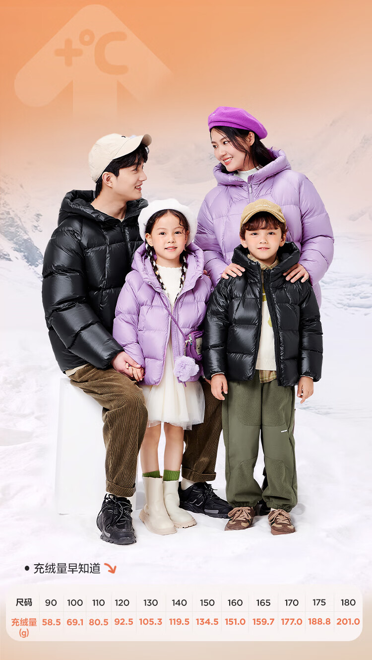 Mini Bala Hot Hi2.0 Winter Heating Down Jacket for Boys and Girls Parent-child Thick Down Jacket Black 90001 110