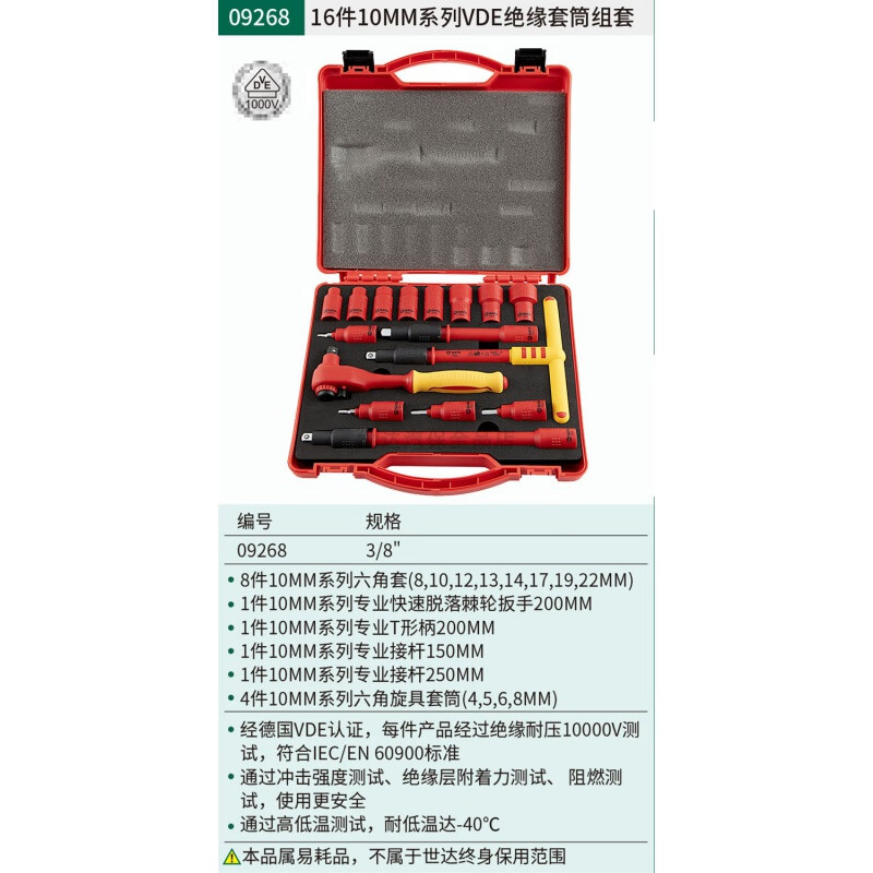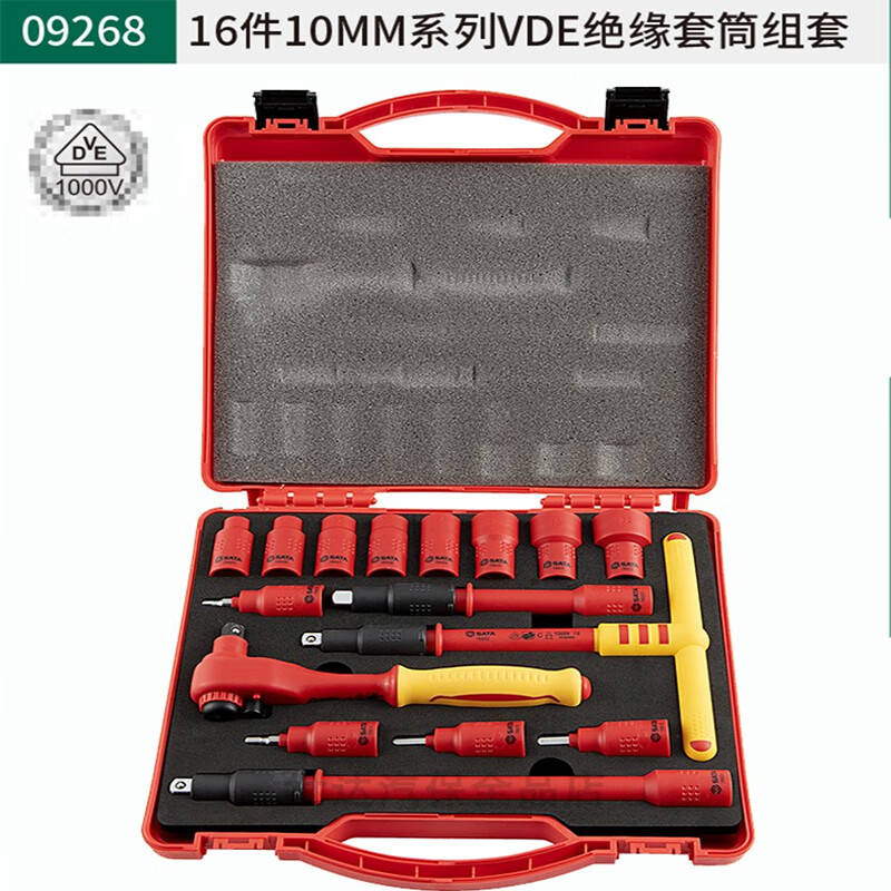 SATA 68-piece tool new energy vehicle repair set electrician insulated auto repair machine repair tool set 09928 16-piece 10MM series VDE insulating sleeve set 09