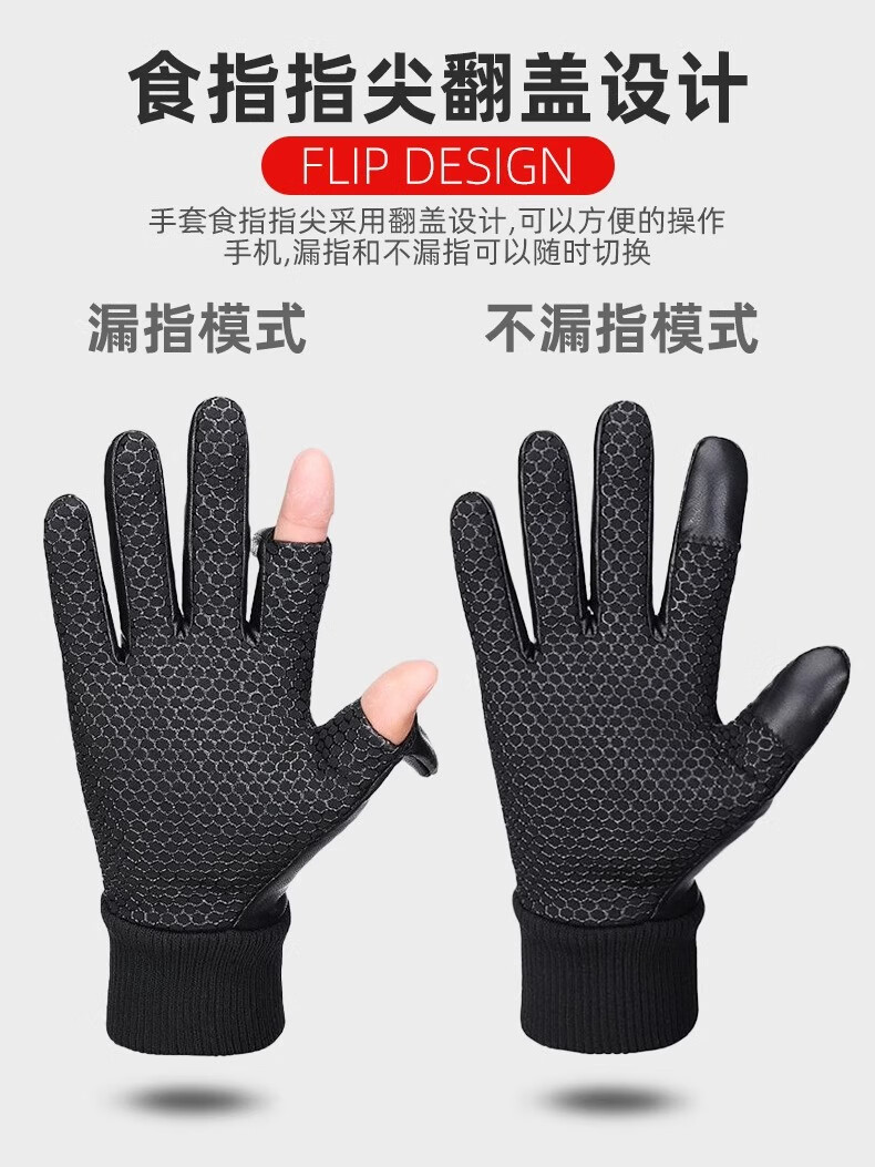 Forest winter fishing gloves, puncture-proof and waterproof, men's professional fly fishing gloves, warm and non-slip lure fishing in winter, full-finger flip fishing gloves, black
