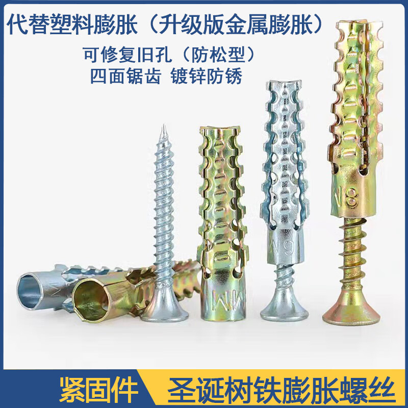 Jaynes Christmas Tree Thorned Sawtooth Gecko Light Anti-loosening Cement Wall Hollow Brick Concrete Wall Metal Expansion Screw Tube 6*32 Tube + Nail 5*40 Long (Punch 8mm) 50 Sets