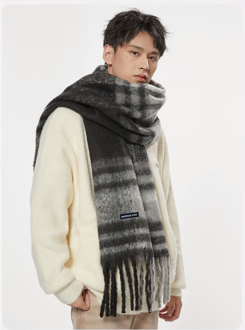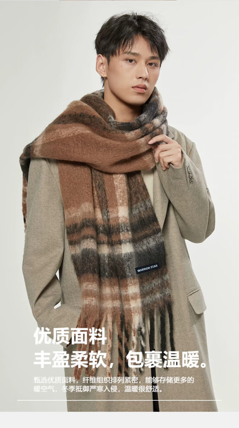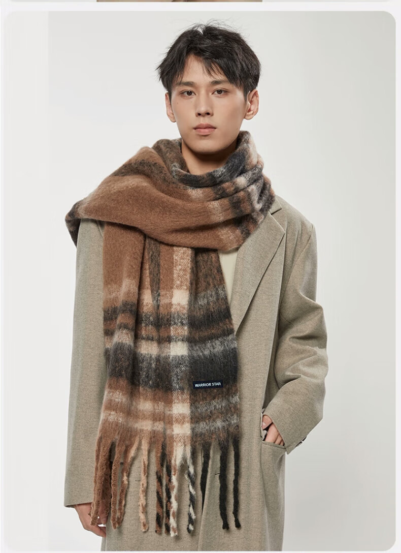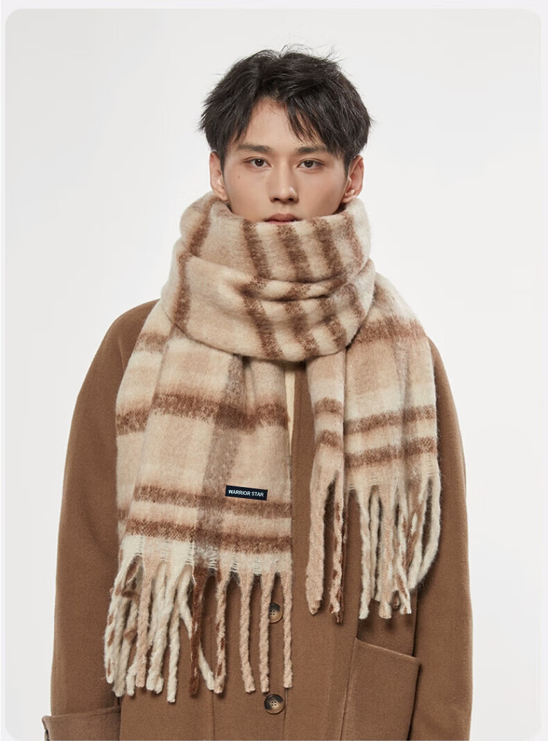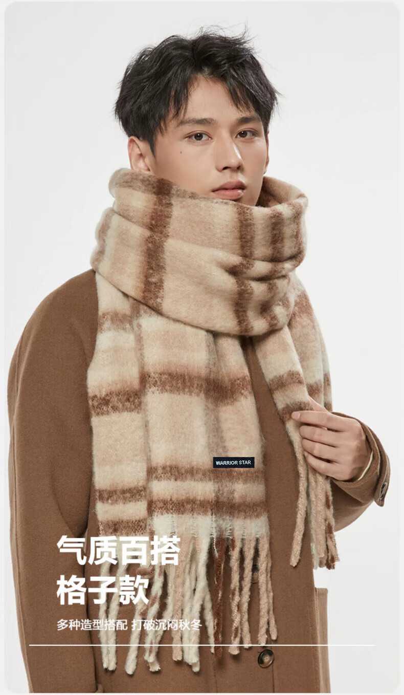 Warrior scarf men's autumn and winter warm and windproof and cold-proof thickened student plaid shawl Korean style lazy style versatile scarf apricot