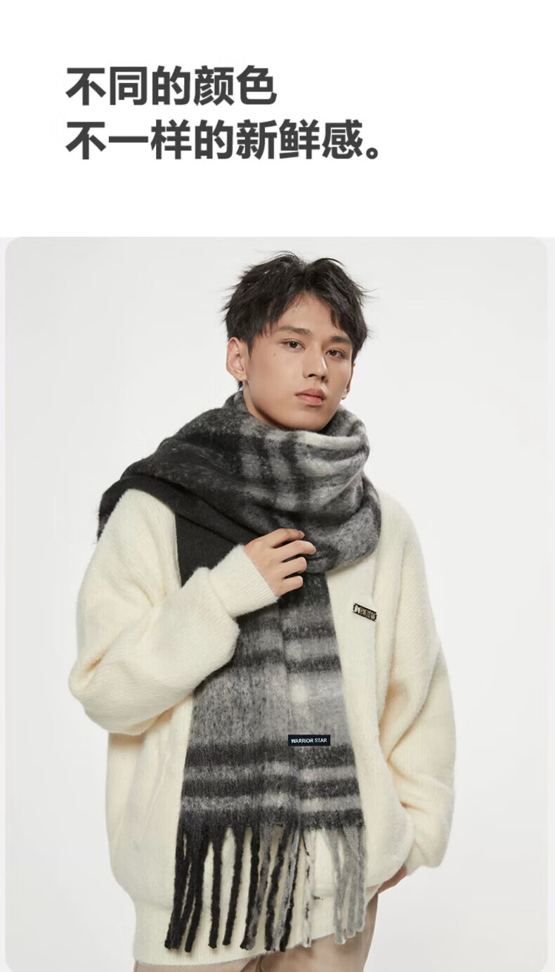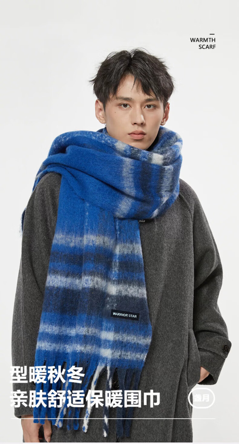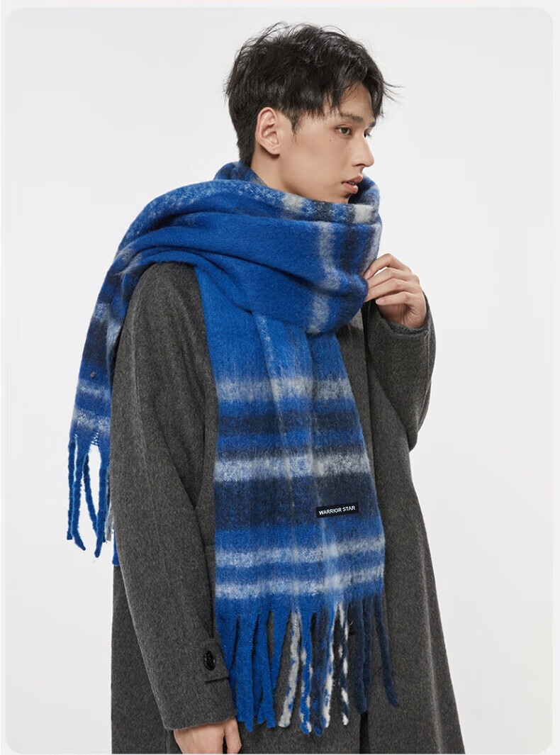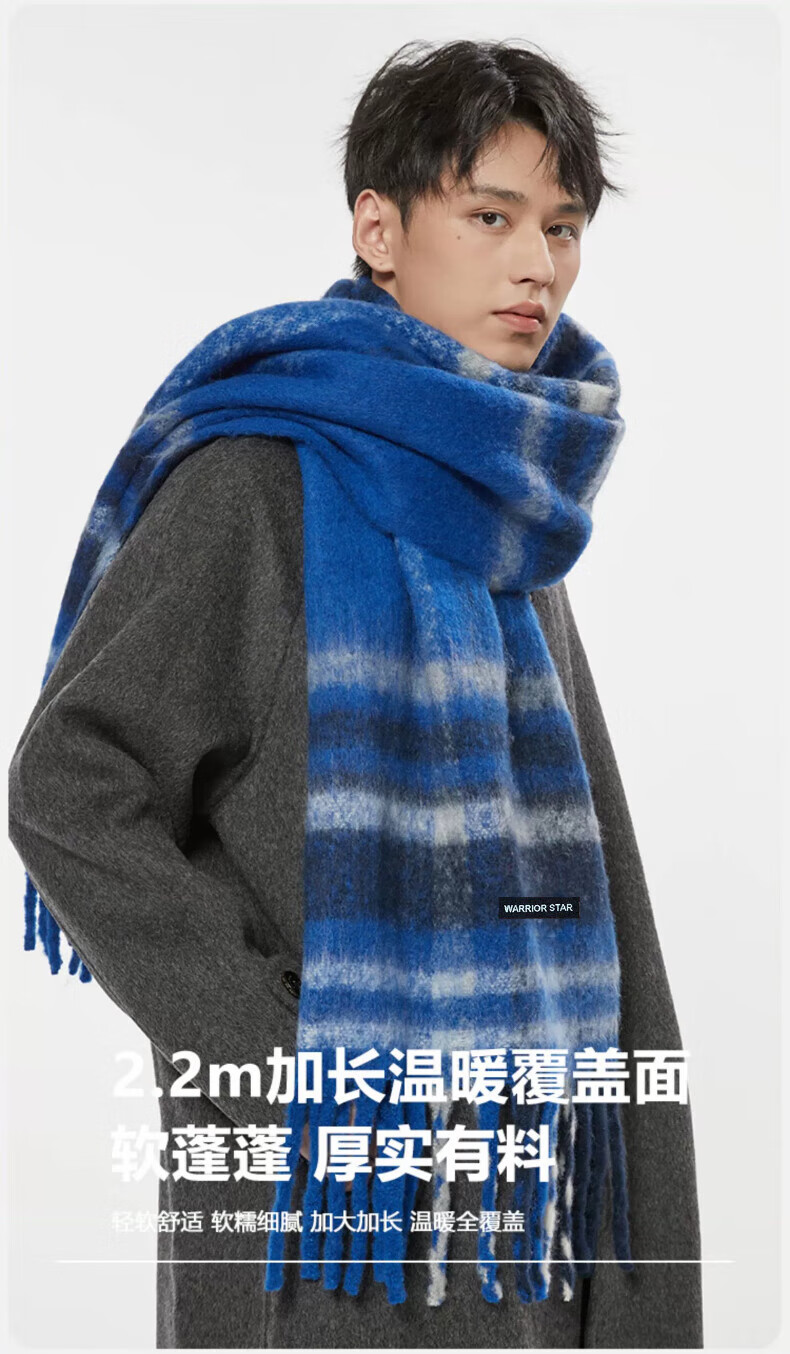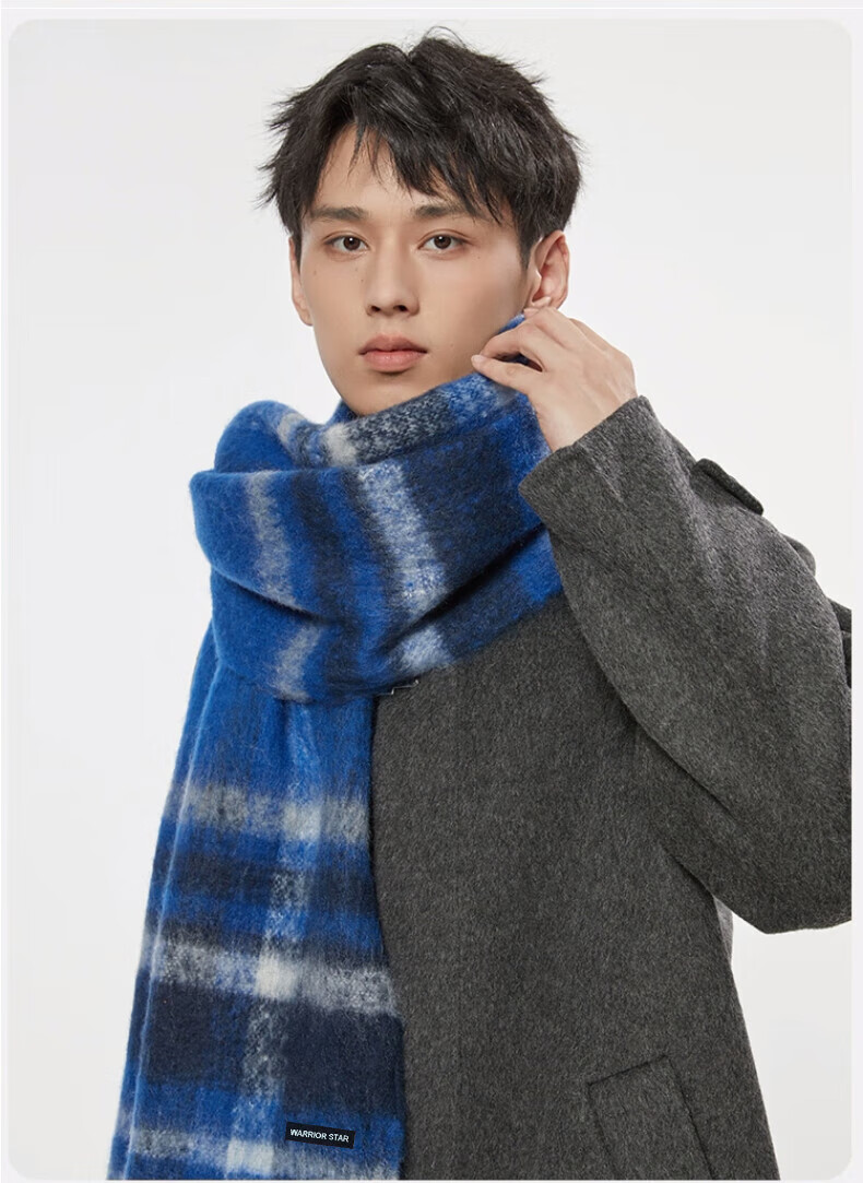 Warrior scarf men's autumn and winter warm and windproof and cold-proof thickened student plaid shawl Korean style lazy style versatile scarf apricot