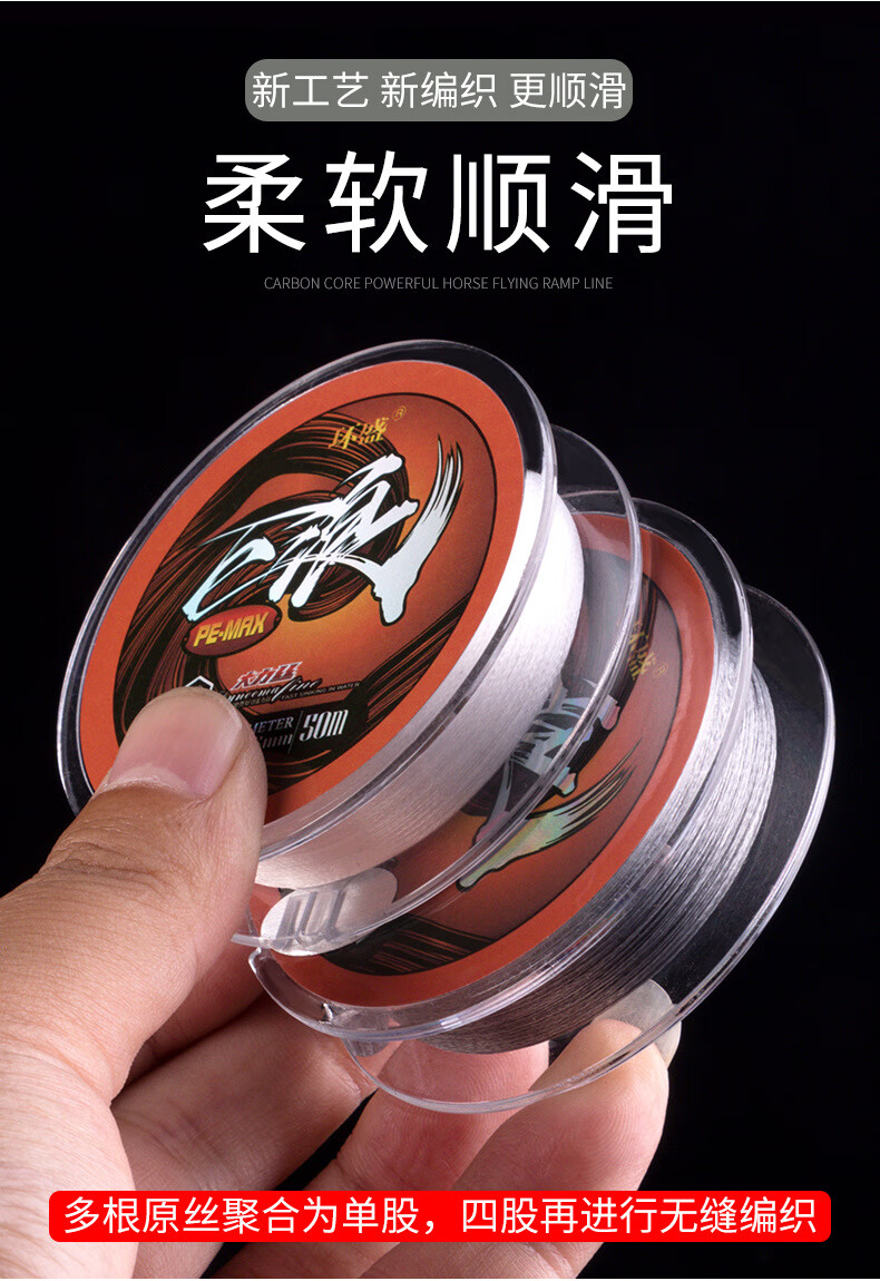 Mermaid imported strong horse fish line sub-line ultra-fine fishing line main line PE line 0.2 Luya micro braided line 50 meters ultra-fine strong horse feather white 0.1
