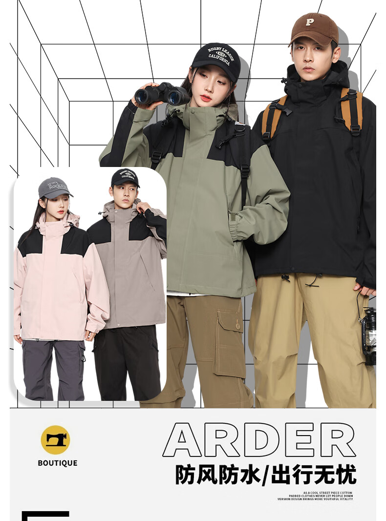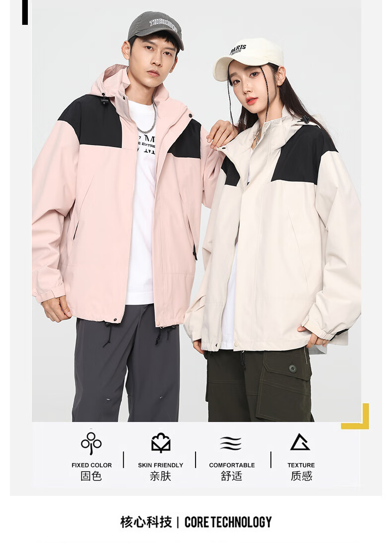 Jeanswest Outdoor Sports Couple Jacket Men's Spring and Autumn Jacket Men's Jacket Women's Waterproof Windbreaker Outdoor Fishing All Seasons Wear Black XL