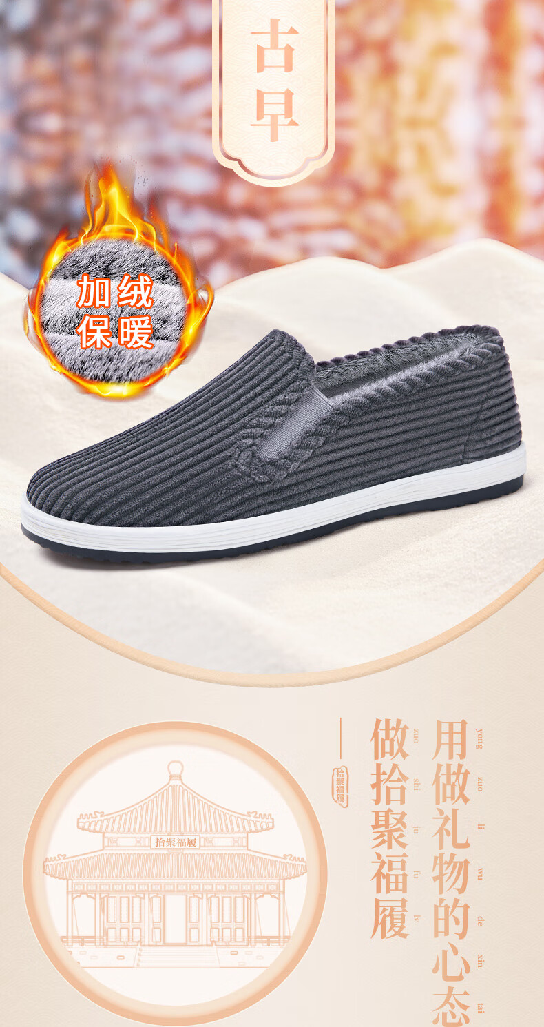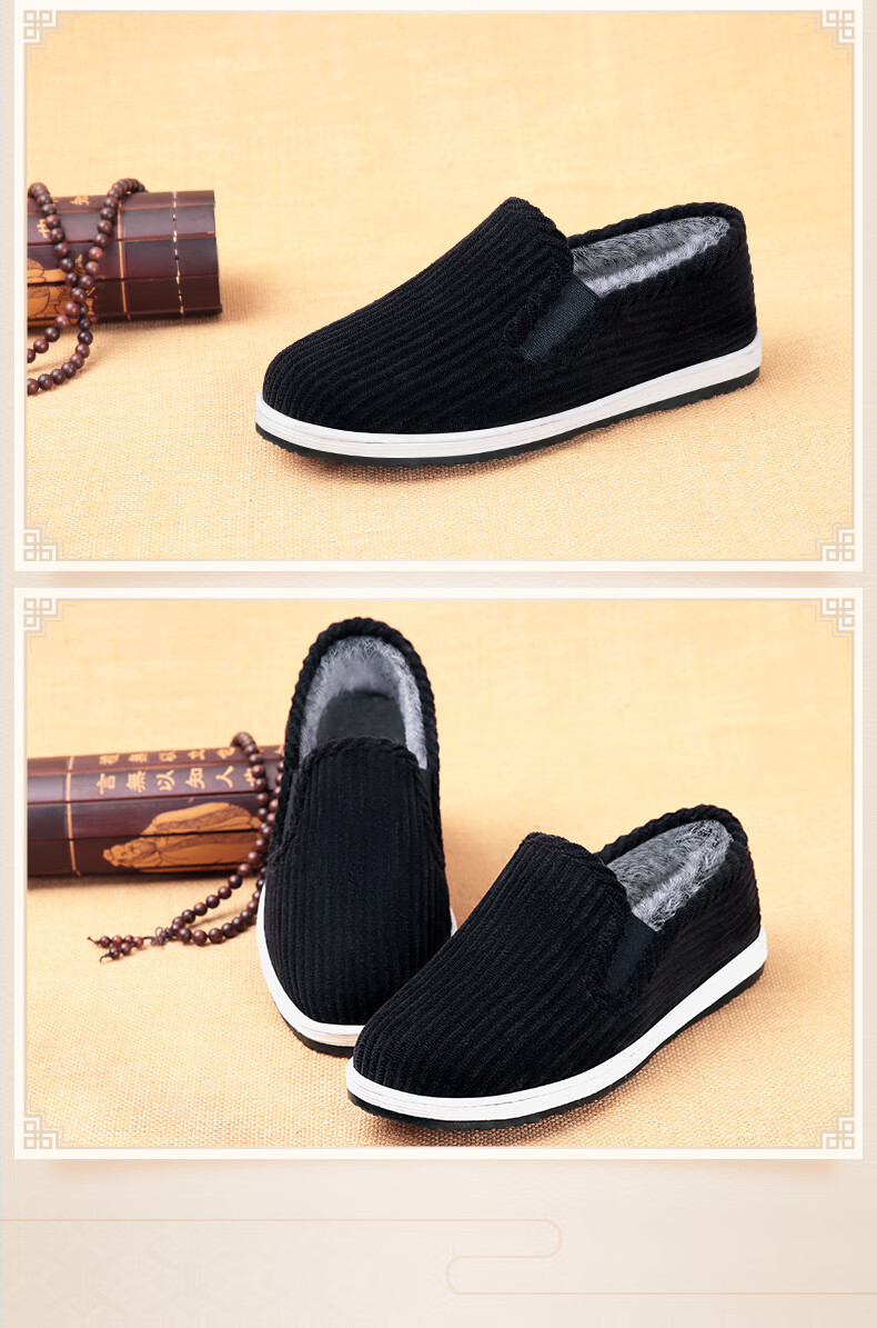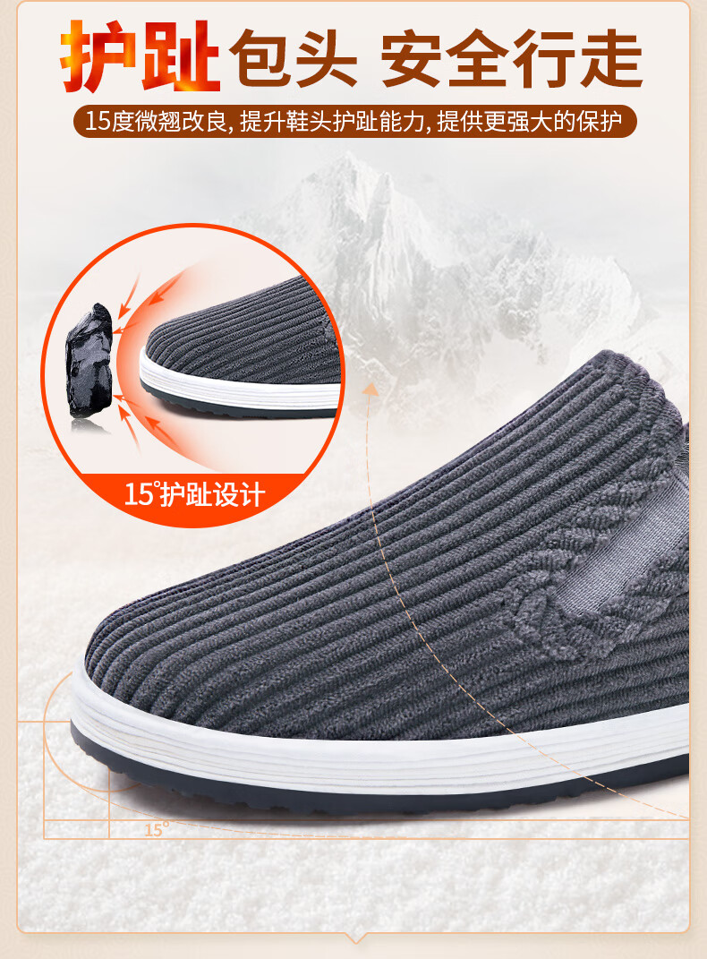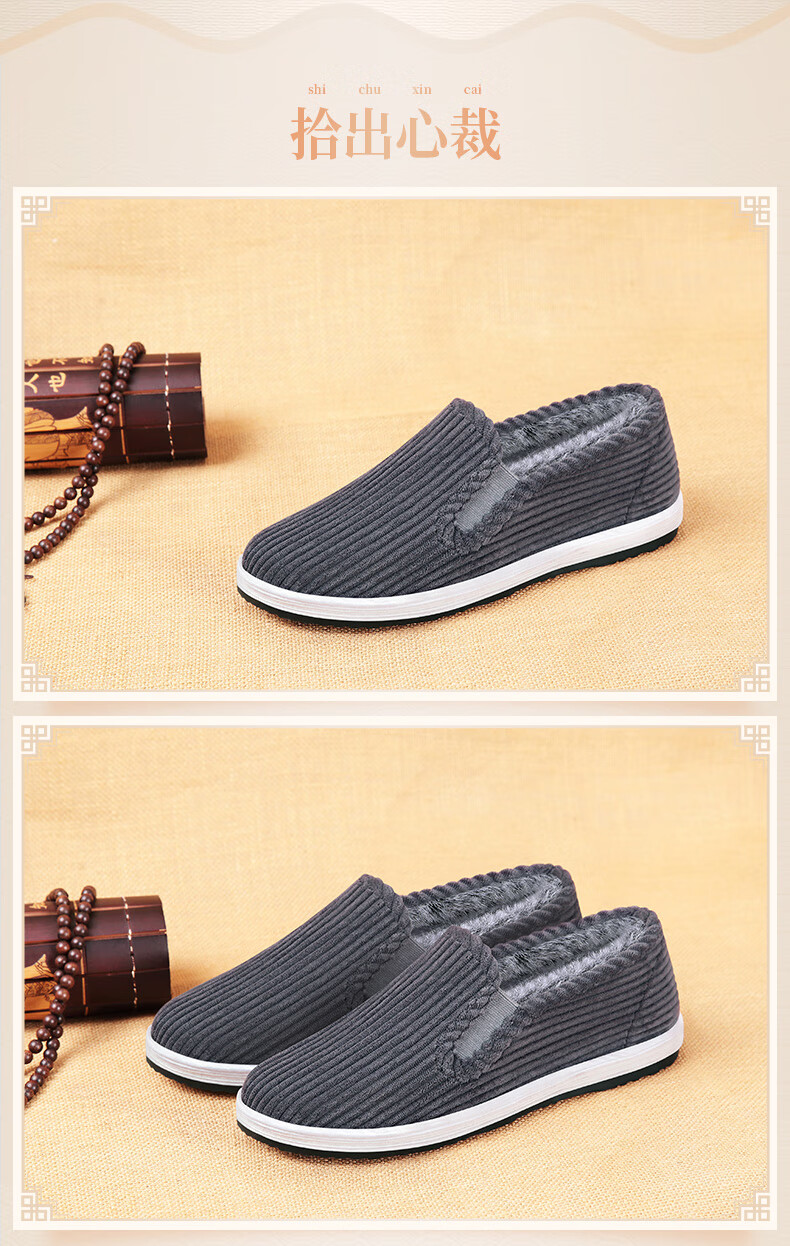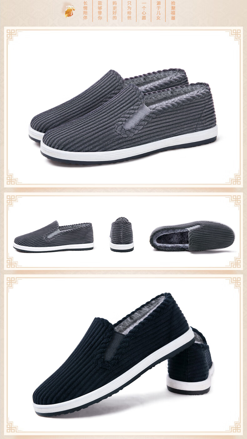 Shiju Old Beijing Cloth Shoes Men's Cotton Shoes Winter Mille Layer Sole Handmade Cloth Shoes Middle-aged and Elderly Dads Add Velvet Warm Men's Shoes Gray 42