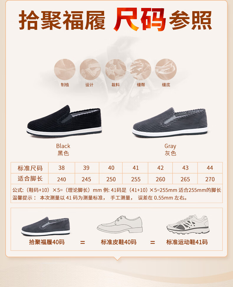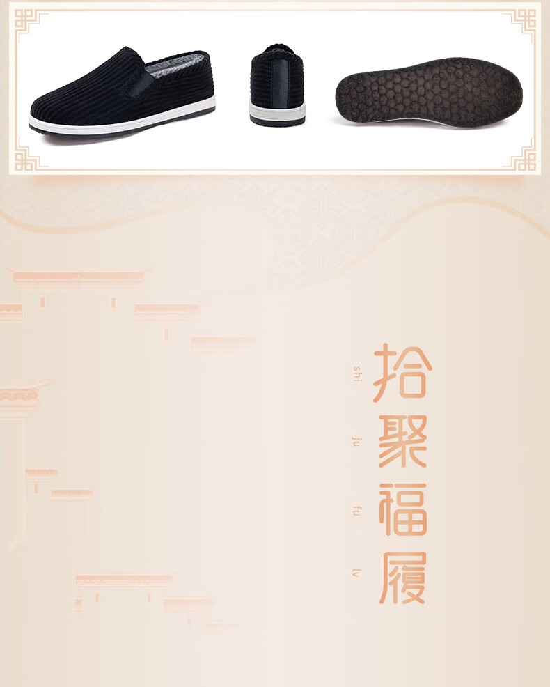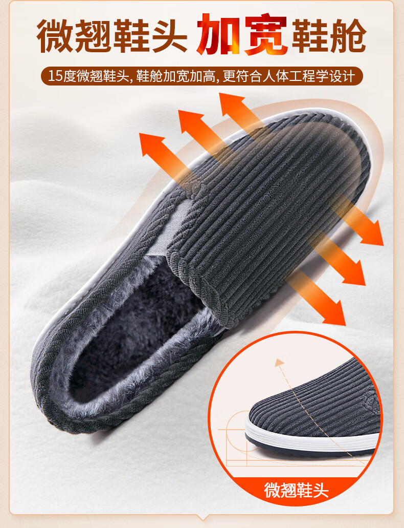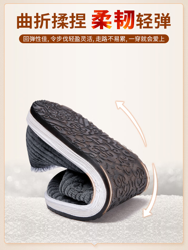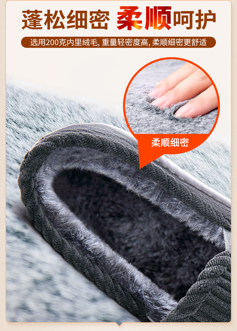 Shiju Old Beijing Cloth Shoes Men's Cotton Shoes Winter Mille Layer Sole Handmade Cloth Shoes Middle-aged and Elderly Dads Add Velvet Warm Men's Shoes Gray 42