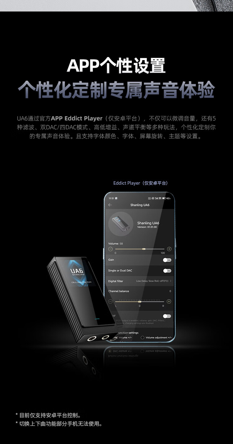 Shanling UA6 decoder amp portable small tail all-in-one mobile phone computer amplifier balanced 4.4 black (free black leather case with order)