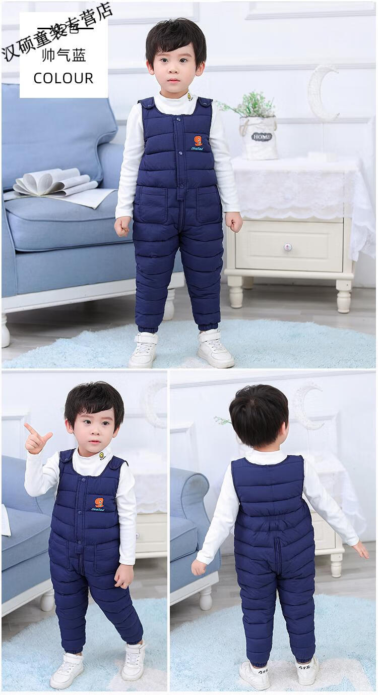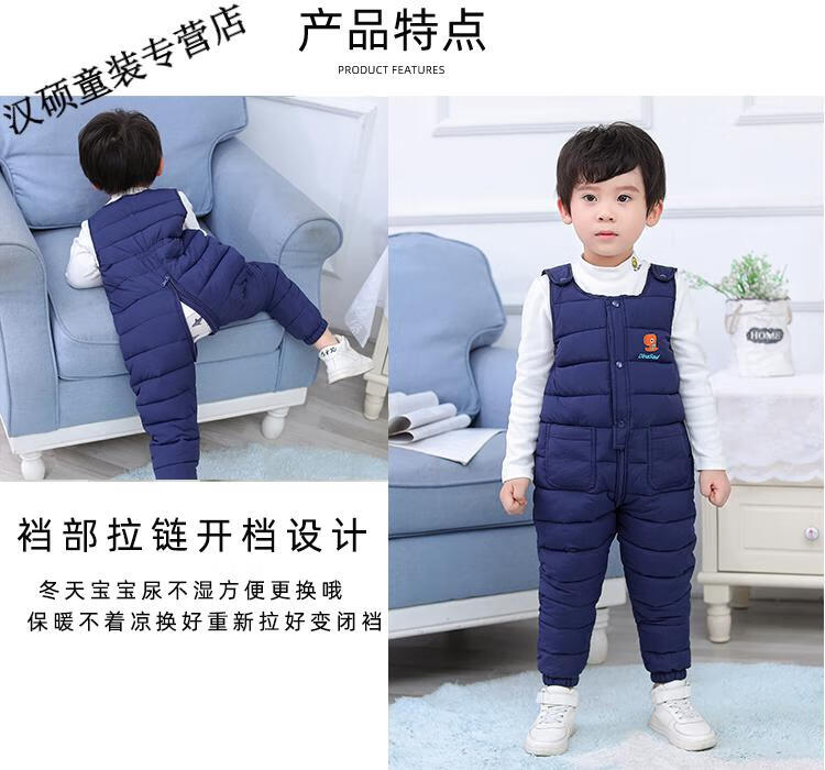 Disney (Disney) baby down cotton overalls suit autumn and winter plus velvet outer wear boys and girls open jumpsuit children's baby pants dark blue (plus velvet) 90 (80-90CM)