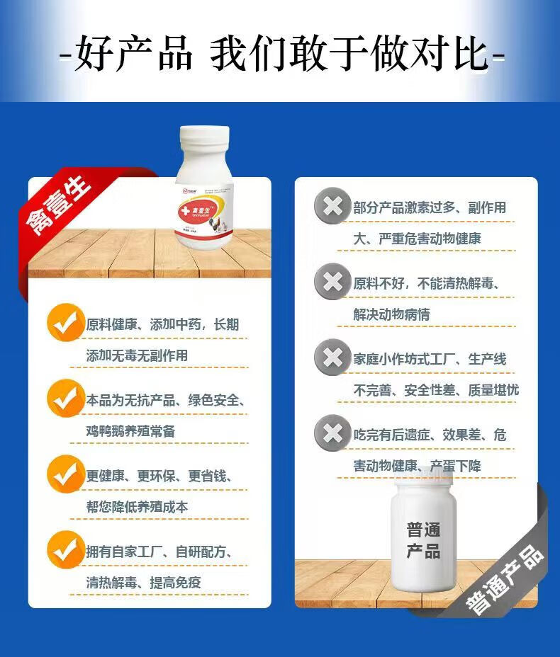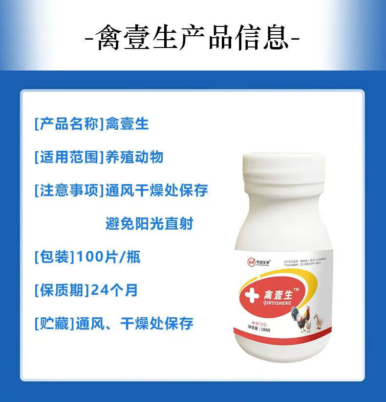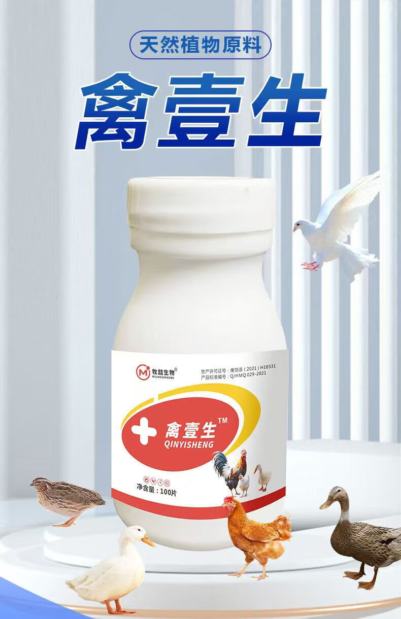 Mu Zhe Biological Poultry Yisheng chickens, ducks and geese are lethargic and stand still without eating, facial swelling, nose shaking, head shaking, feed additives, Qin Yisheng, 1 bottle, 100 tablets