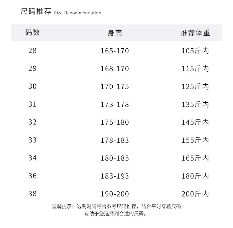 USA(inch) 28-30 30-32 32-34 34-38 38-42