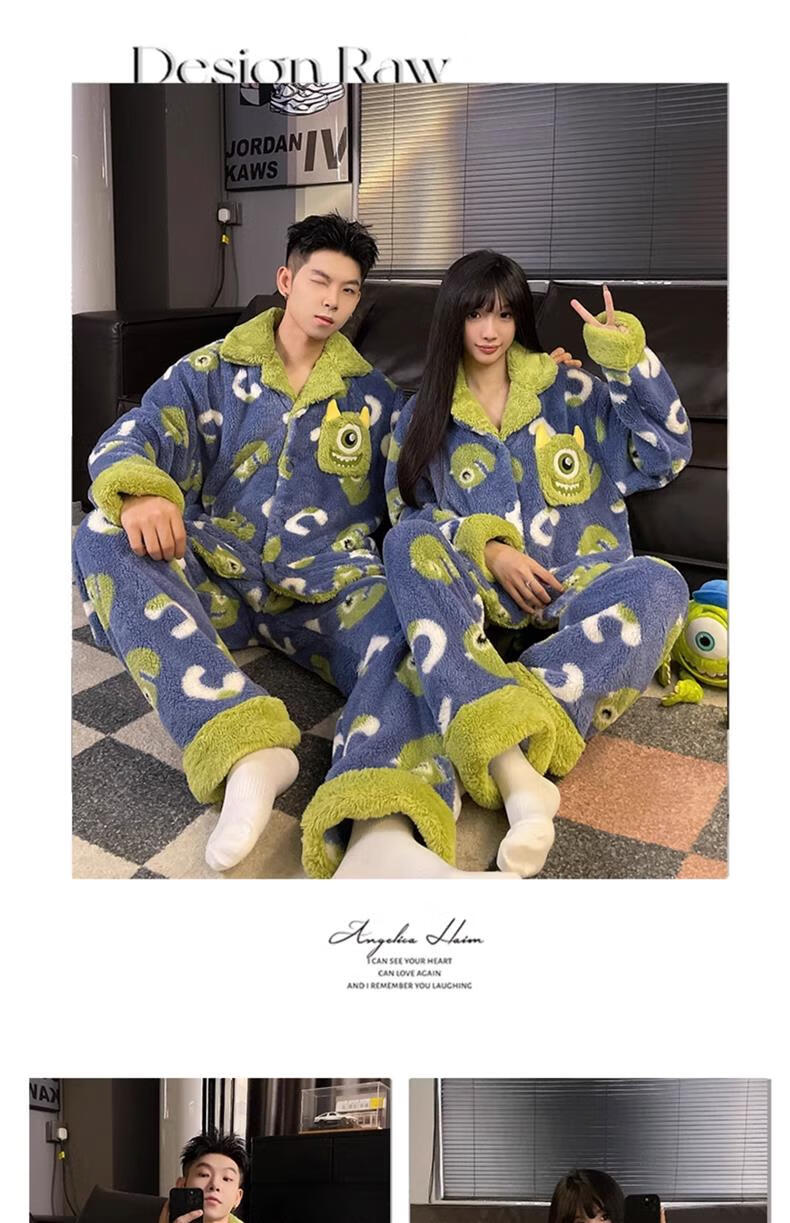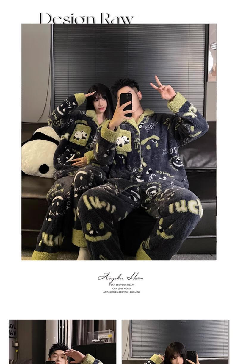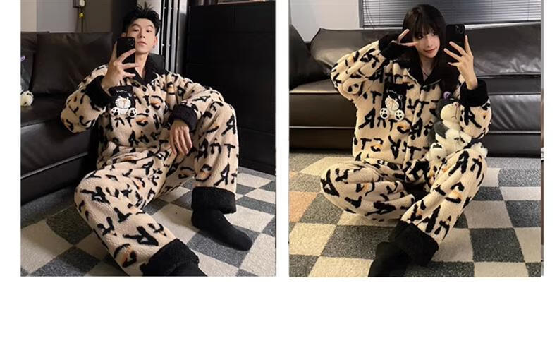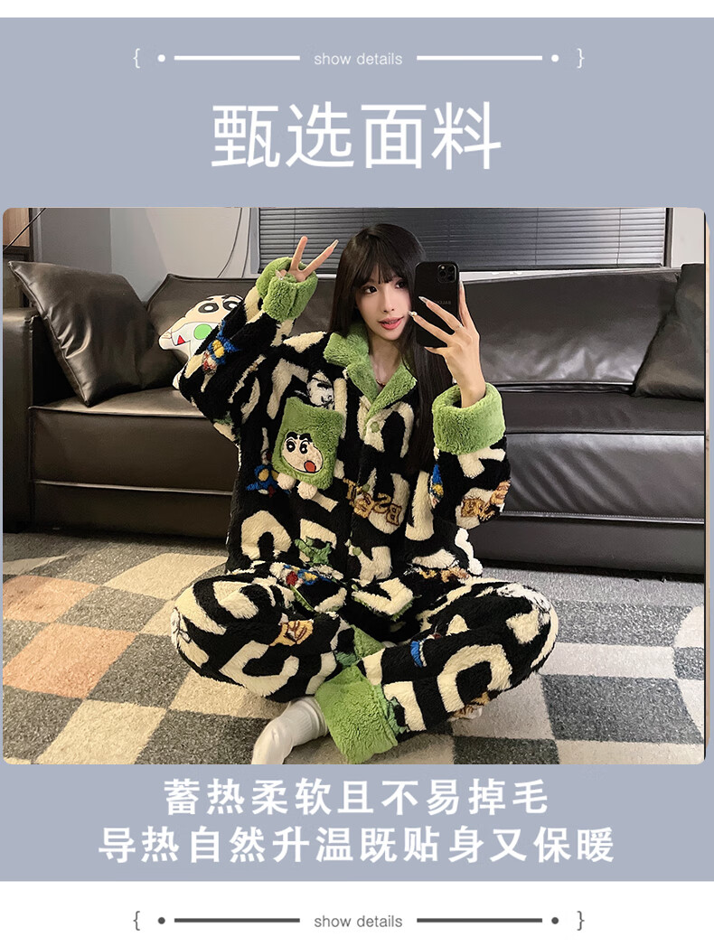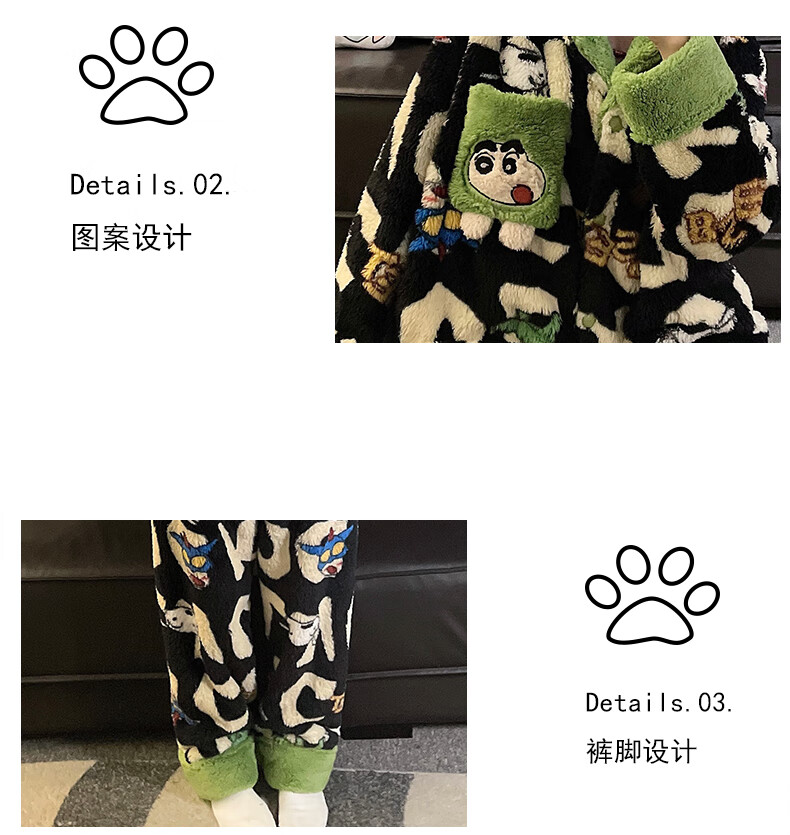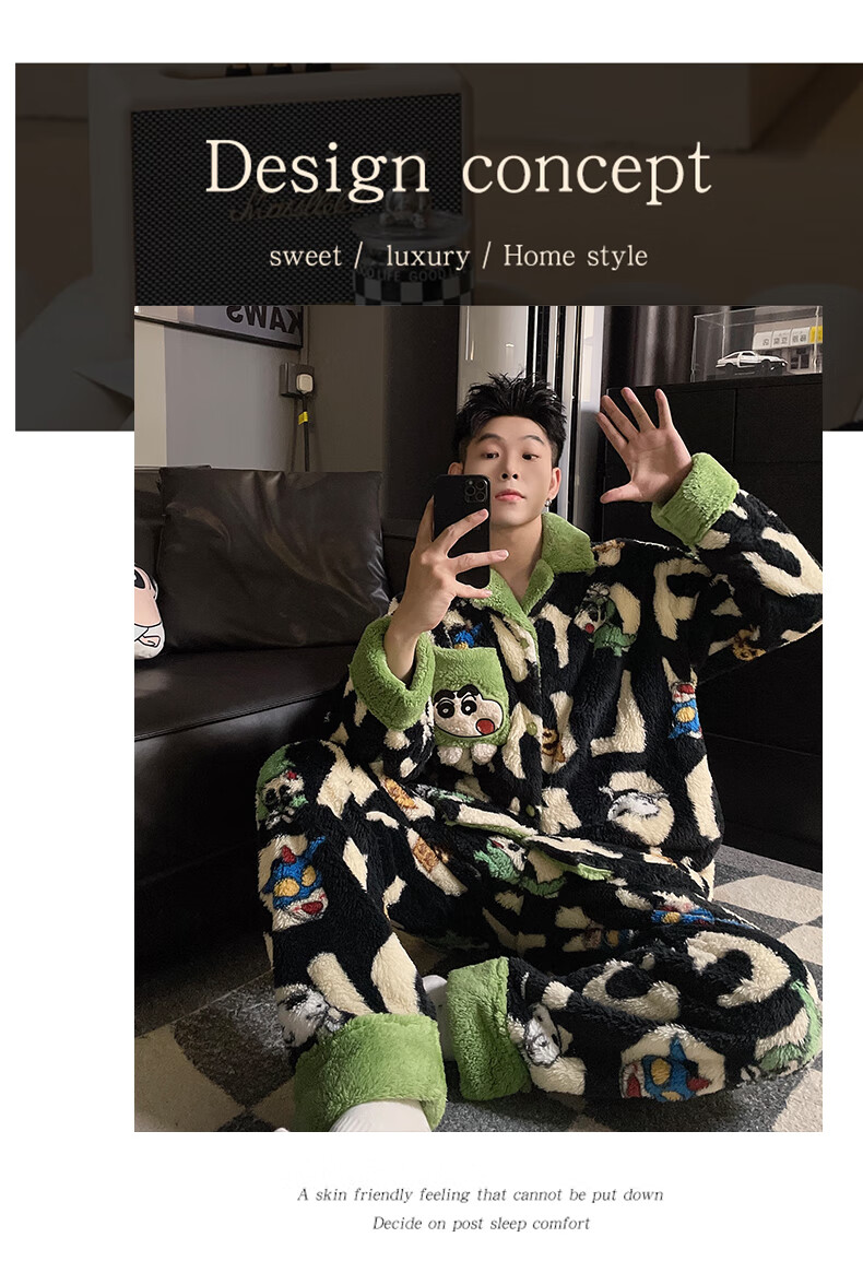 Mengdong Crayon Shin-chan Couple Pajamas for Men and Women Winter Coral Velvet Cute Cardigan Internet Celebrity Style Flannel Home Clothing Set KYX-A59904 XL Men's Style (Recommended 120-145 Jin Jin equals 0.5 kg)