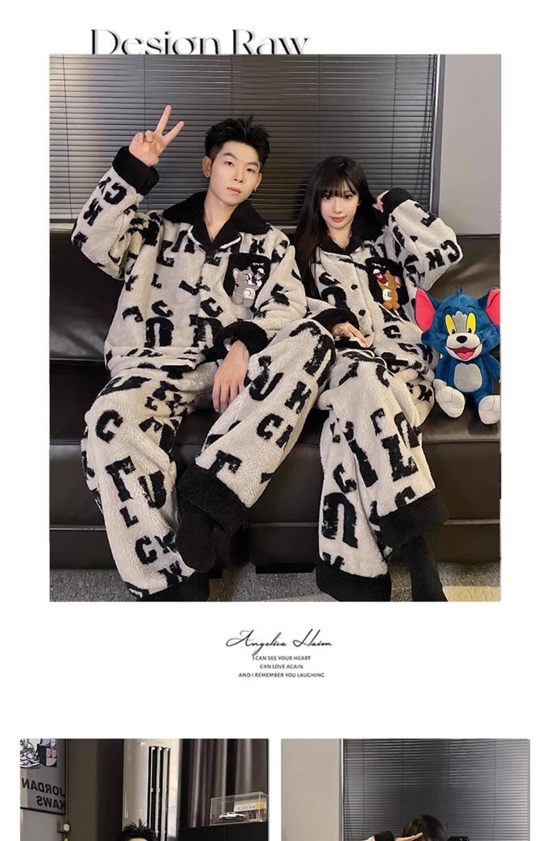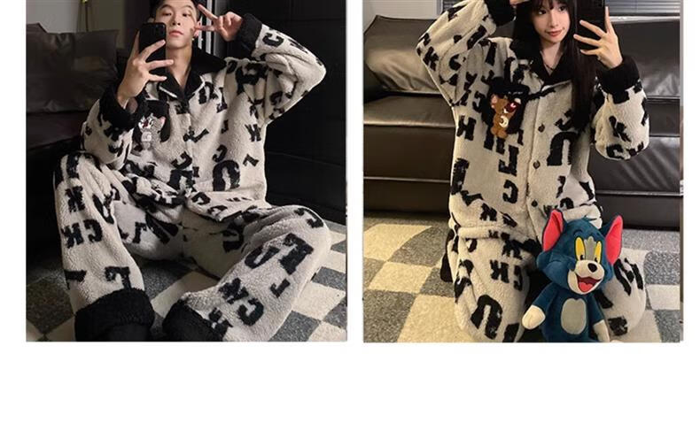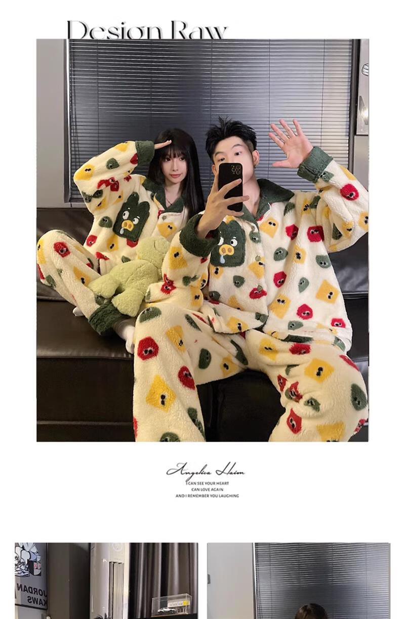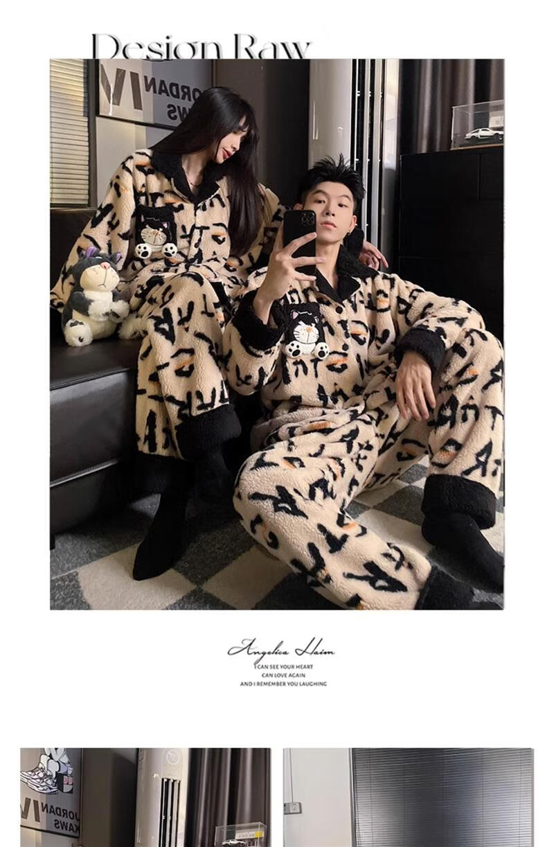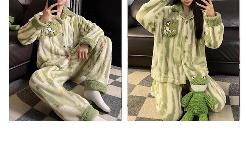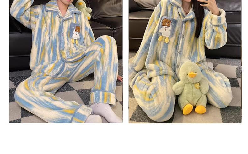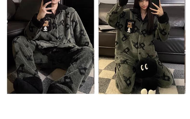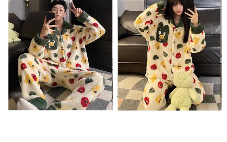 Mengdong Crayon Shin-chan Couple Pajamas for Men and Women Winter Coral Velvet Cute Cardigan Internet Celebrity Style Flannel Home Clothing Set KYX-A59904 XL Men's Style (Recommended 120-145 Jin Jin equals 0.5 kg)