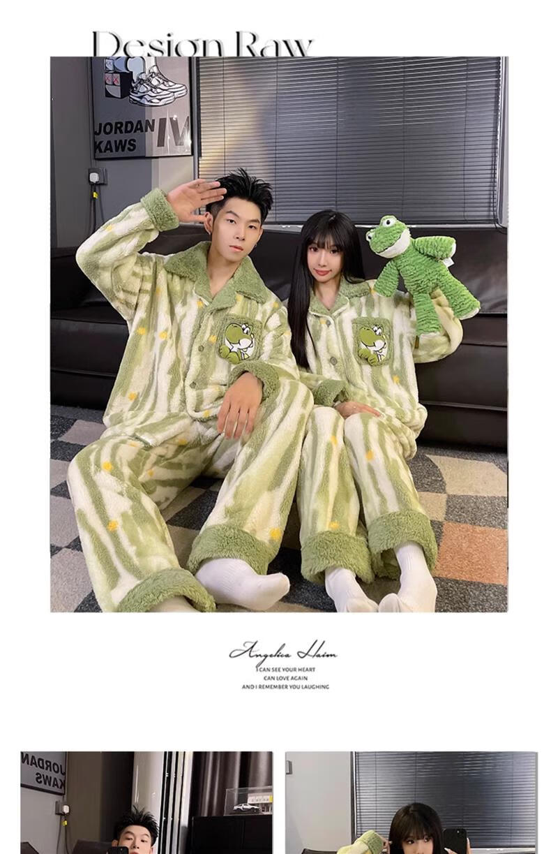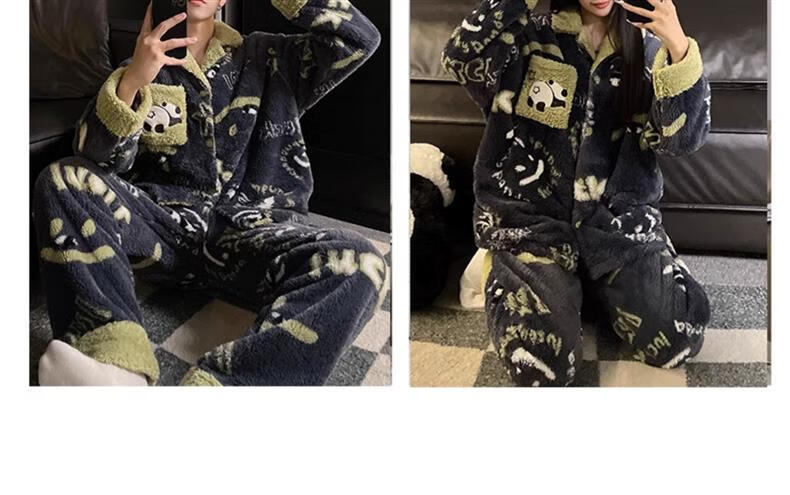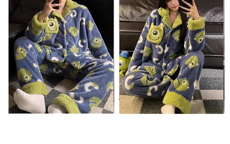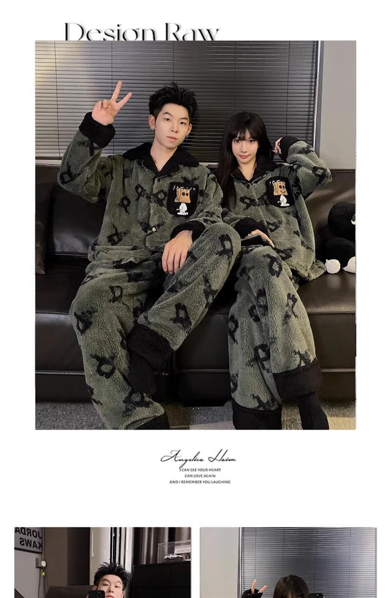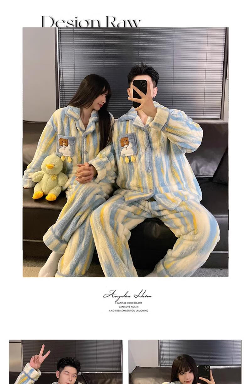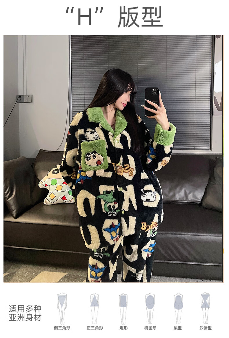 Mengdong Crayon Shin-chan Couple Pajamas for Men and Women Winter Coral Velvet Cute Cardigan Internet Celebrity Style Flannel Home Clothing Set KYX-A59904 XL Men's Style (Recommended 120-145 Jin Jin equals 0.5 kg)