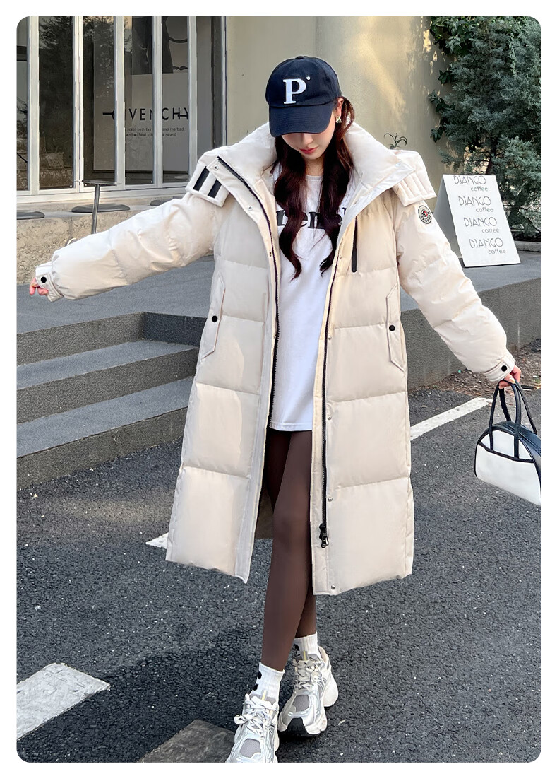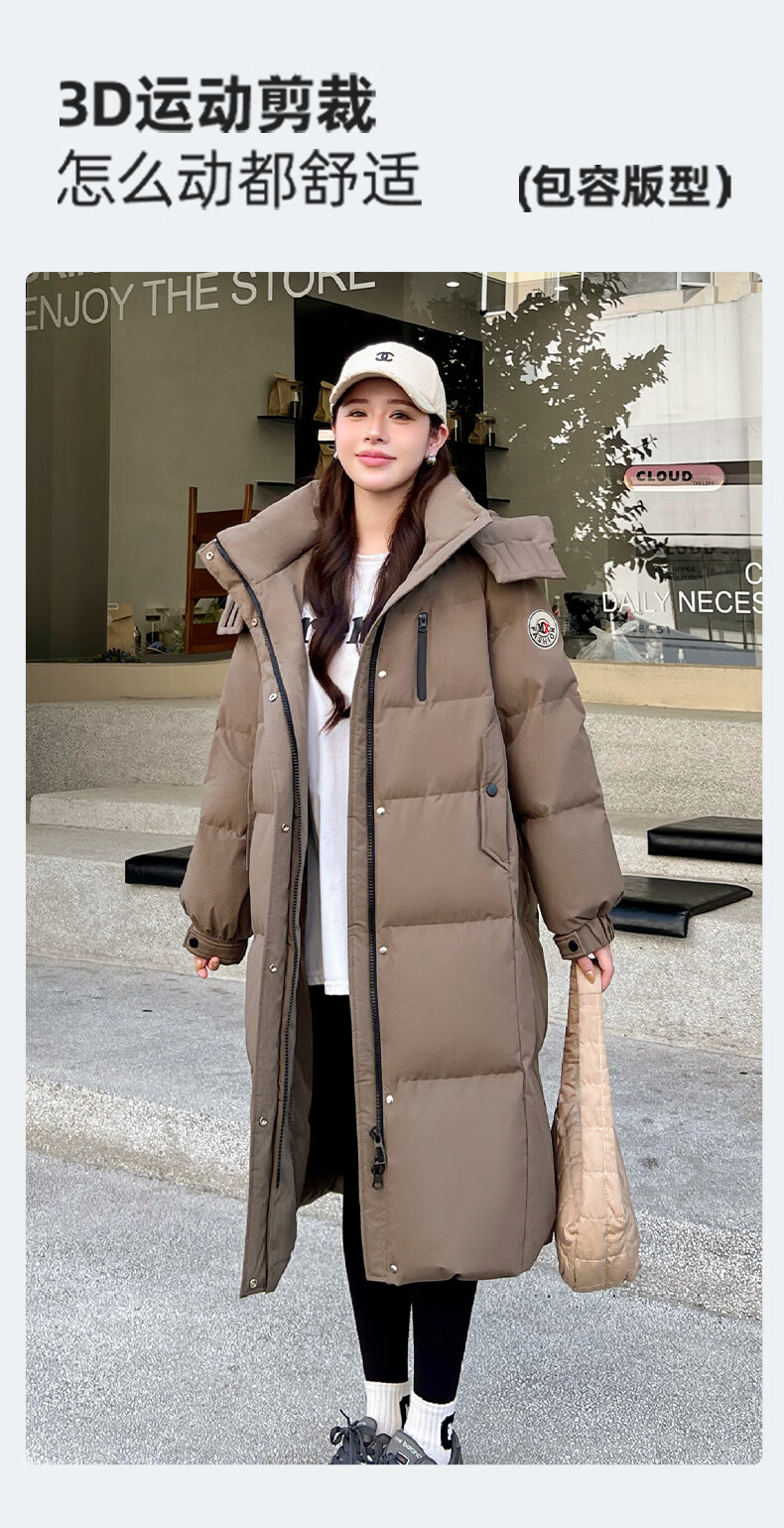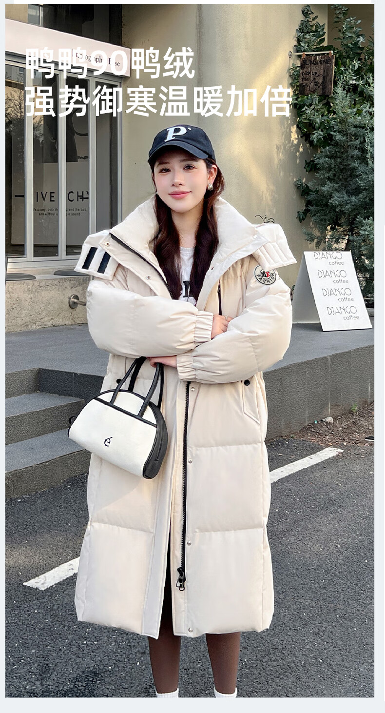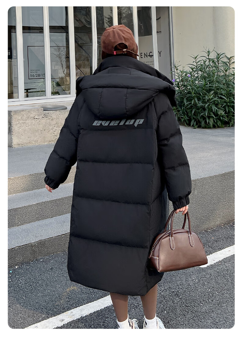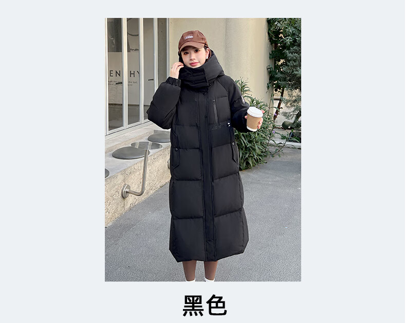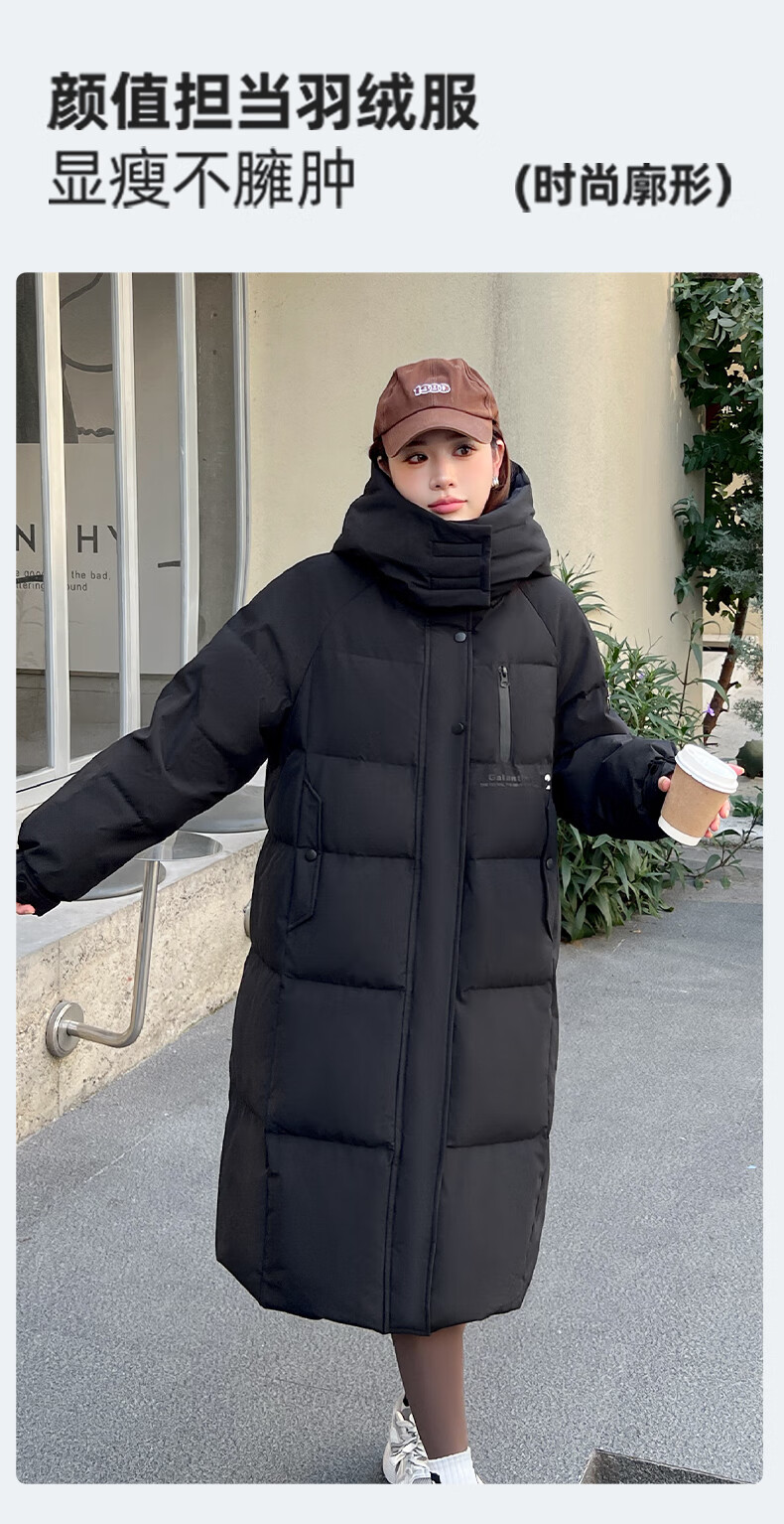 YAYA Extreme Cold Down Jacket Women's Long Over-the-Knee 2025 Winter New Fashion Casual Hooded Thickened Warm Jacket XB Black M (160)