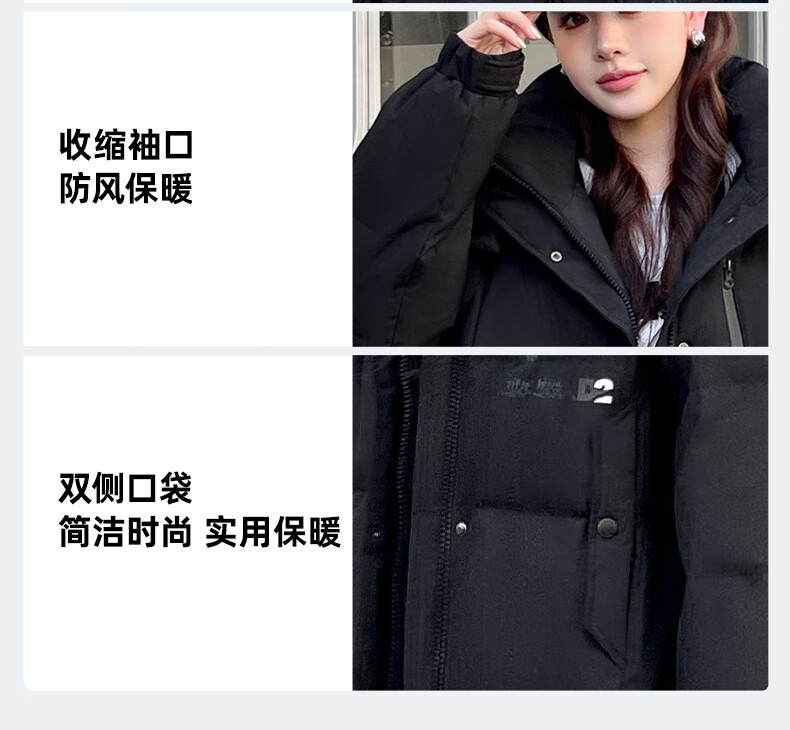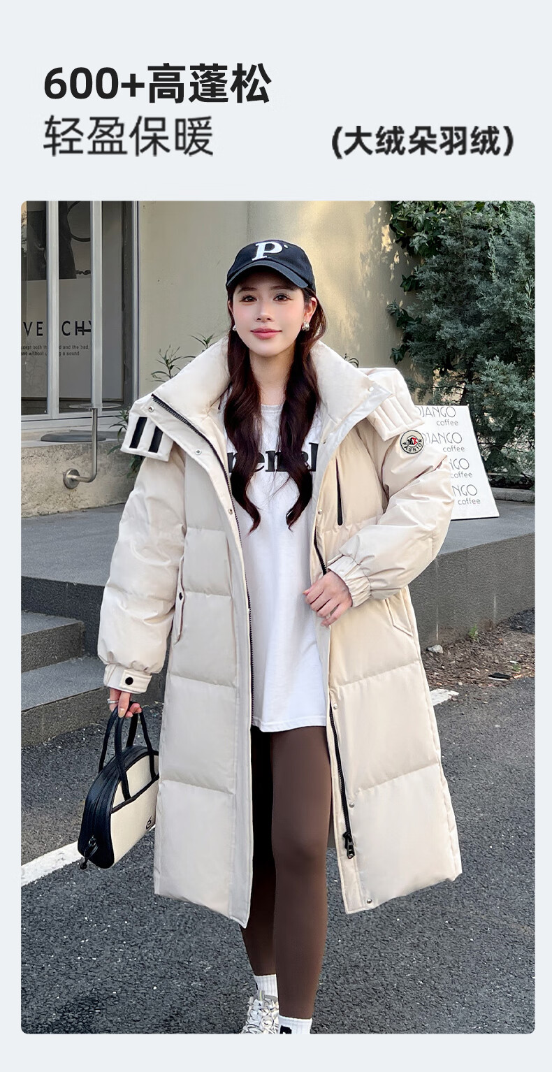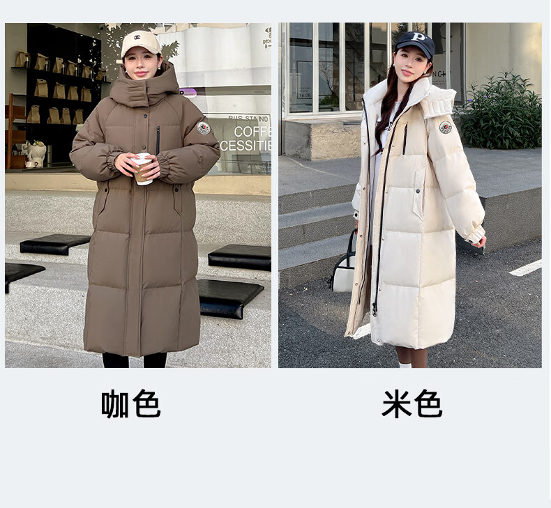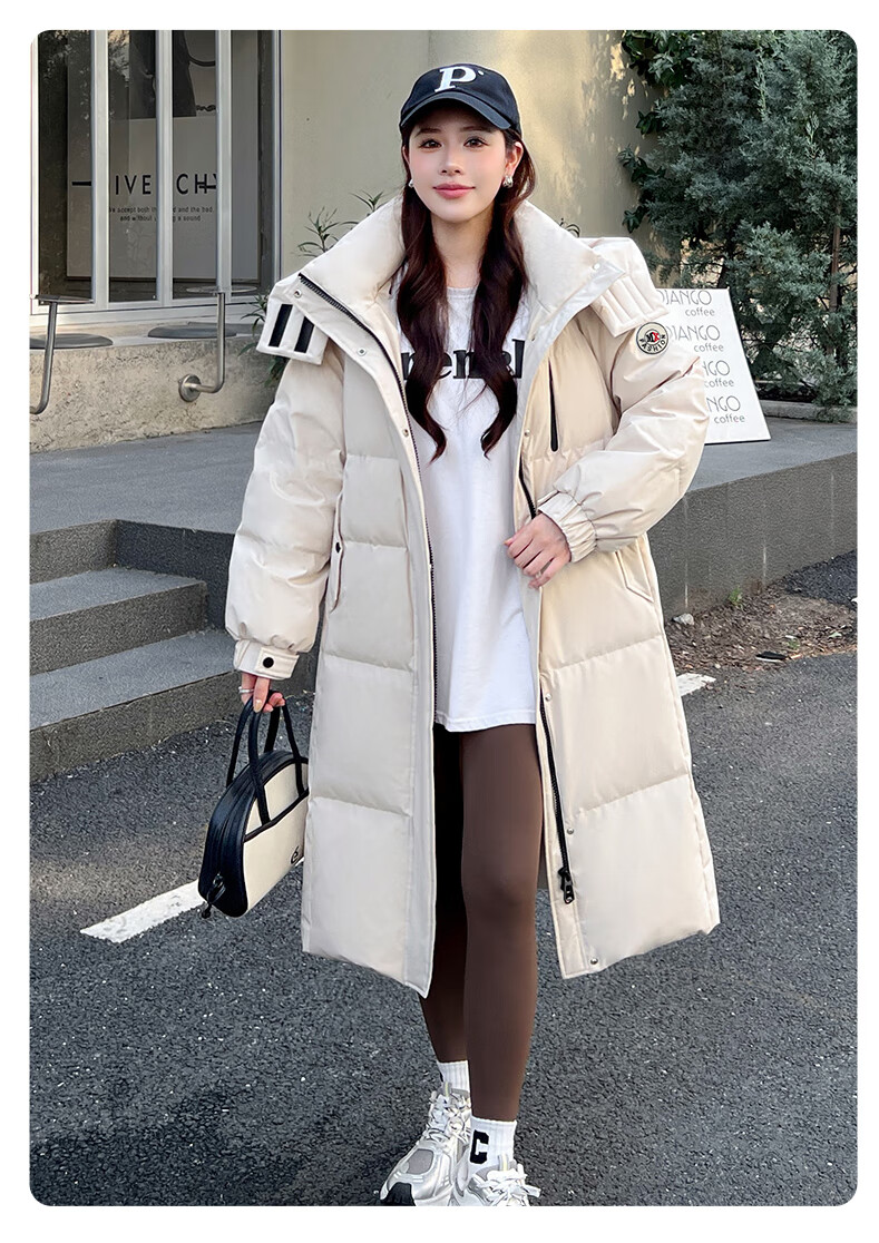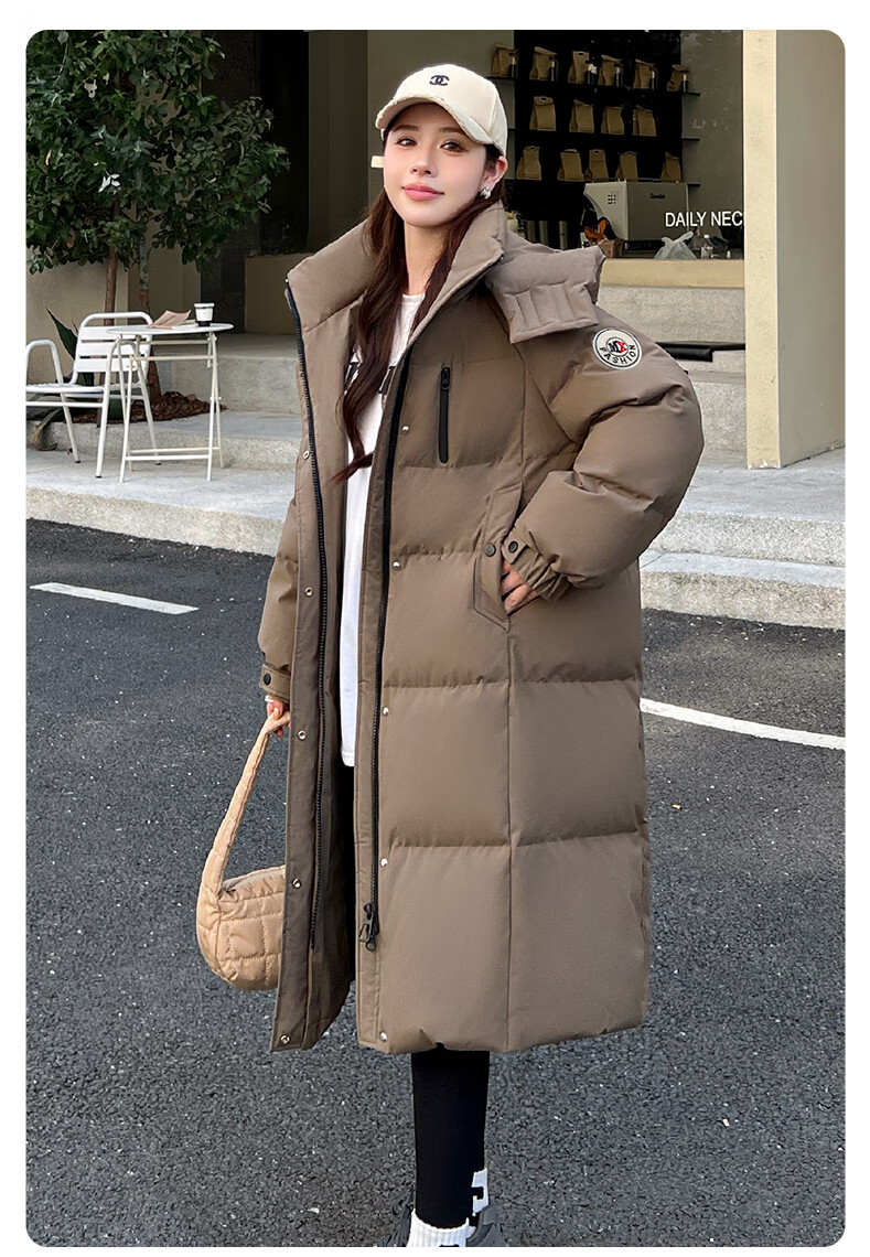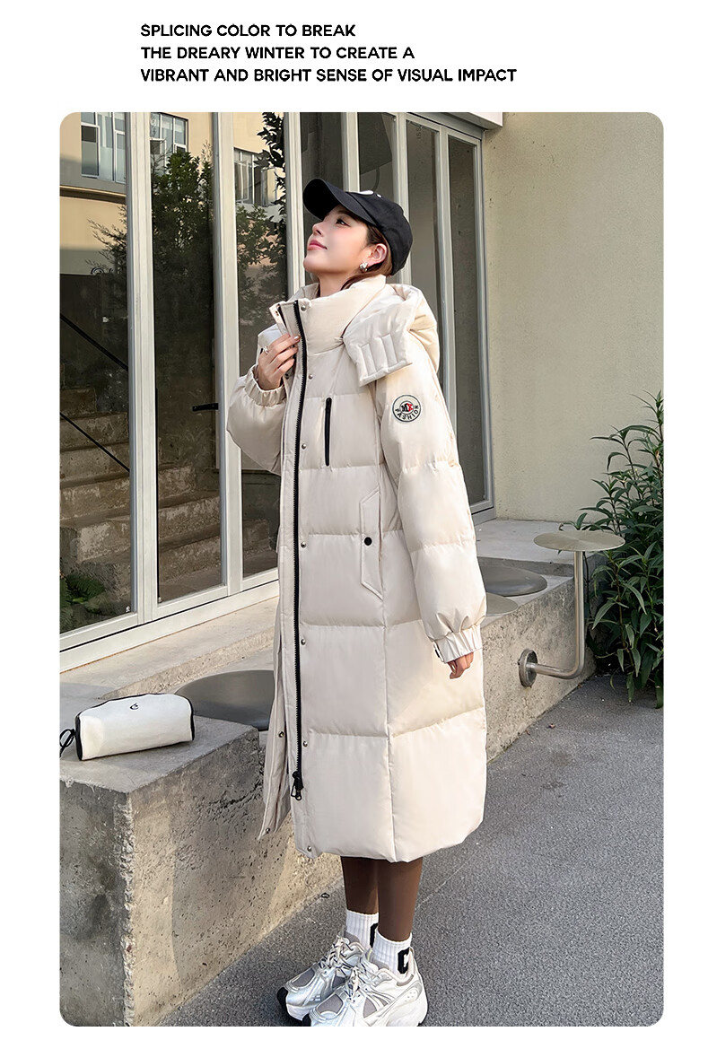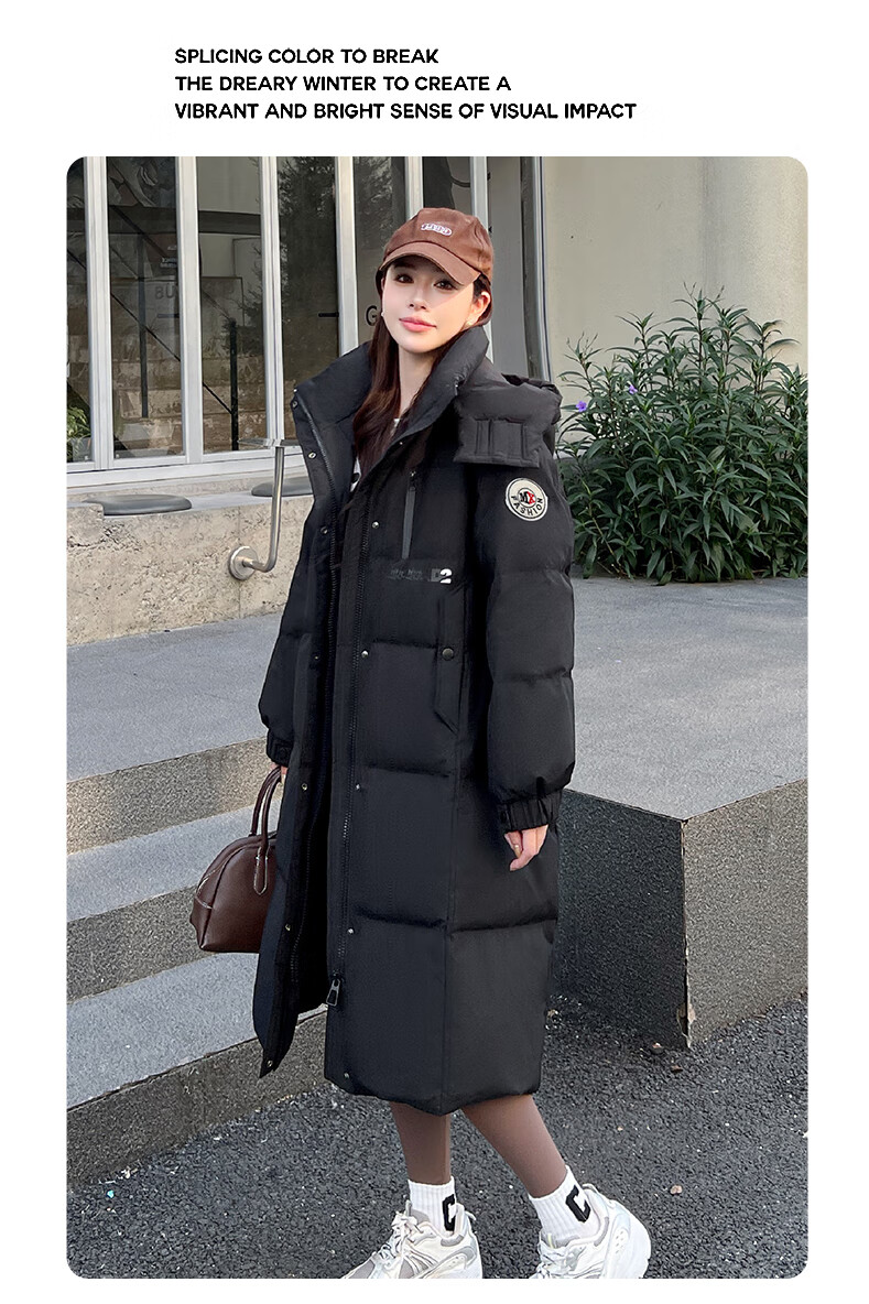 YAYA Extreme Cold Down Jacket Women's Long Over-the-Knee 2025 Winter New Fashion Casual Hooded Thickened Warm Jacket XB Black M (160)
