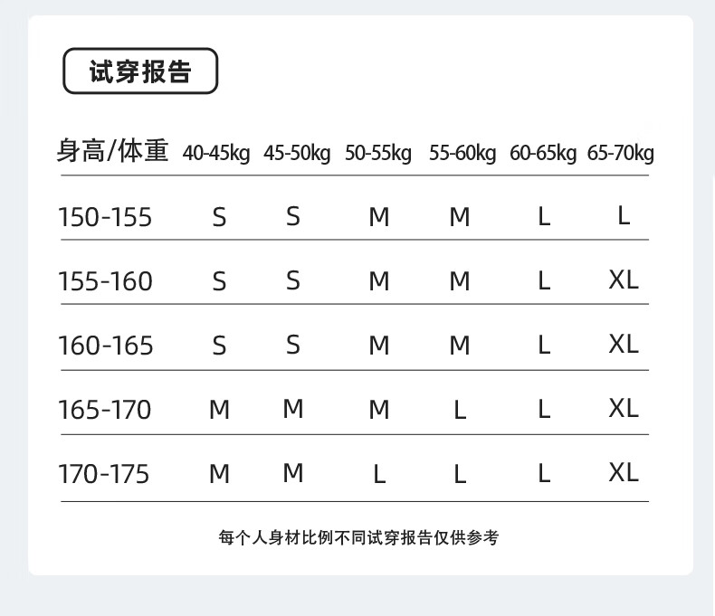 China (cm) 160-165/84-86 165-170 / 88-90 167-172 / 92-96 168-173 / 98-102 170-176 / 106-110