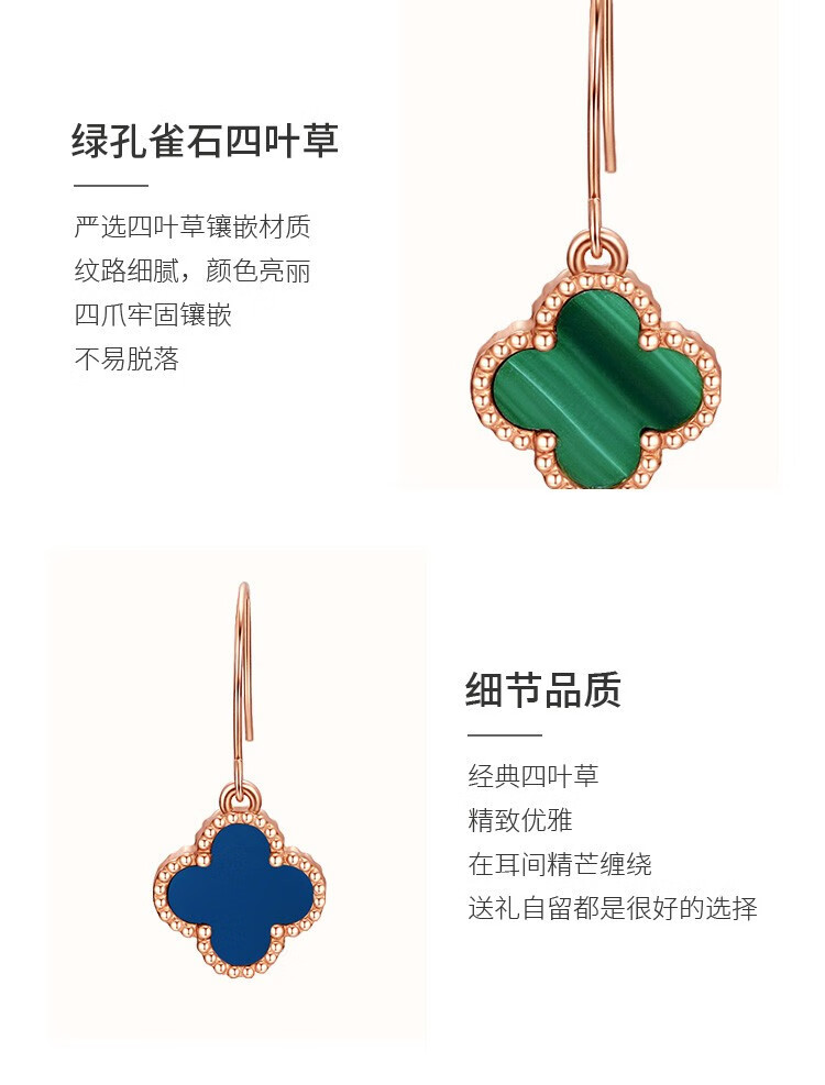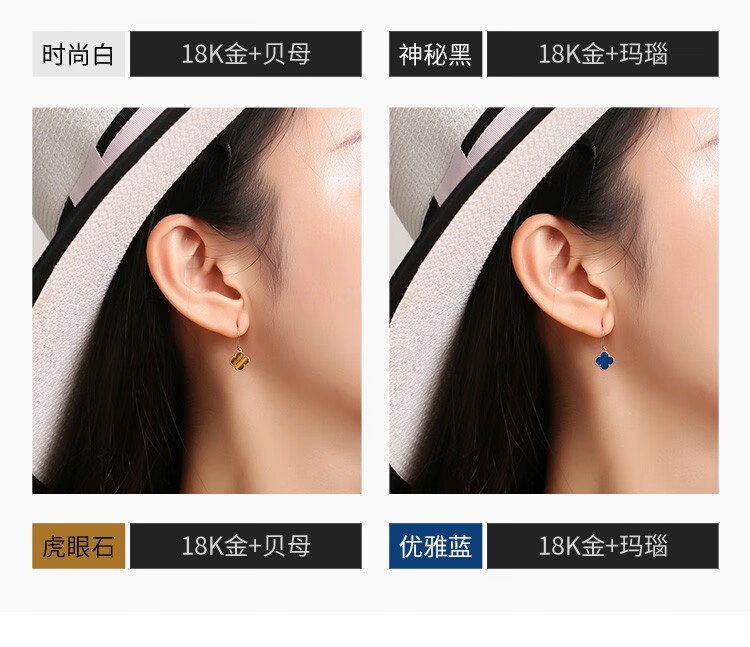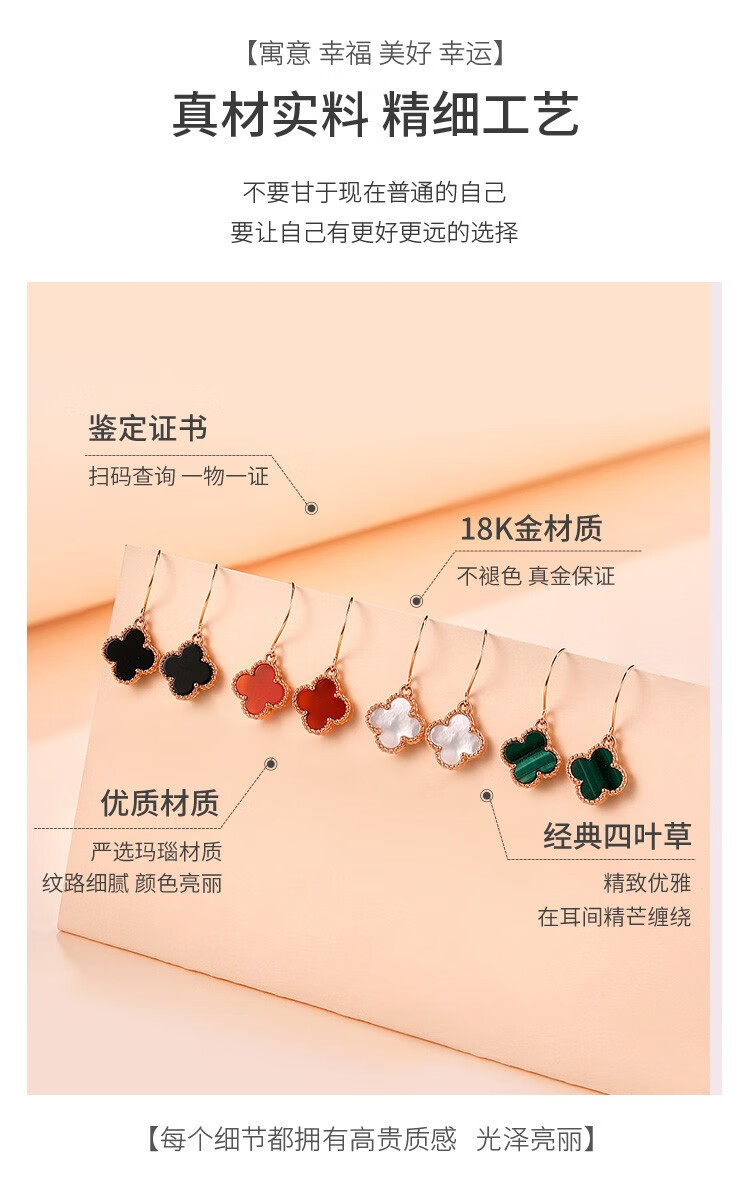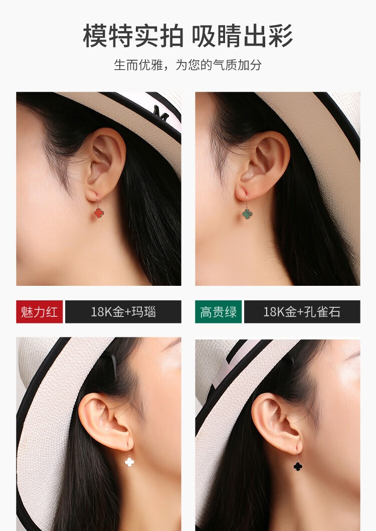 Mu Qin 18K gold clover four-leaf clover ear hook color gold rose gold gold earrings earrings for wife's birthday gift red agate (k yellow)
