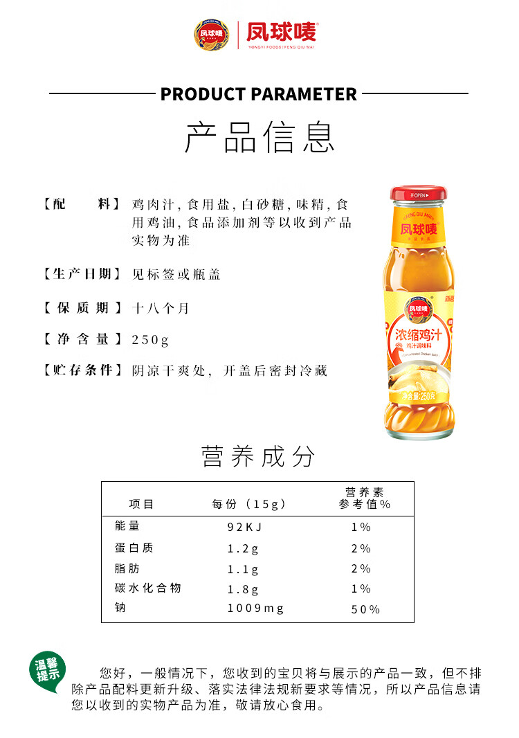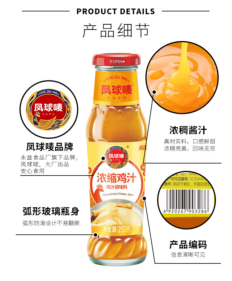 PHOENIX&EARTH concentrated chicken juice seasoning replaces chicken essence and MSG seasoning stock for cooking household fresh chicken juice seasoning Chicken juice 250g*1 bottle