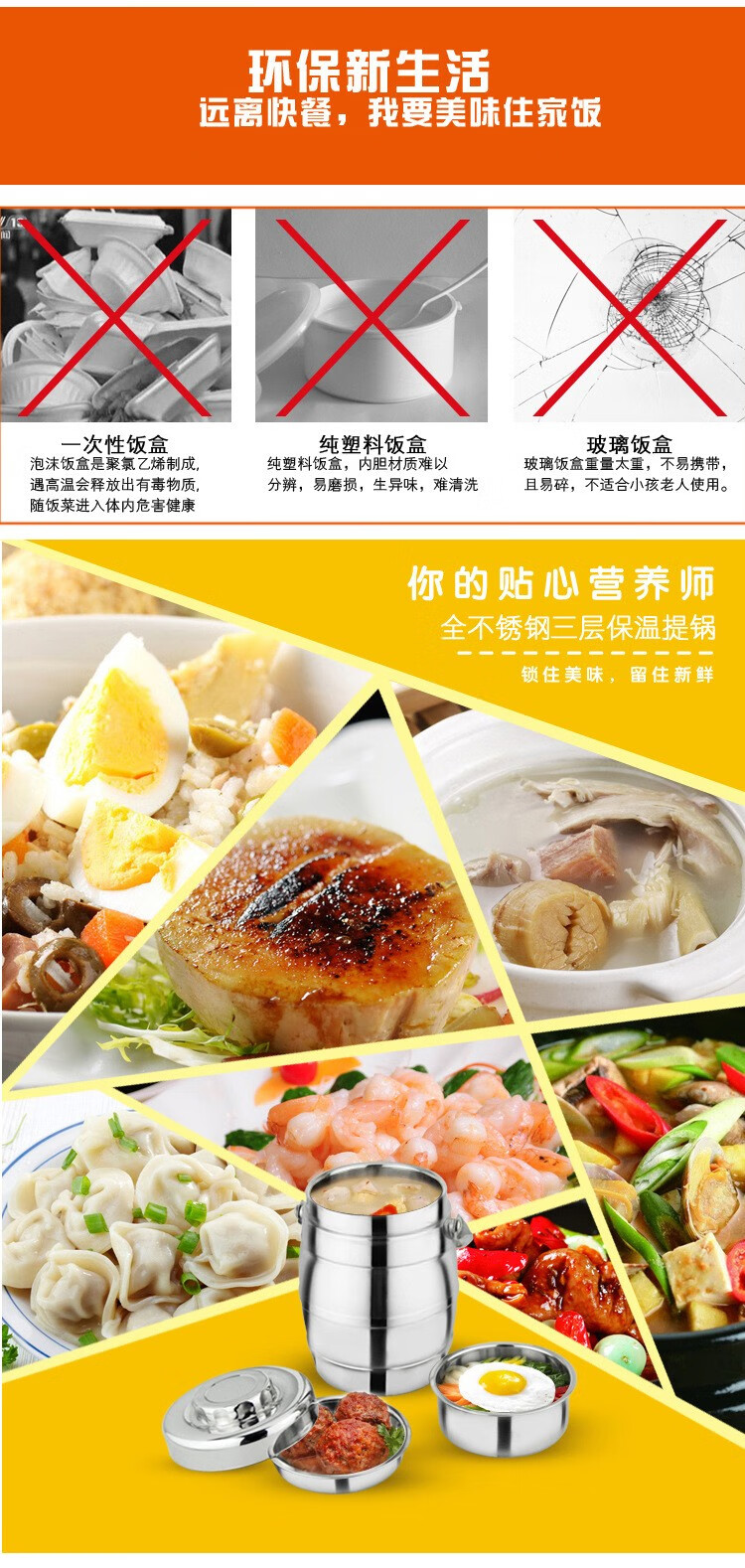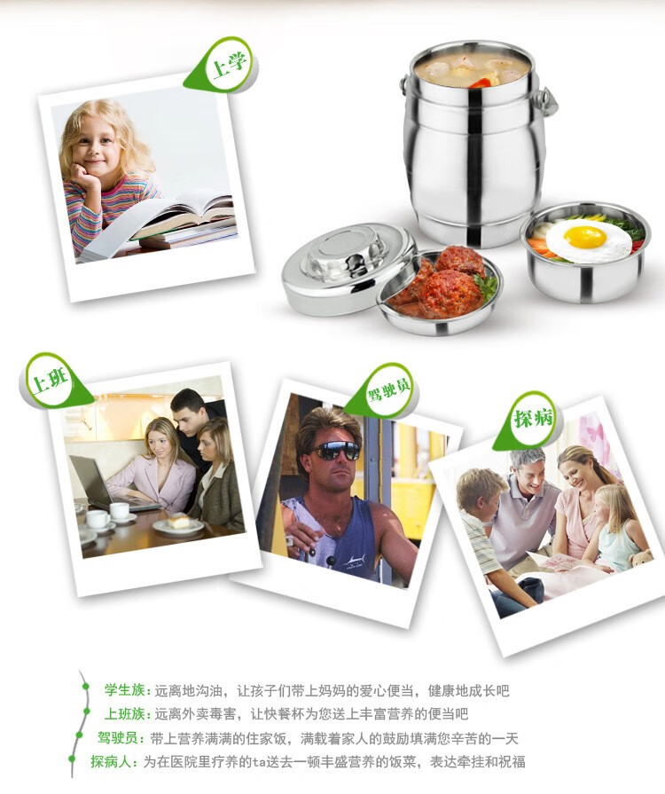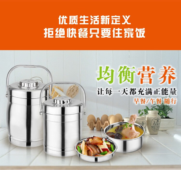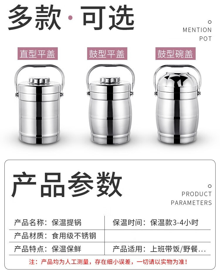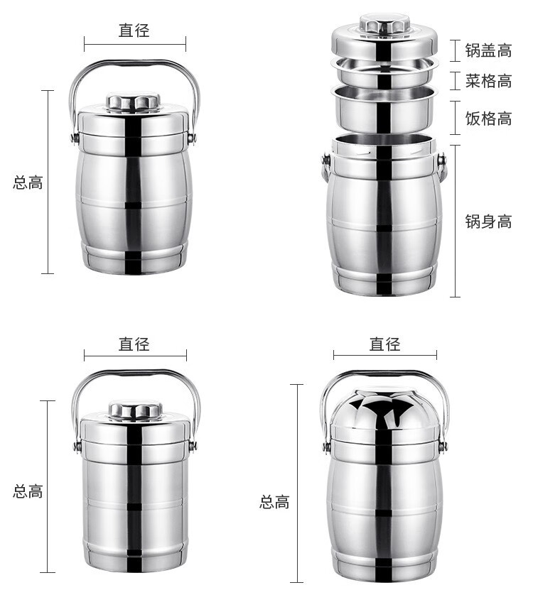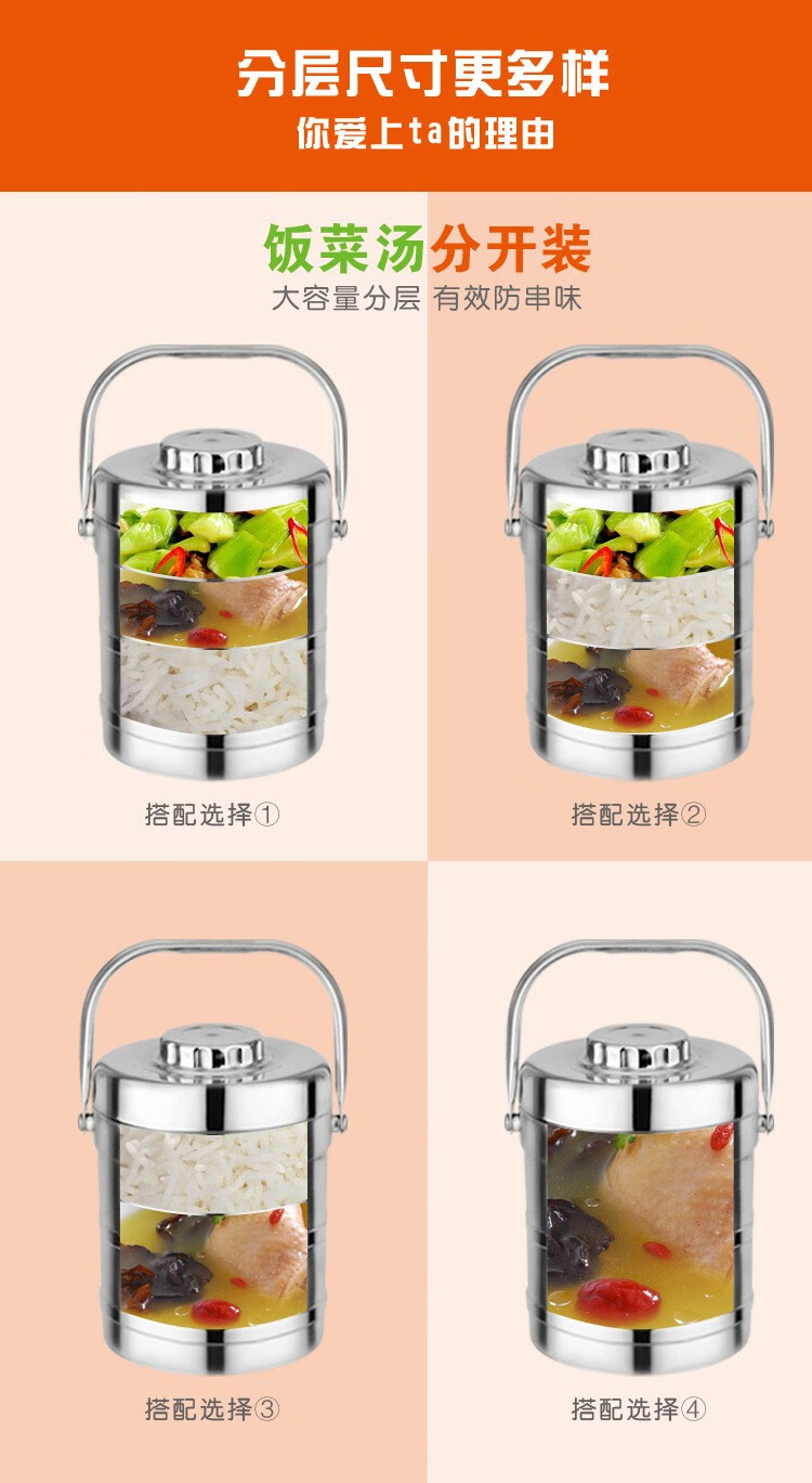 Murannuoer stainless steel insulated lunch box large-capacity insulated lunch box multi-layer large-capacity student lunch box lunch bucket straight 1.4l separate lunch bucket 4L