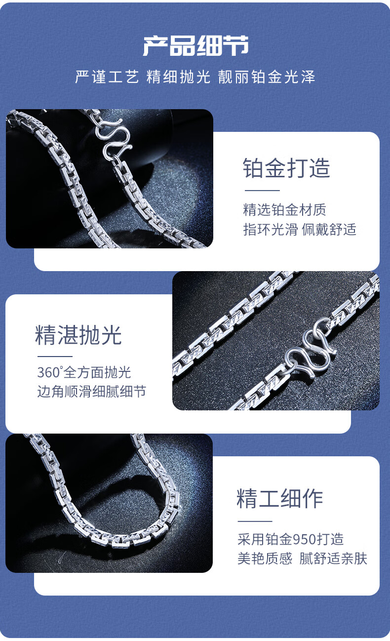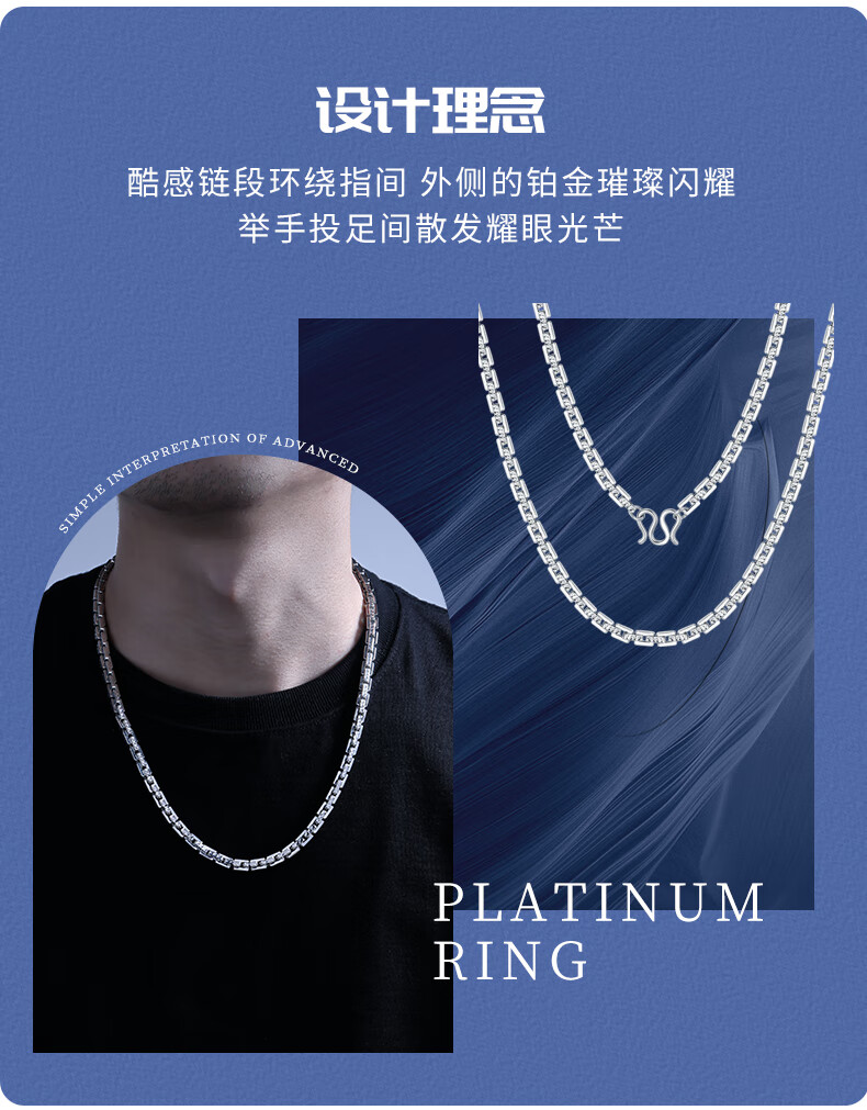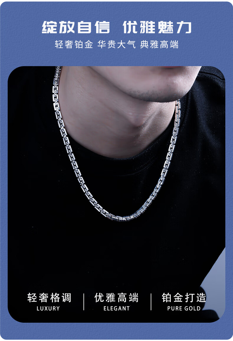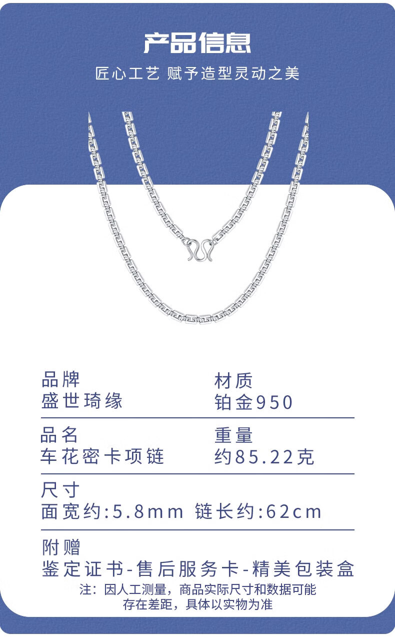 SHENGSHIQIYUAN pt950 platinum necklace men's style platinum necklace clavicle chain high-end men's fashion accessories 72.68 g 66 cm thick about 5.5mm