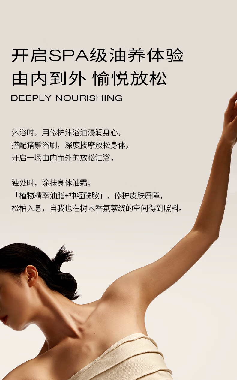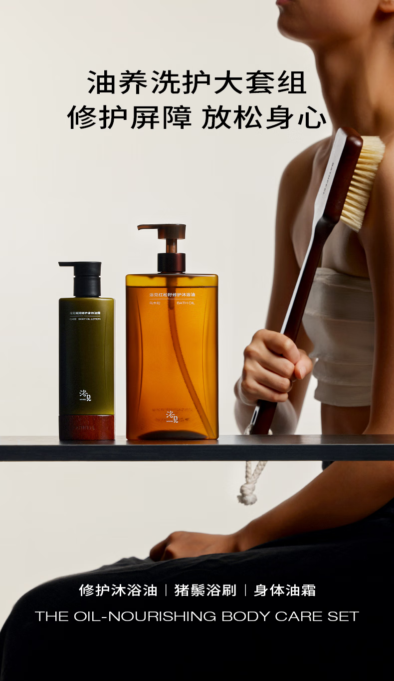 Yumi Red Pine Seed Moisturizing Fragrance Bath Oil 300ml+Repairing Body Oil Cream+Ebony Sandalwood Bath Brush Combination Moisturizing Xingshan Peach Bath Oil+Matsujian Light Cream+Soft-bristled Bath Brush