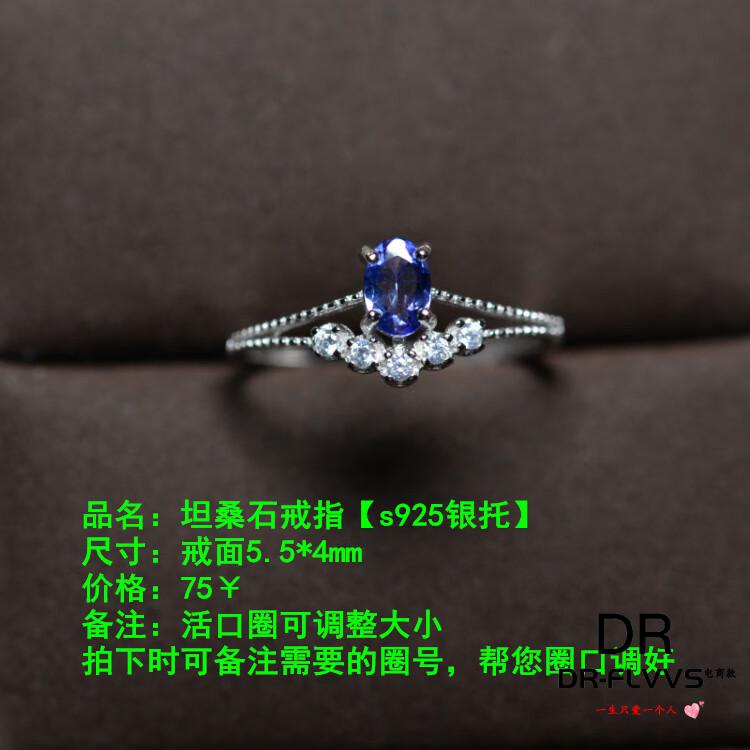 DL 1998 Tanzanite Natural Ring Blue Gemstone Women's S925 Silver Live Mouth Adjustable Big and Small Finger Style Three