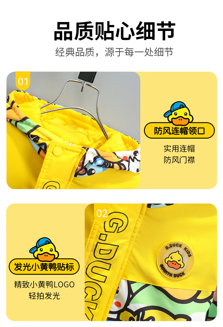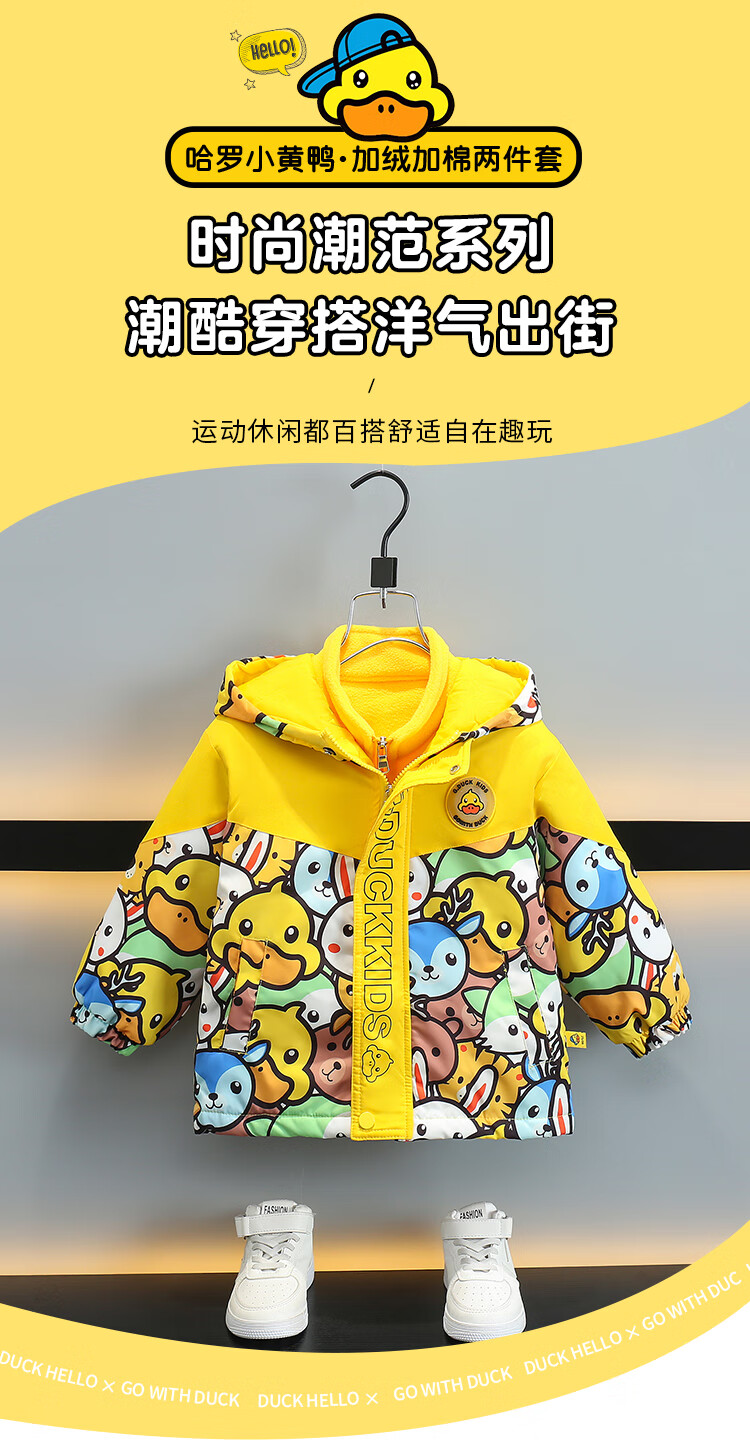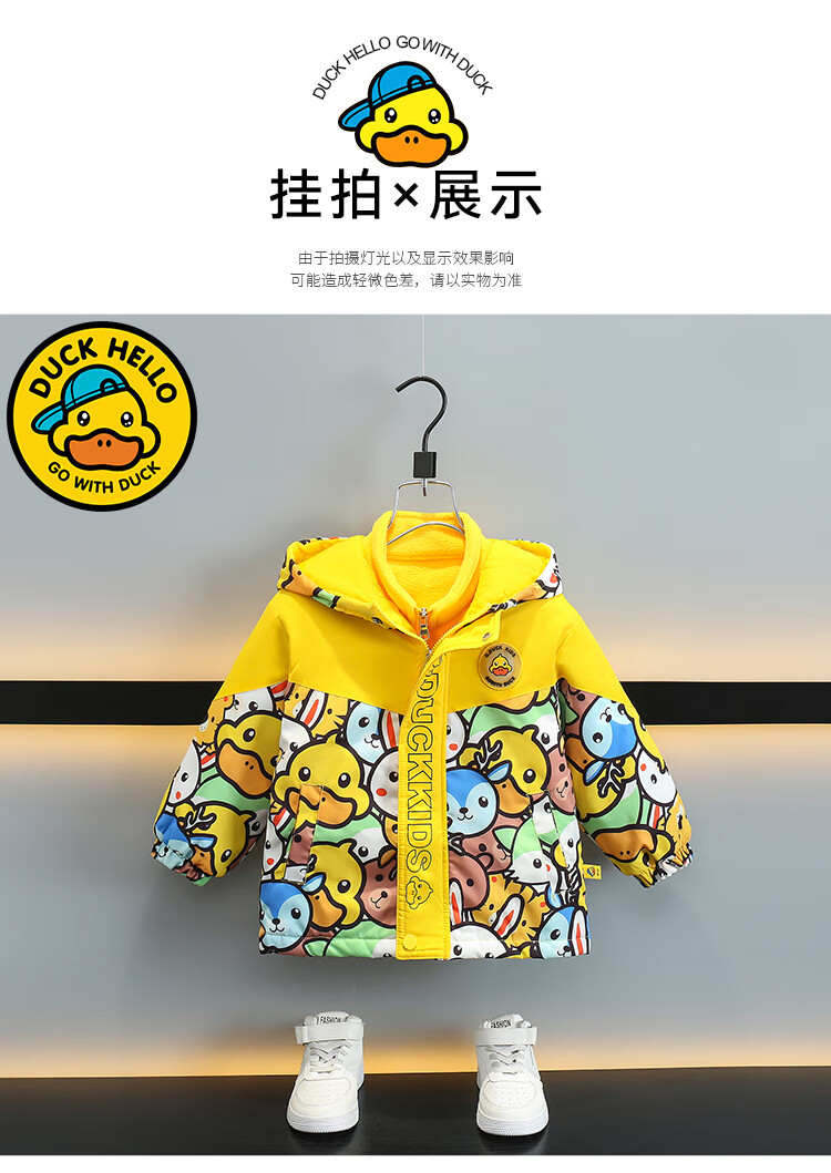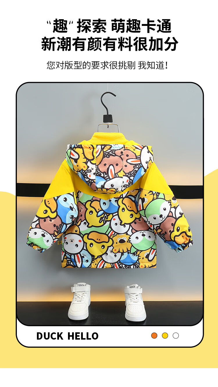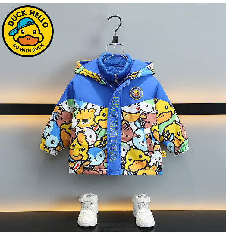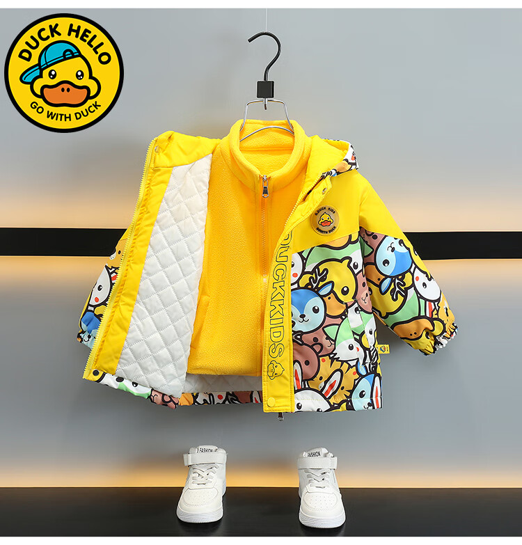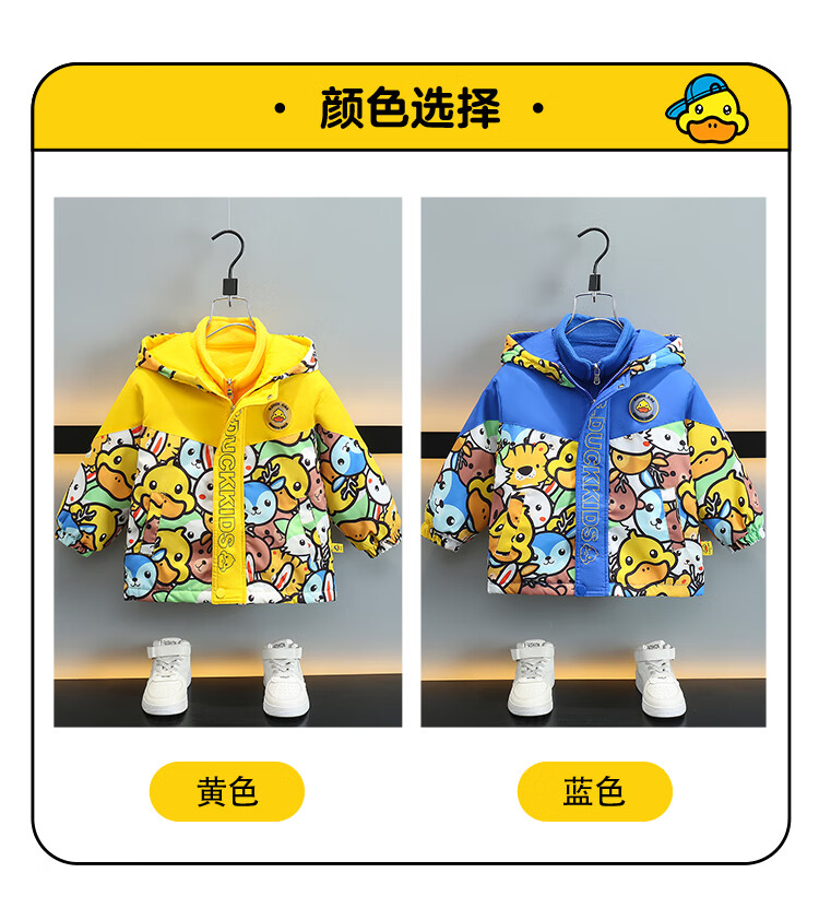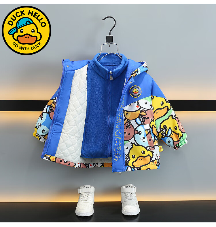 Little Yellow Duck children's clothing autumn and winter quilted thickened cotton clothing new style three-in-one jacket for small and medium-sized children, boys and girls, trendy blue 100