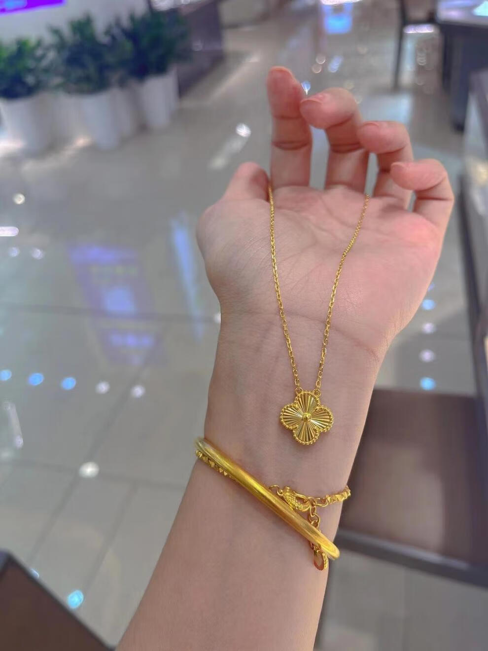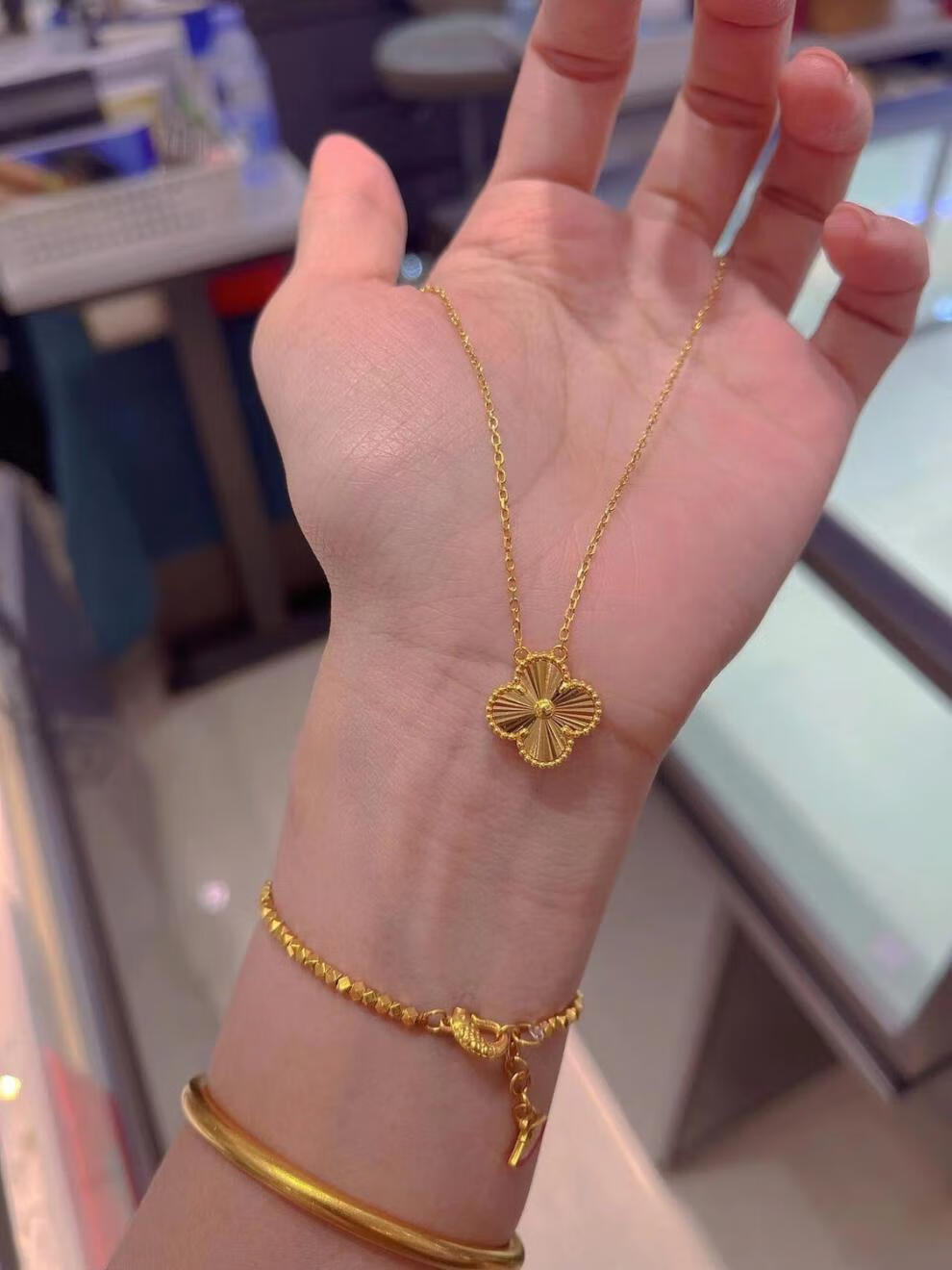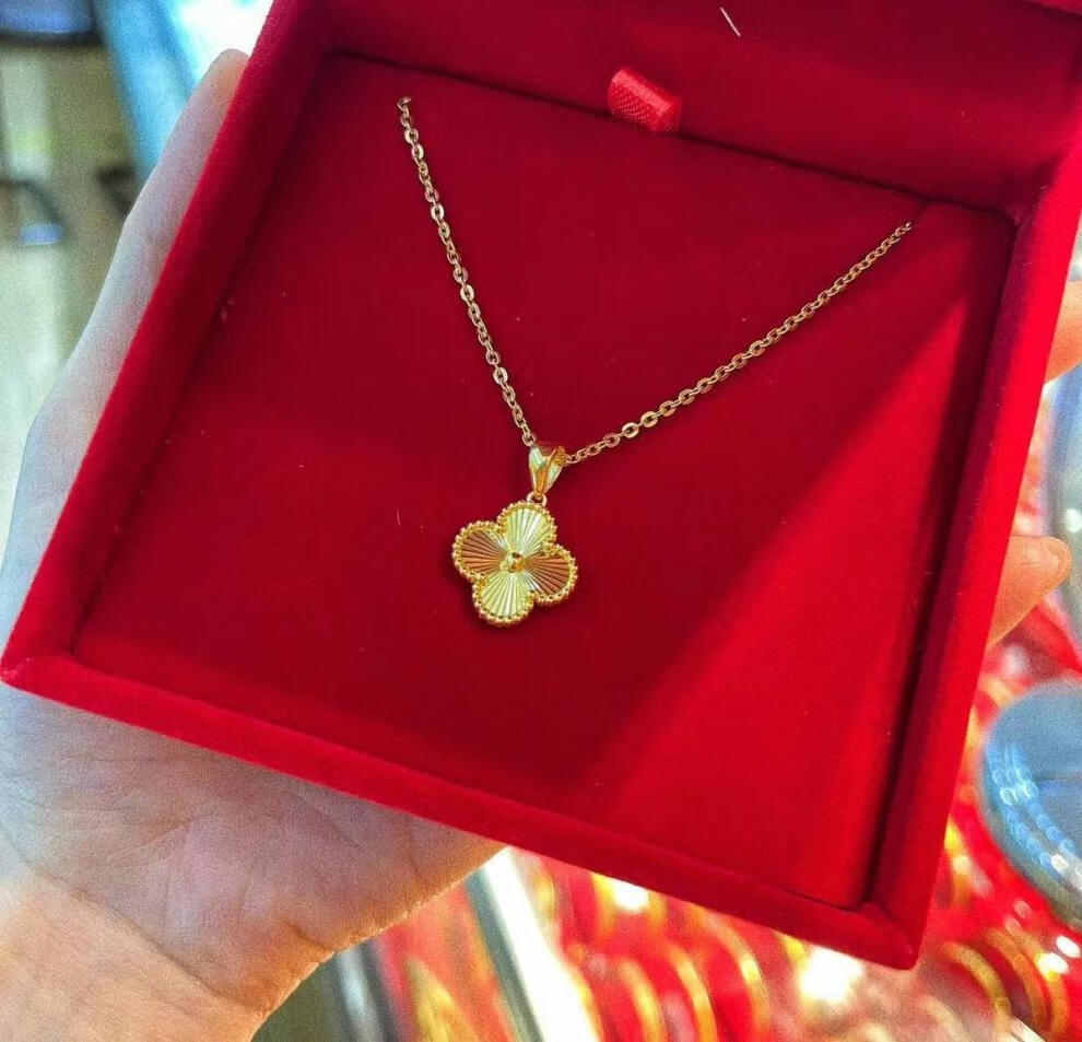 Vatican-made old Phoenix gold shop model four-leaf clover five-flower necklace women's gold-wrapped silver light luxury golden gift for girlfriend without fading