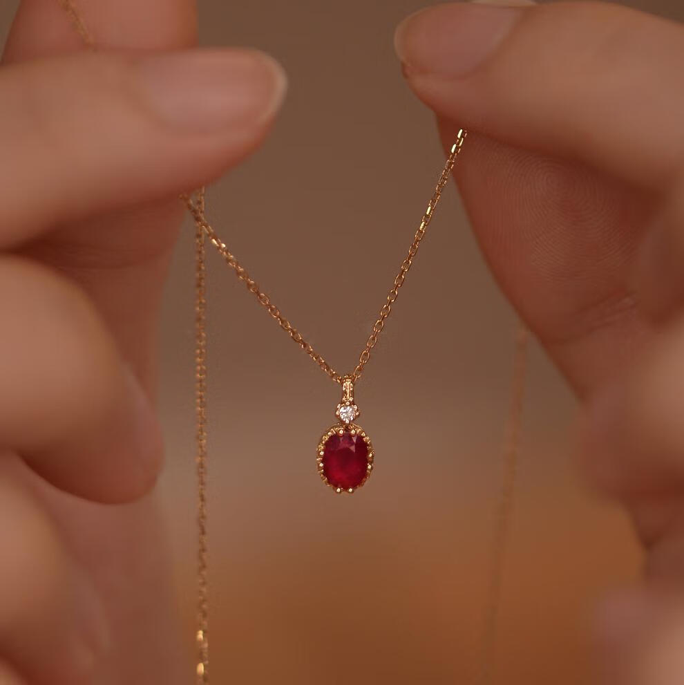 Chila plated 18k gold ball edge diamond-cut ruby necklace women's French retro compact and exquisite light luxury niche clavicle chain