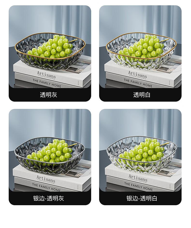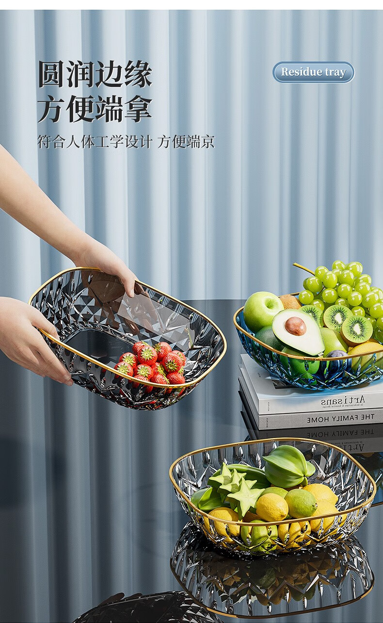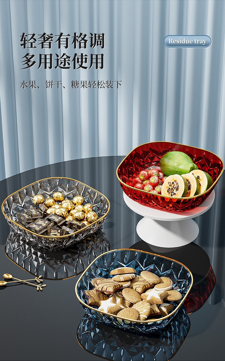 Porphyry Oak Modern Light Luxury Fruit Plate Living Room Home High-end Coffee Table Snack Candy Nut Plate High-end Dried Fruit Display Plate Transparent Platinum Edge 2 Pack Food Grade Material