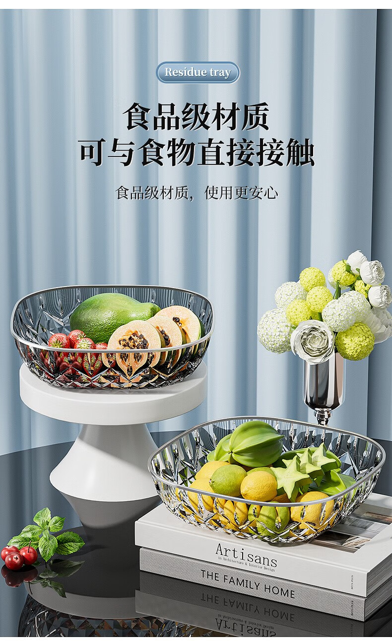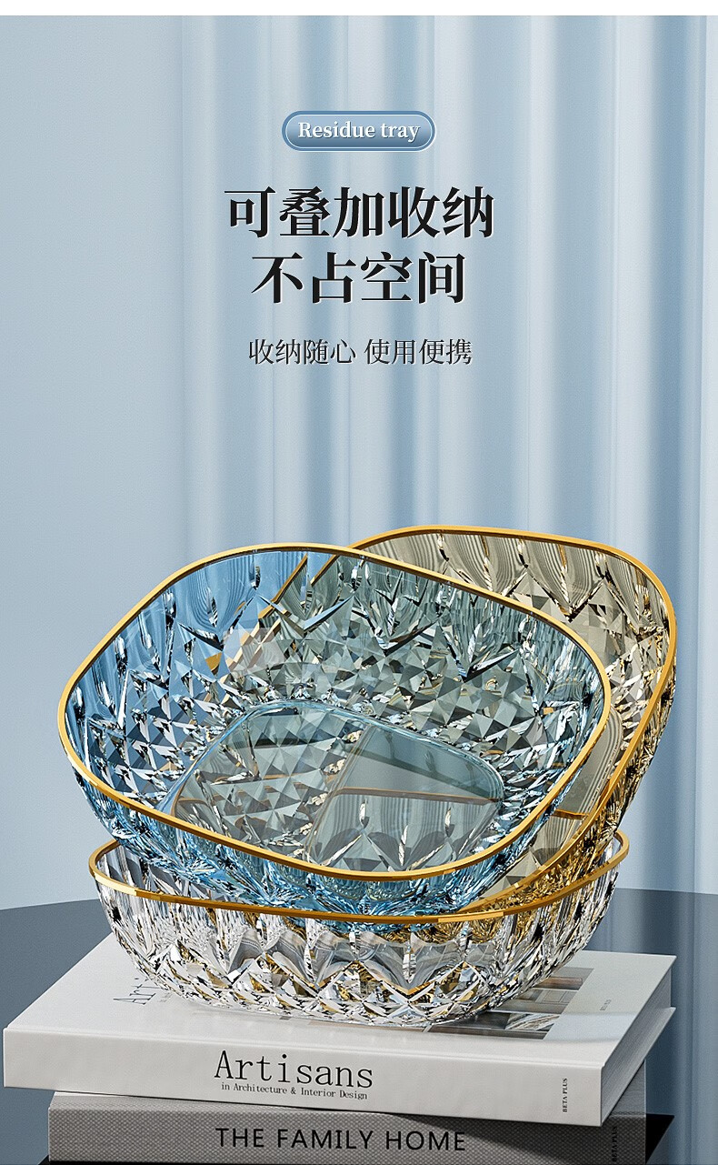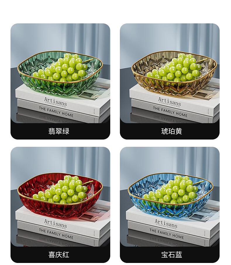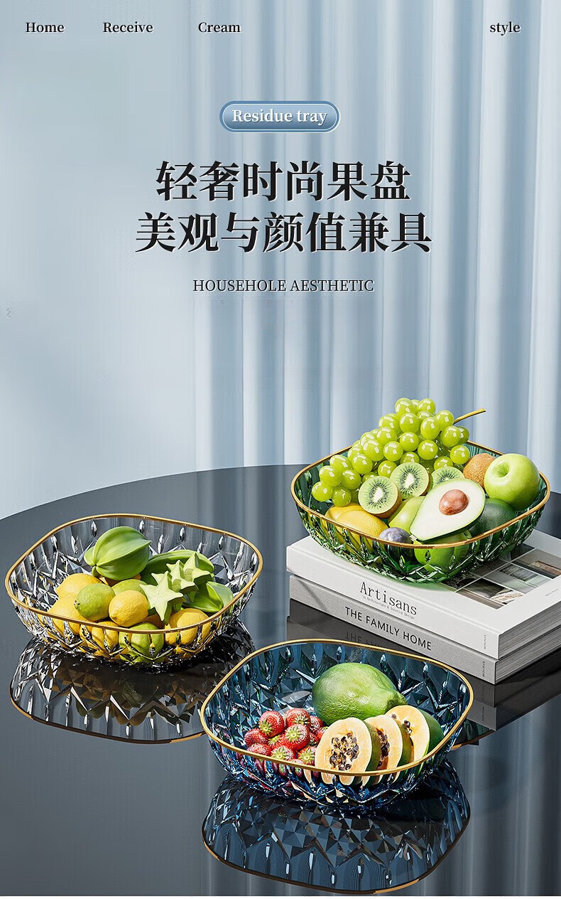 Porphyry Oak Modern Light Luxury Fruit Plate Living Room Home High-end Coffee Table Snack Candy Nut Plate High-end Dried Fruit Display Plate Transparent Platinum Edge 2 Pack Food Grade Material