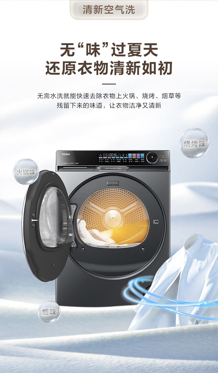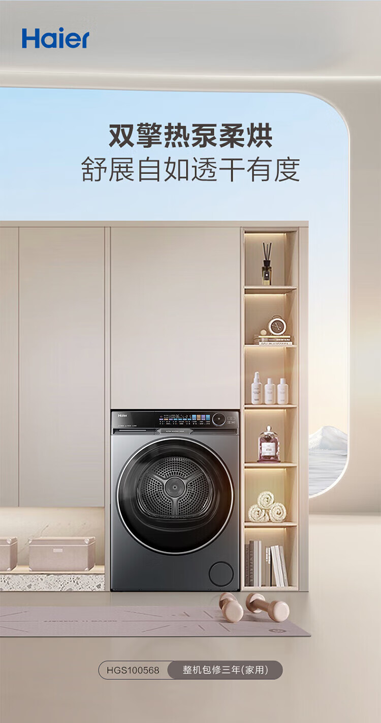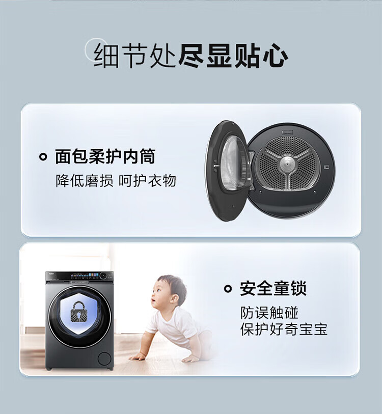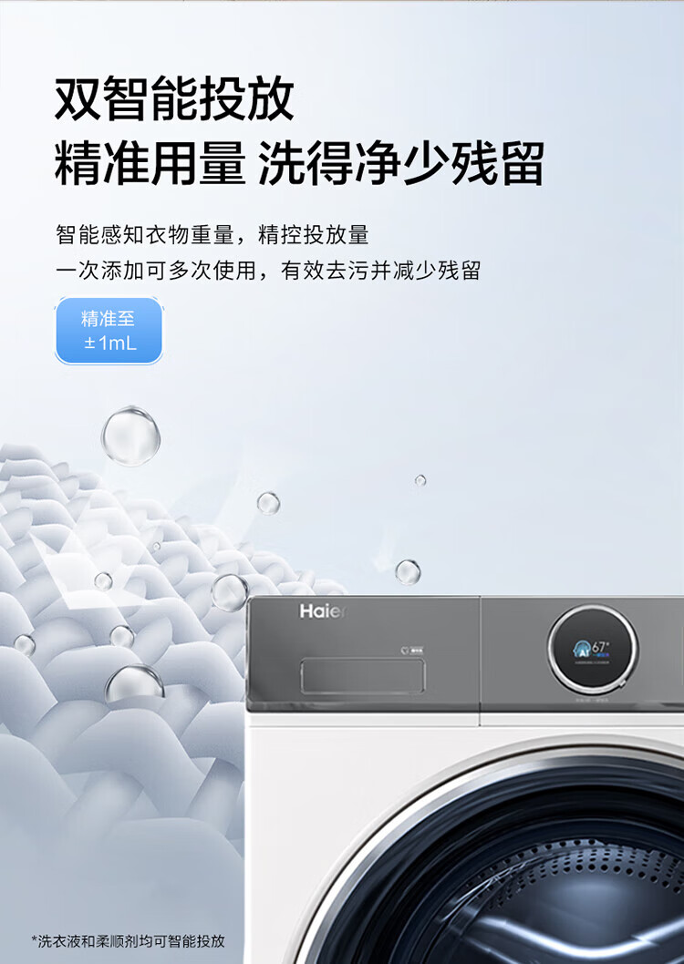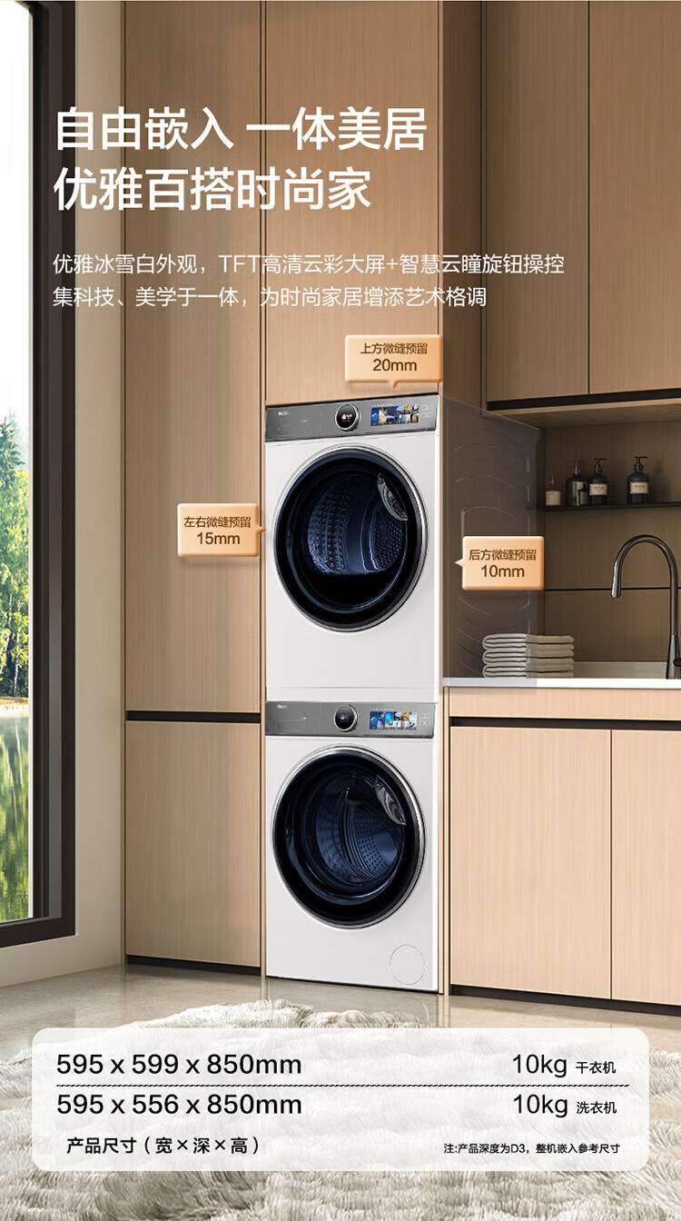 Haier Yunxi 4.0 washing and drying set 77EW drum 10kg washing machine + dual-engine heat pump dryer household washing and drying set combination National subsidy 12kg 67E large-tube washing machine + Yunxi 77E dual-engine heat pump dryer