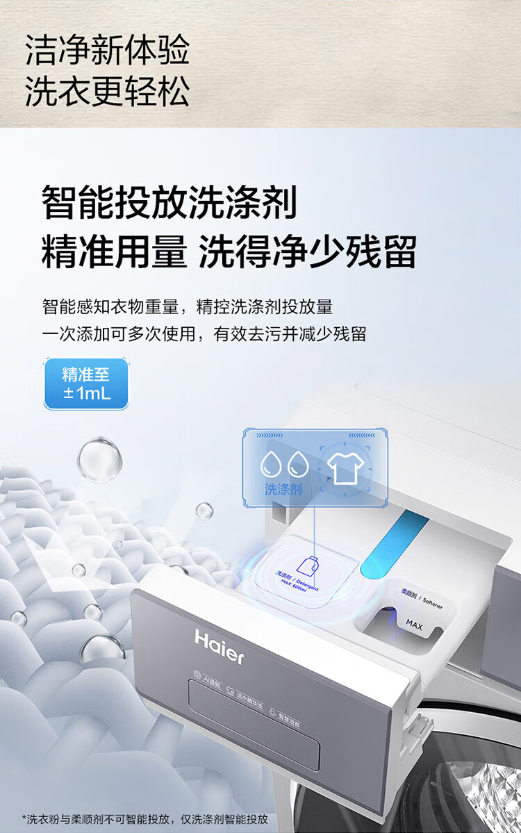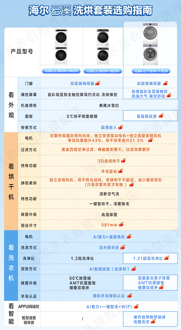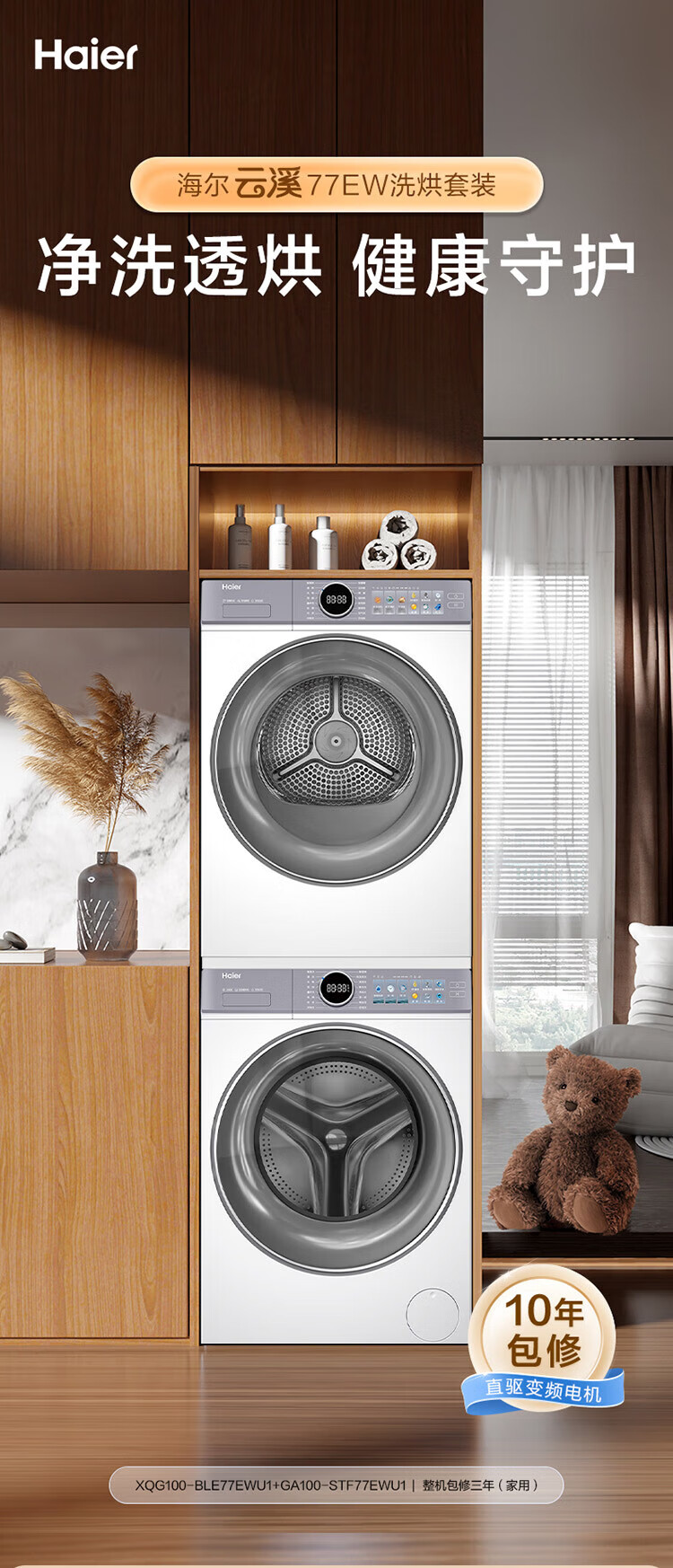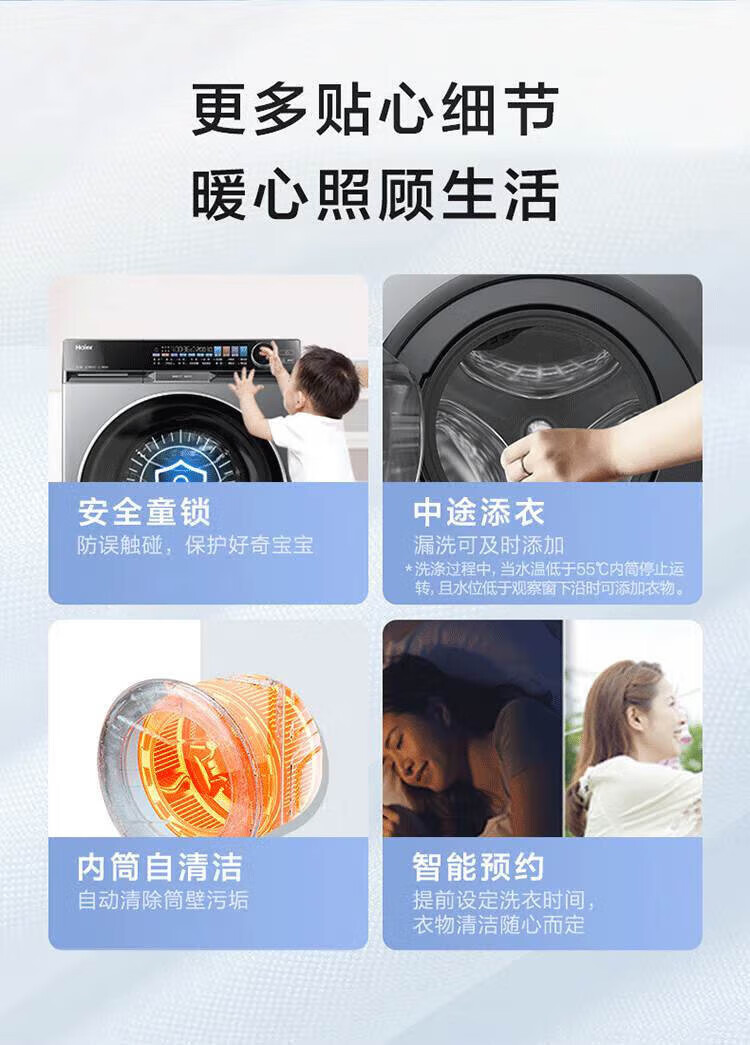 Haier Yunxi 4.0 washing and drying set 77EW drum 10kg washing machine + dual-engine heat pump dryer household washing and drying set combination National subsidy 12kg 67E large-tube washing machine + Yunxi 77E dual-engine heat pump dryer