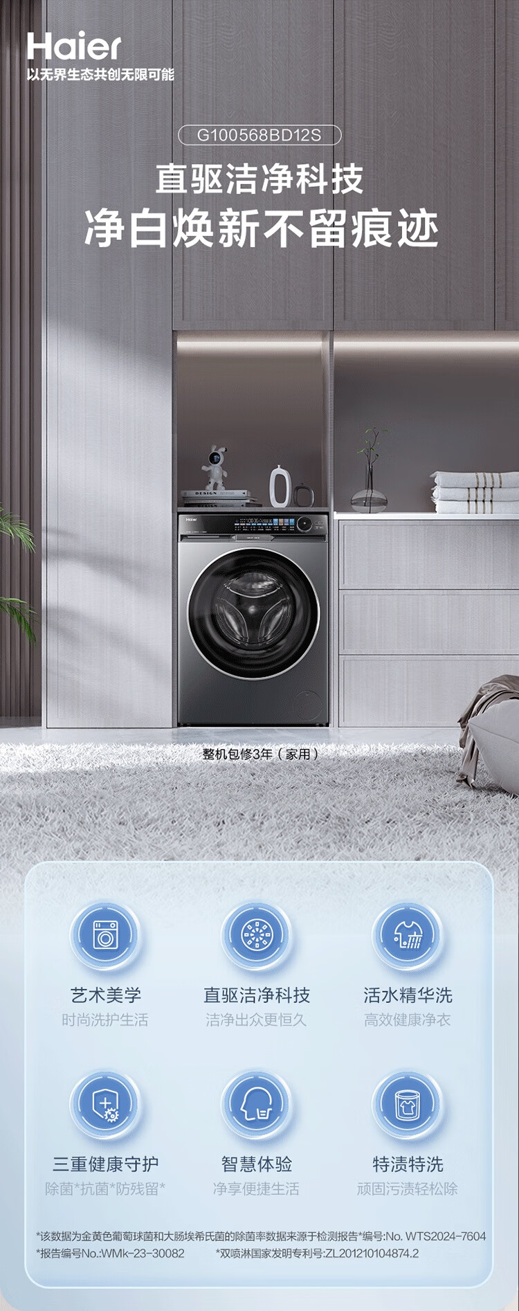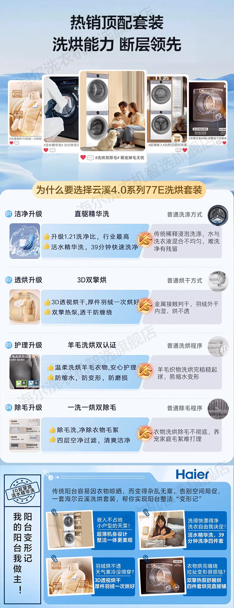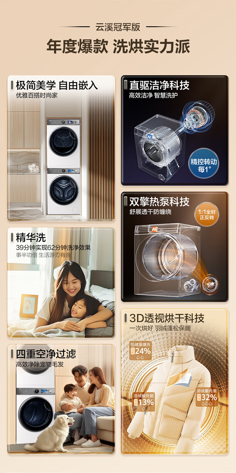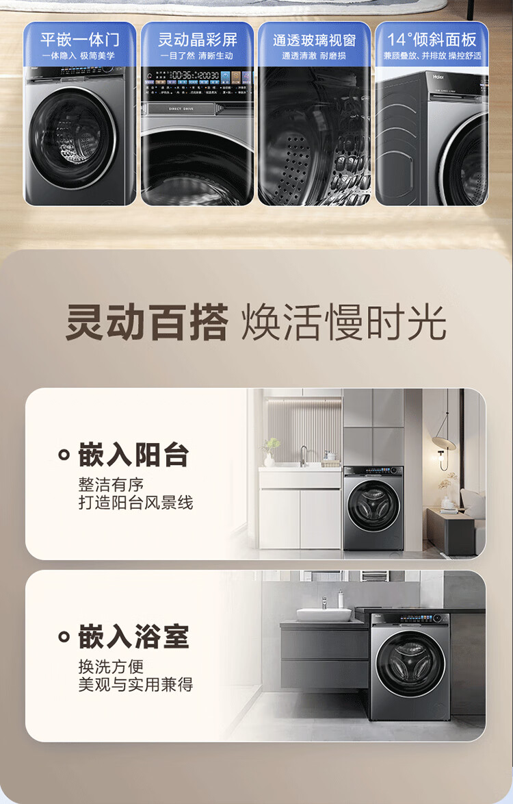 Haier Yunxi 4.0 washing and drying set 77EW drum 10kg washing machine + dual-engine heat pump dryer household washing and drying set combination National subsidy 12kg 67E large-tube washing machine + Yunxi 77E dual-engine heat pump dryer