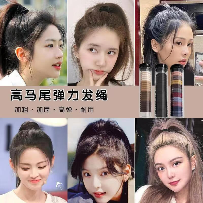 New canned high ponytail headband hair tie for girls, high elasticity and durable rubber band leather headband, 1 can of 20 pieces, Morandi color