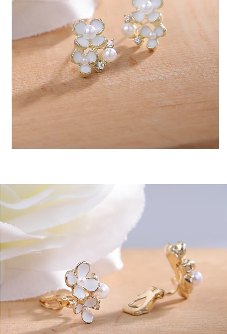 Xingluo Xueluo Gardenia pure white flower ear clips for women without piercing earrings for women sweet temperament painless mosquito coil ear clips a pair of mosquito coil ear clips (without pierced ears)