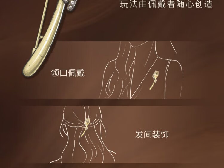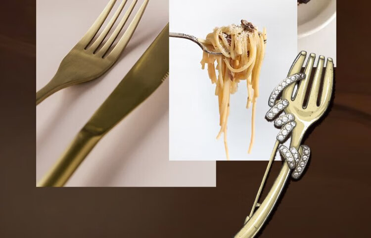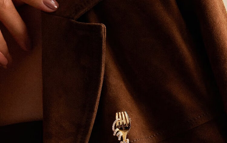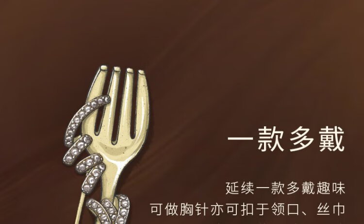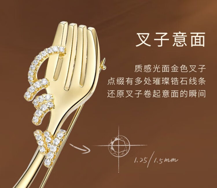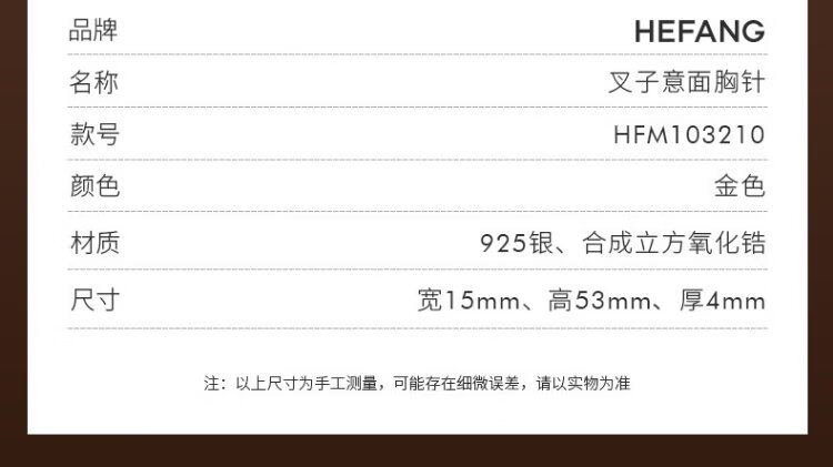 HEFANG He Fang Jewelry Fork Pasta Brooch Elegant Pin Ladies High-end Birthday Gift for Girlfriend Gold