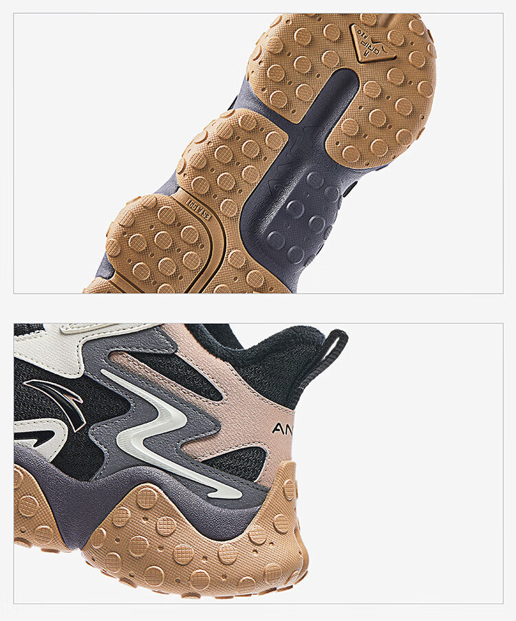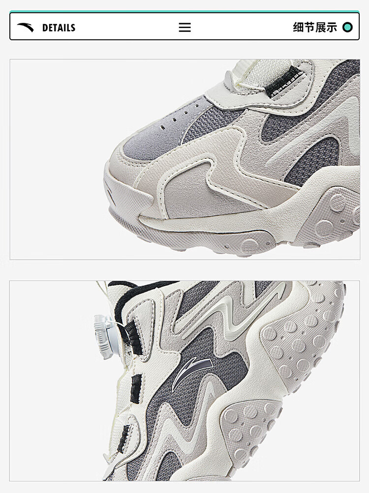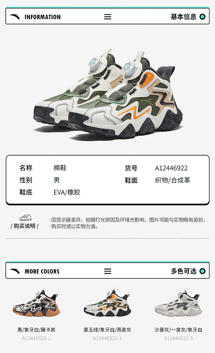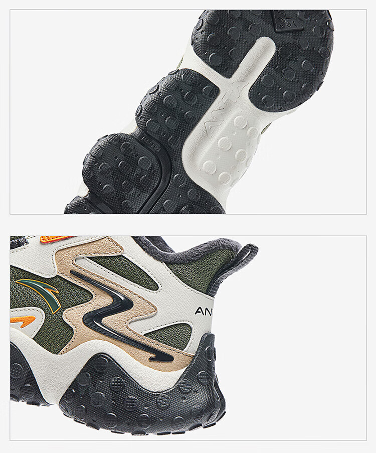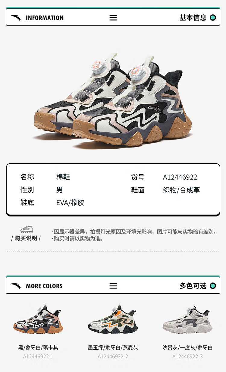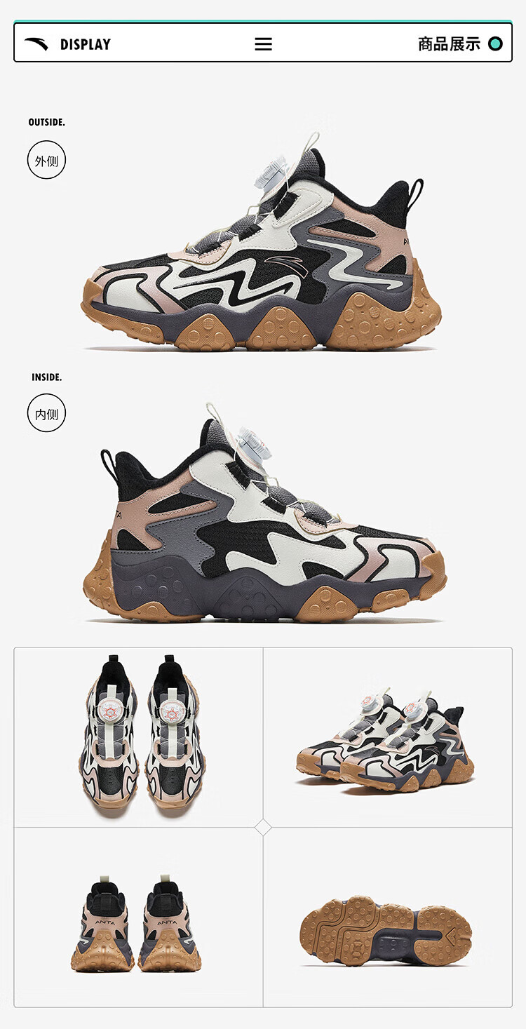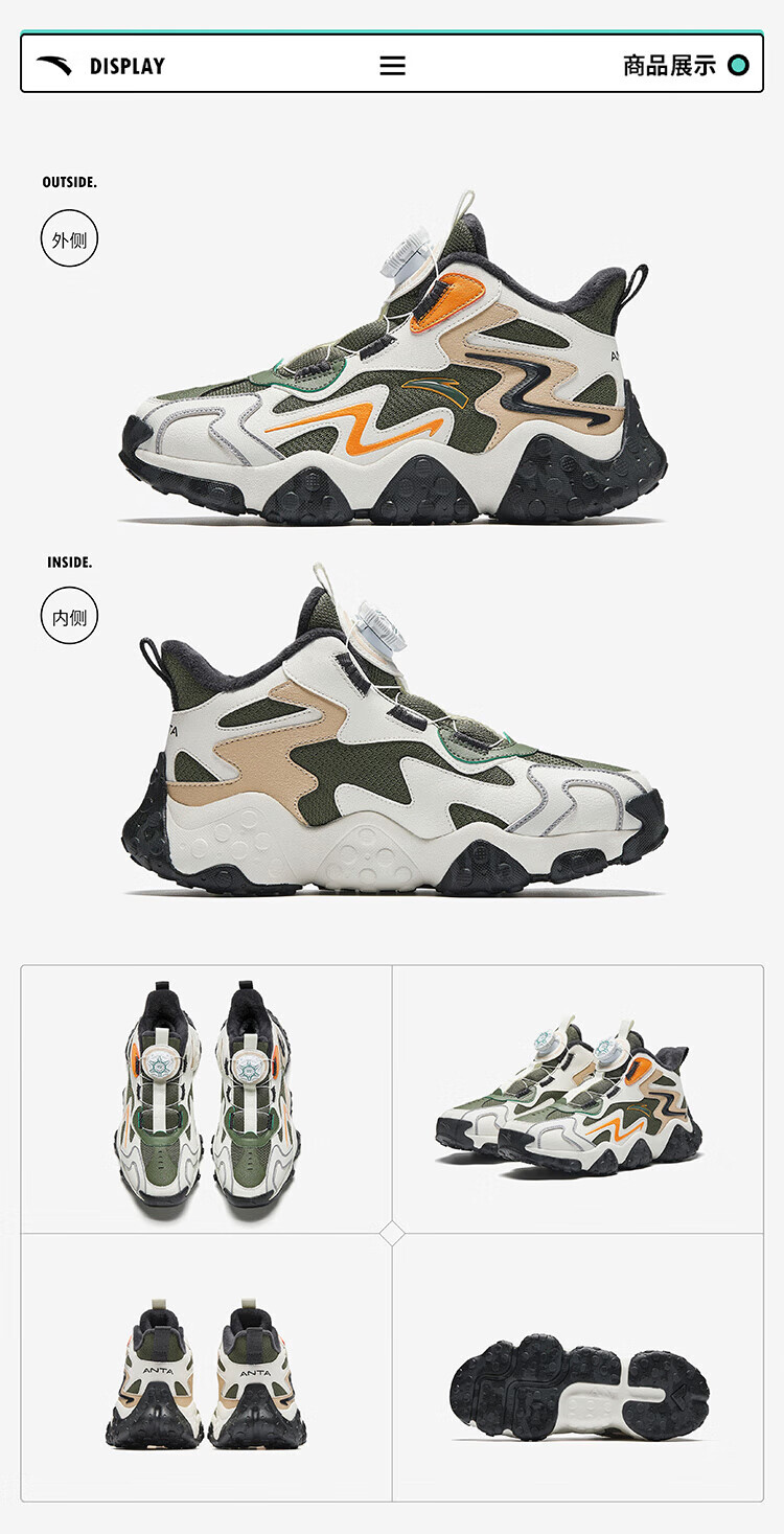 ANTA Children's Cotton Shoes Men's Big Children's Shoes 2024 Winter Plush Warm Knob Buckle Snow Non-Slip Rock High Top Cotton Boots Black/Ivory/Lotus Khaki-1 35