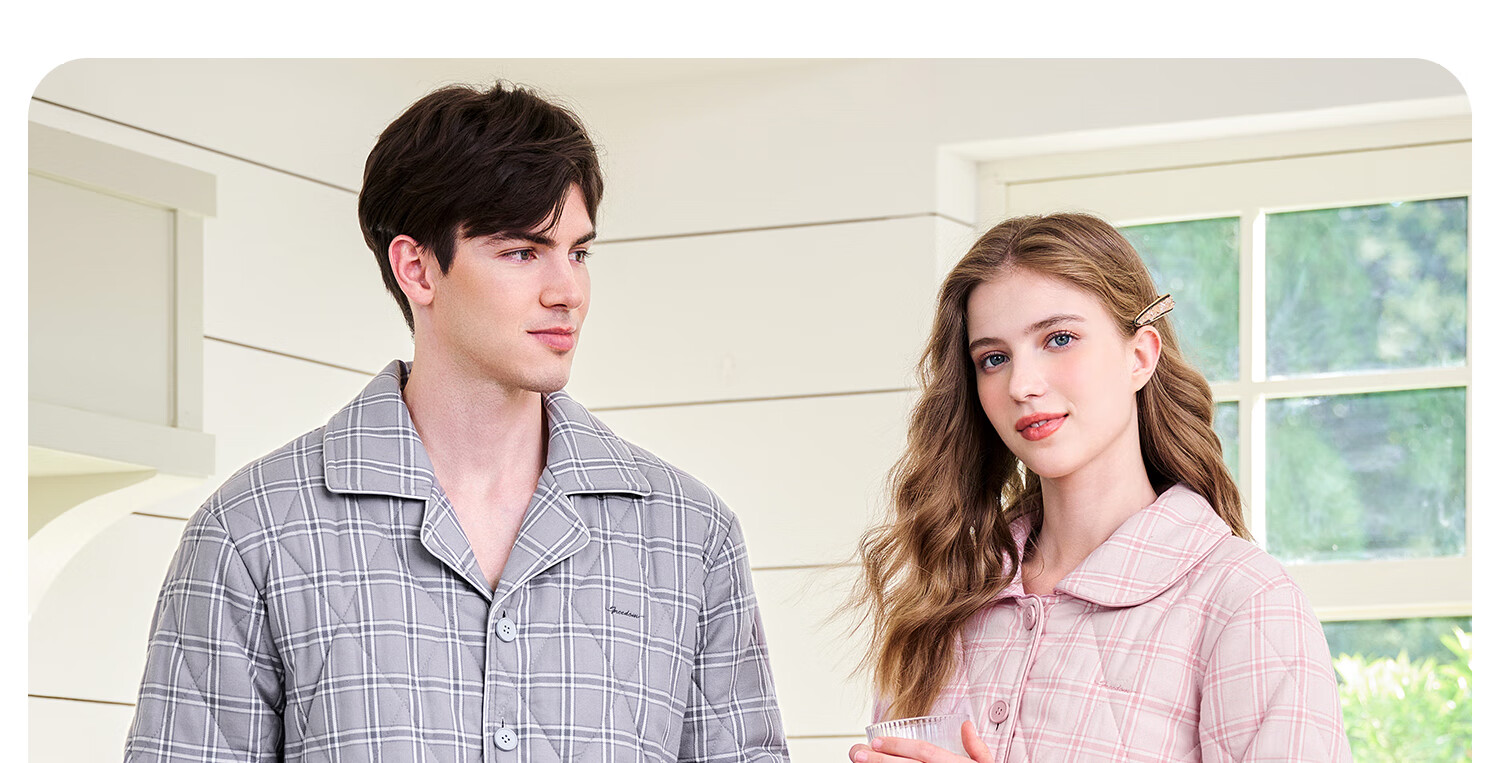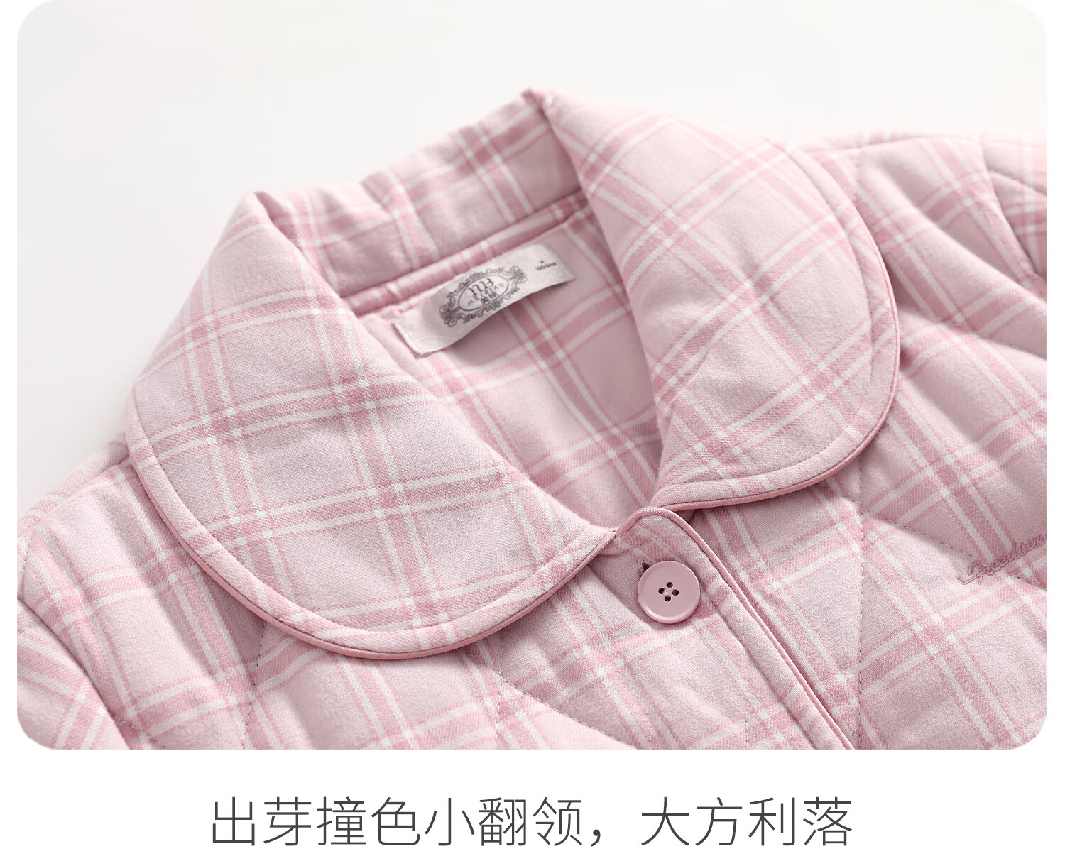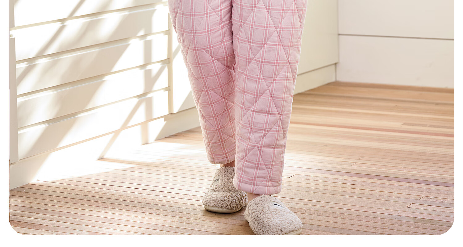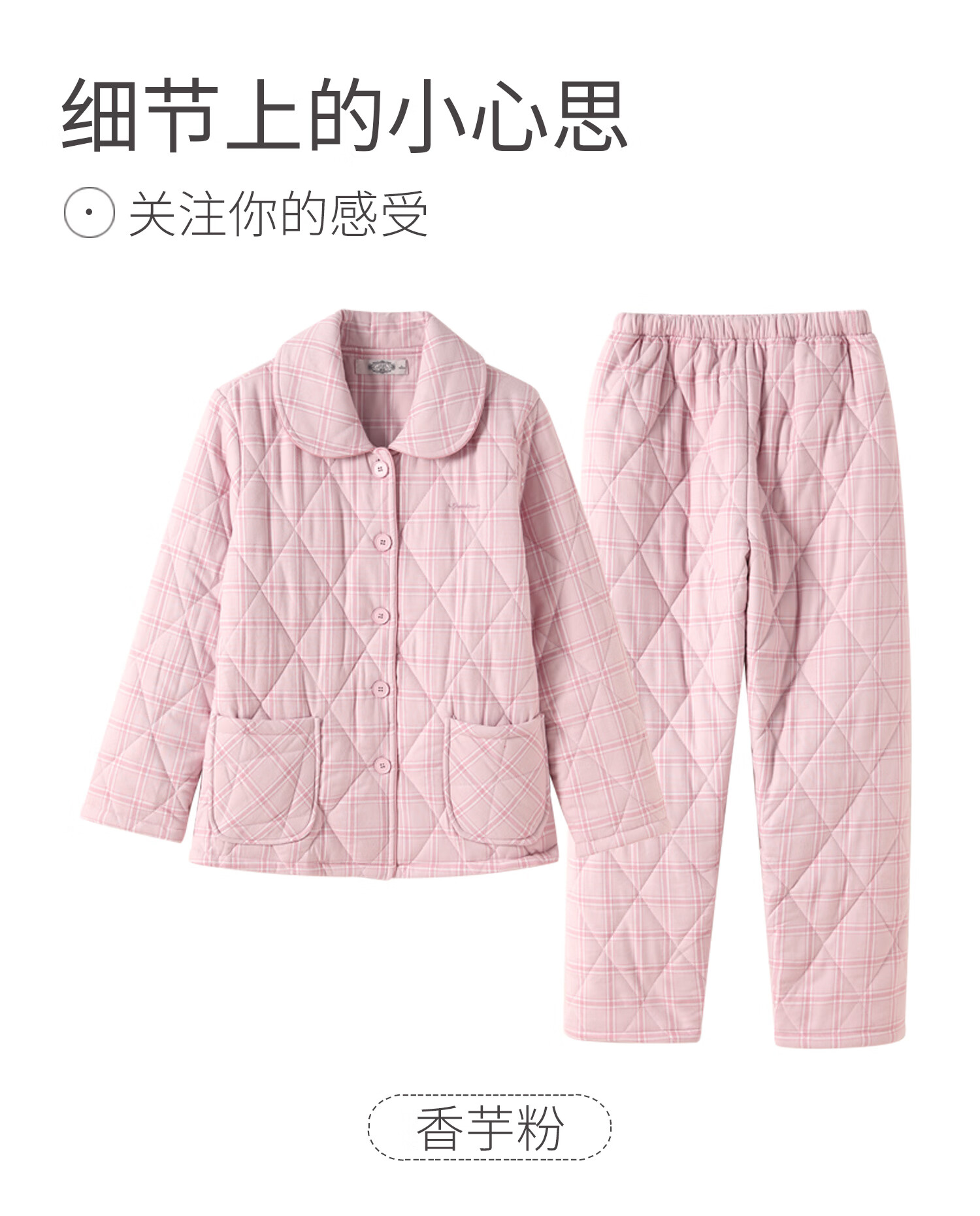 American Standard's new couple's three-layer quilted thermal pajamas for women winter all-cotton quilted padded clothes plaid can be worn outside home clothes for men Taro powder XL