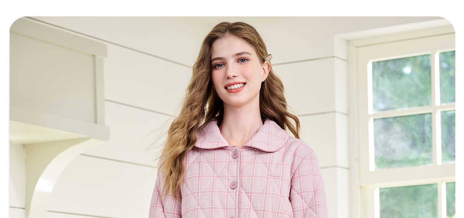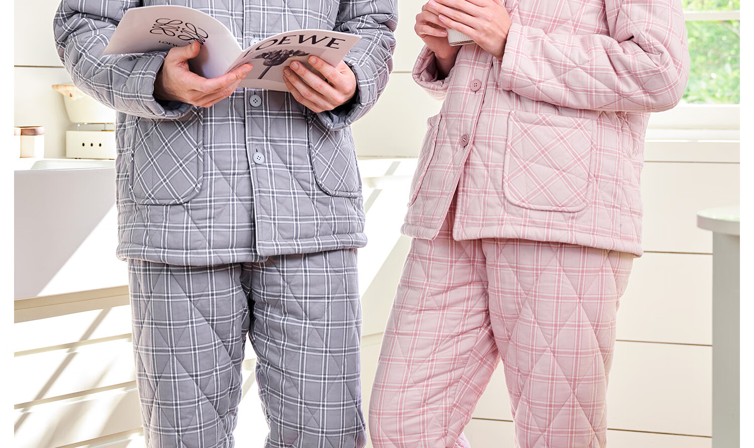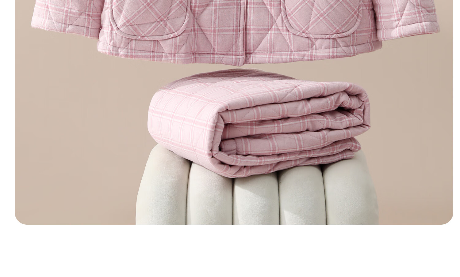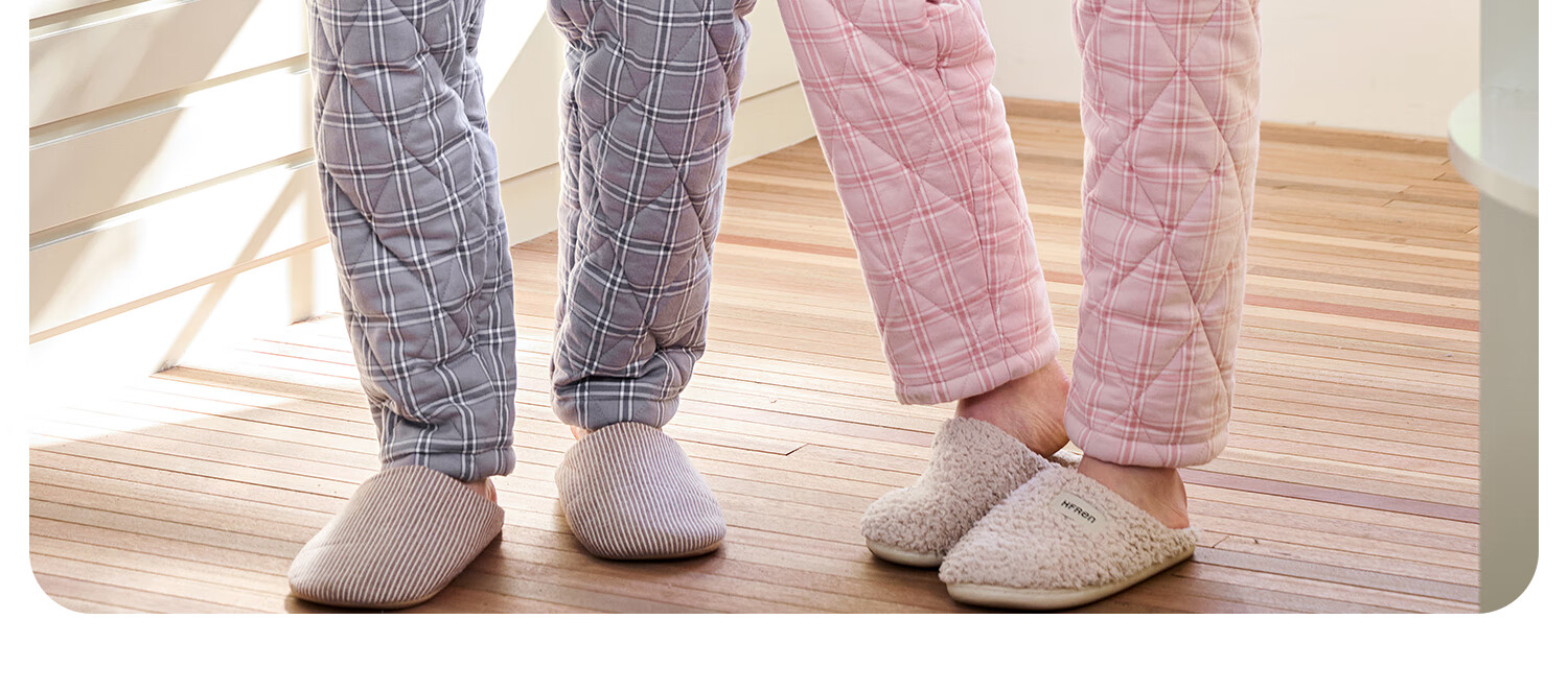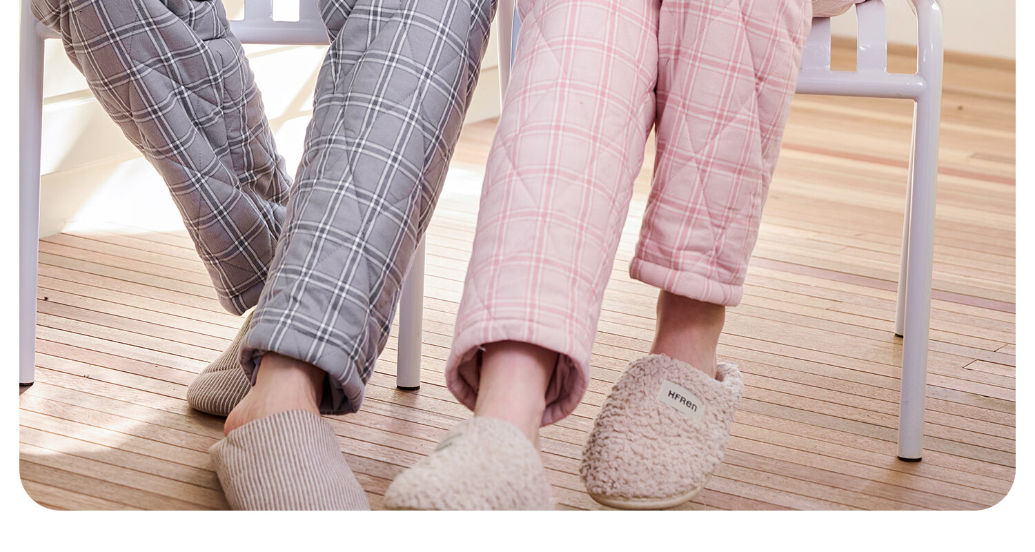 American Standard's new couple's three-layer quilted thermal pajamas for women winter all-cotton quilted padded clothes plaid can be worn outside home clothes for men Taro powder XL