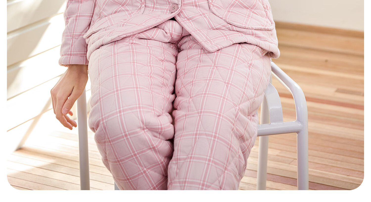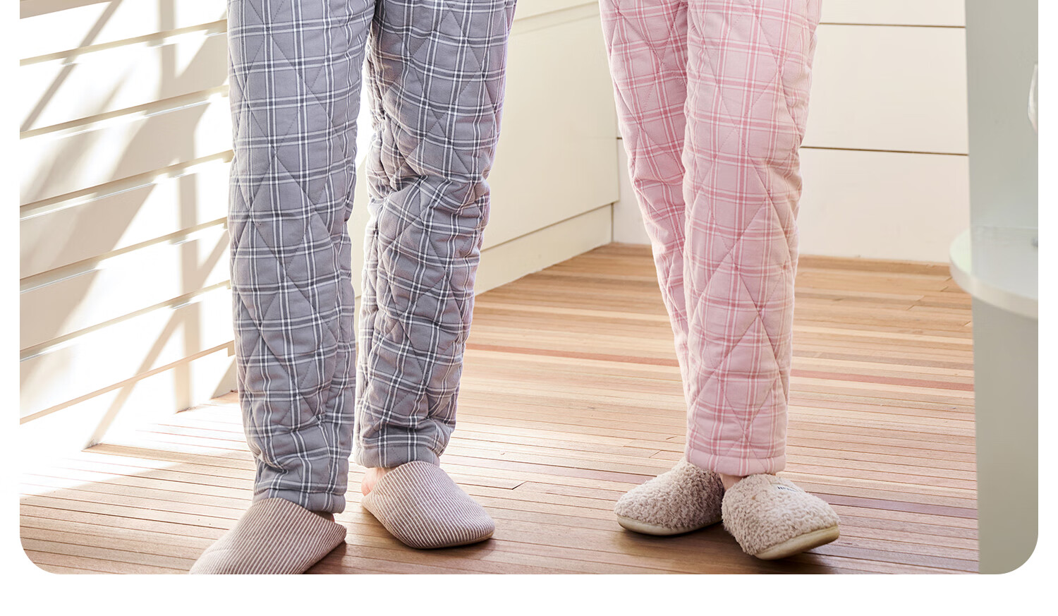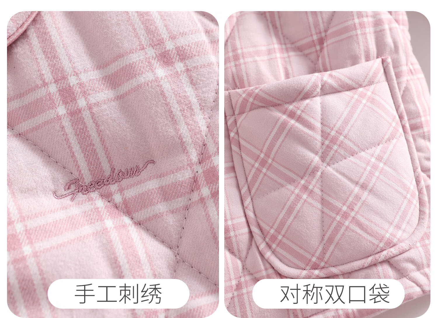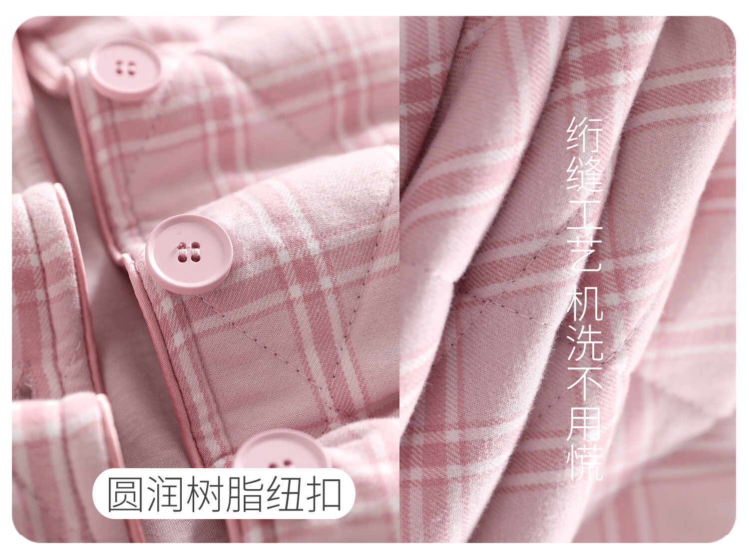 American Standard's new couple's three-layer quilted thermal pajamas for women winter all-cotton quilted padded clothes plaid can be worn outside home clothes for men Taro powder XL