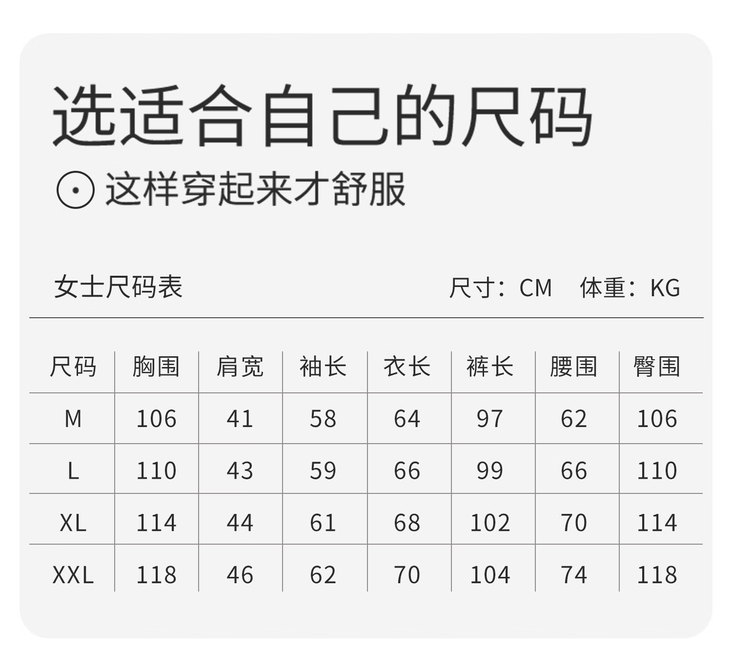 China (cm) 160-165/84-86 165-170 / 88-90 167-172 / 92-96 168-173 / 98-102 170-176 / 106-110