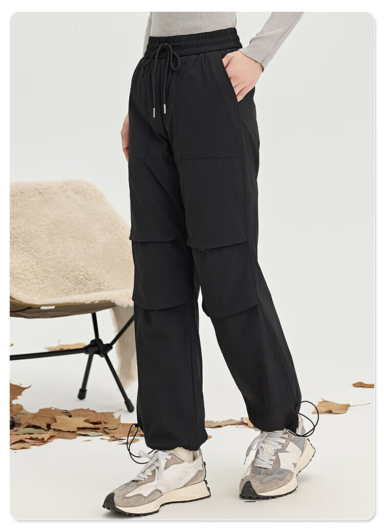 Snow Flying Women's Down Pants Winter Elastic Waist Warm Duck Down Pants Solid Color Versatile Outdoor Commuting Drawstring Pants Black L (170)