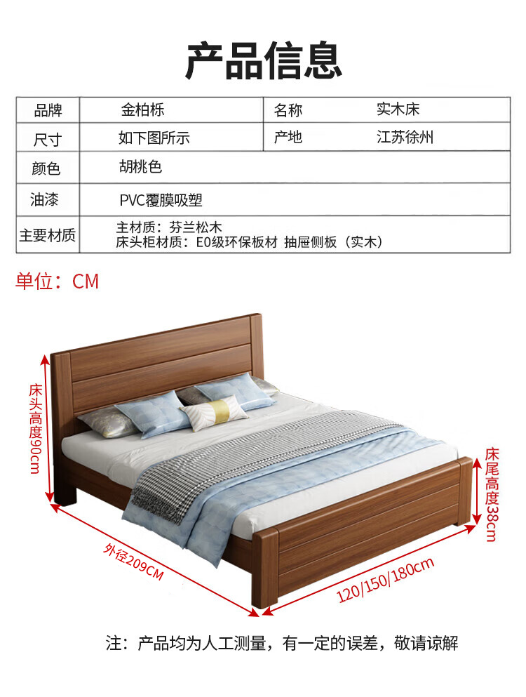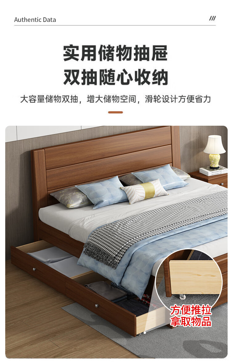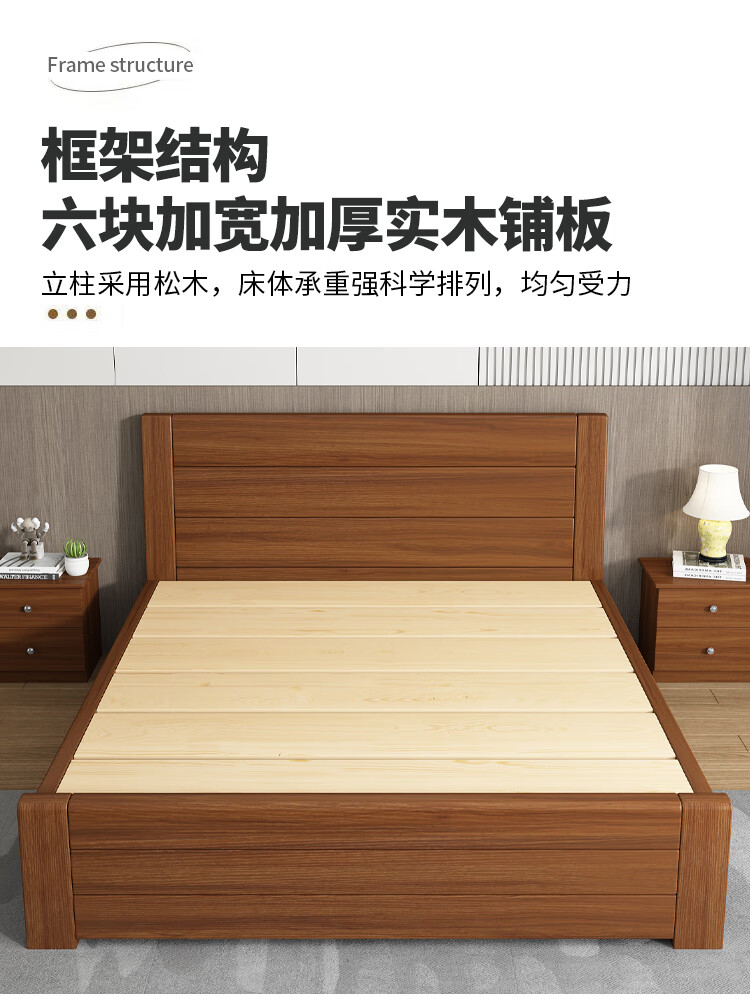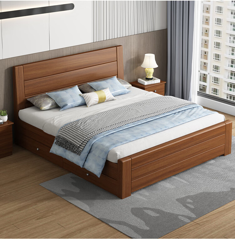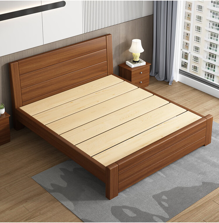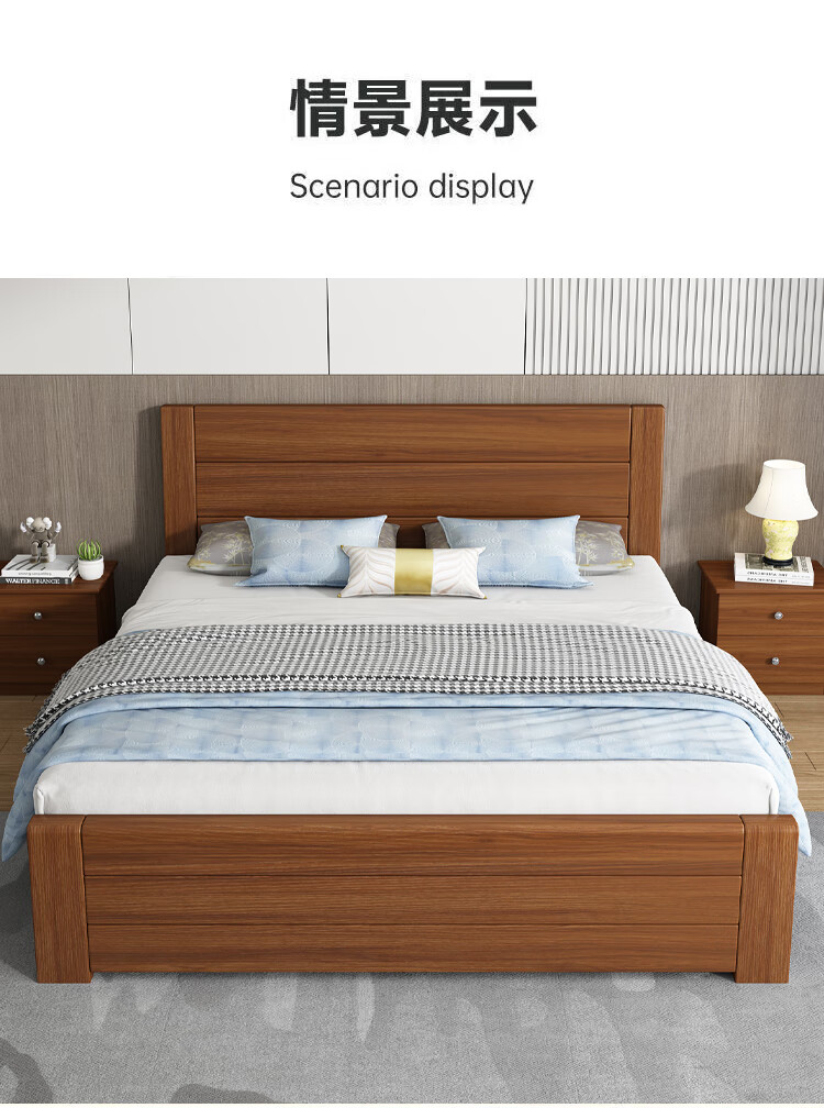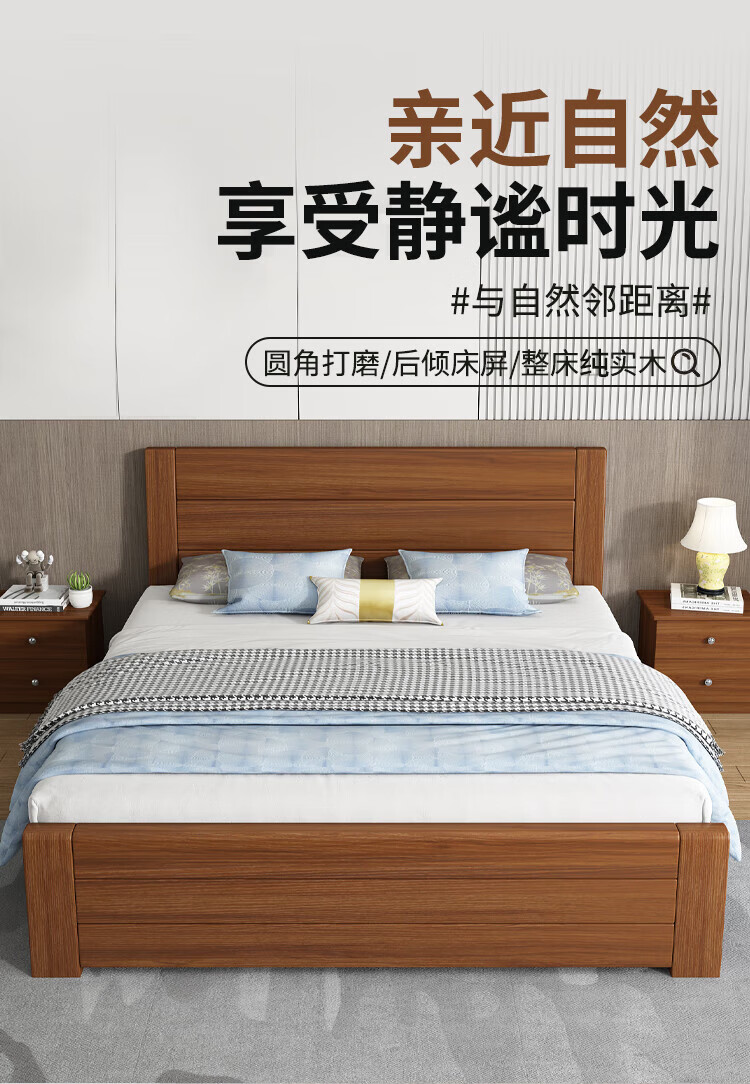 Kimber oak upgraded bed board solid wood bed new Chinese double bed walnut color wooden bed simple master bedroom home single bed walnut color single bed 1.5*2 meters upgraded bed board