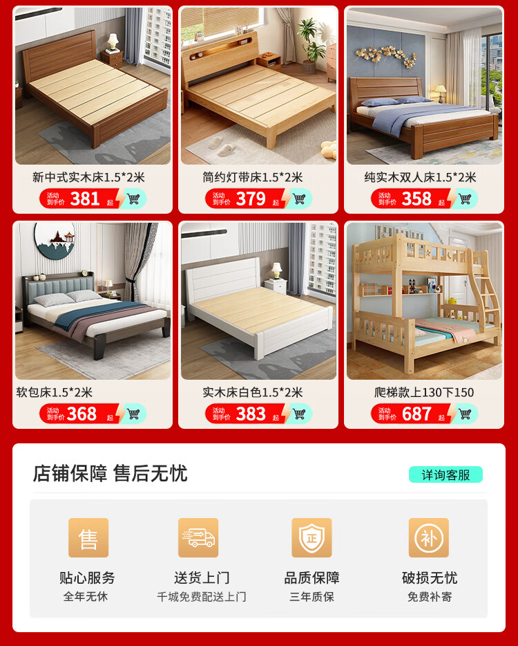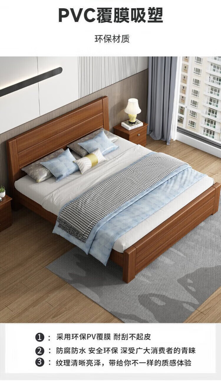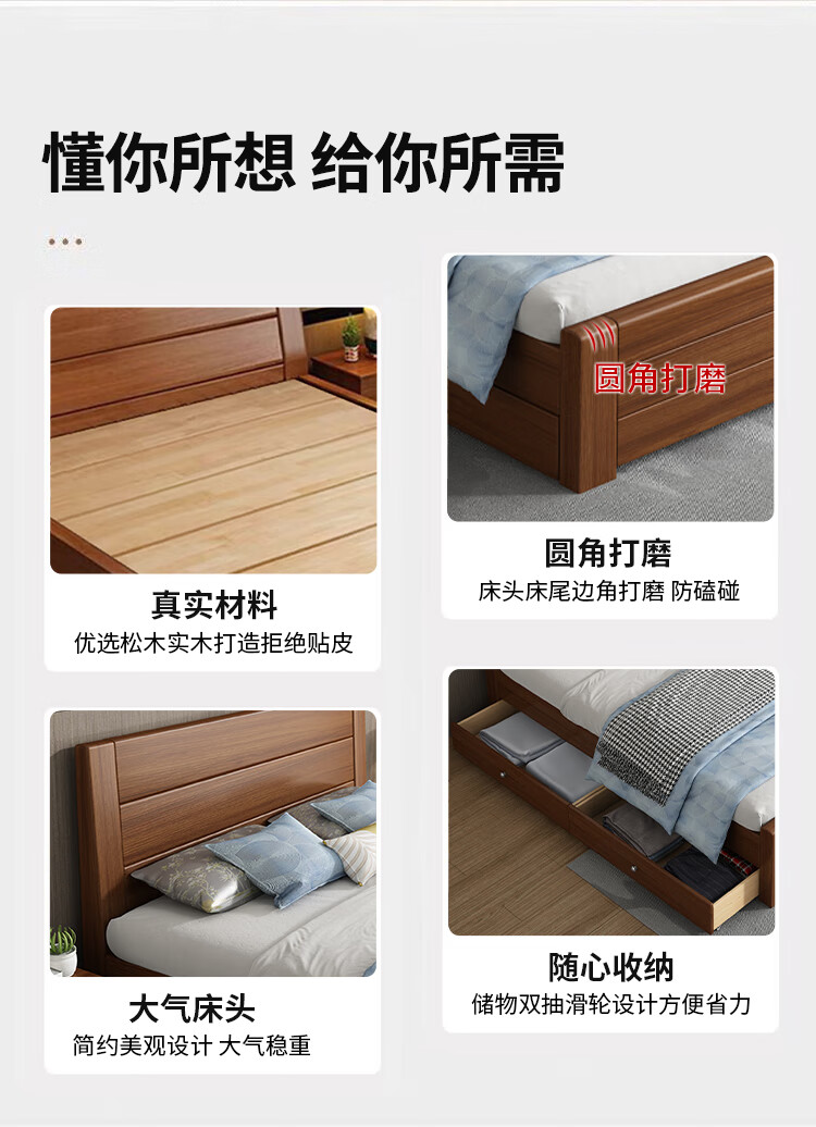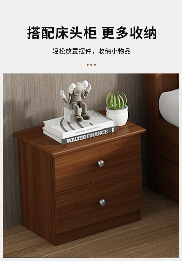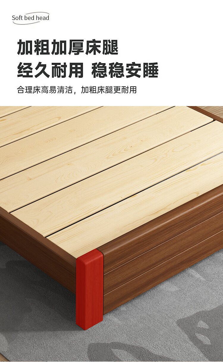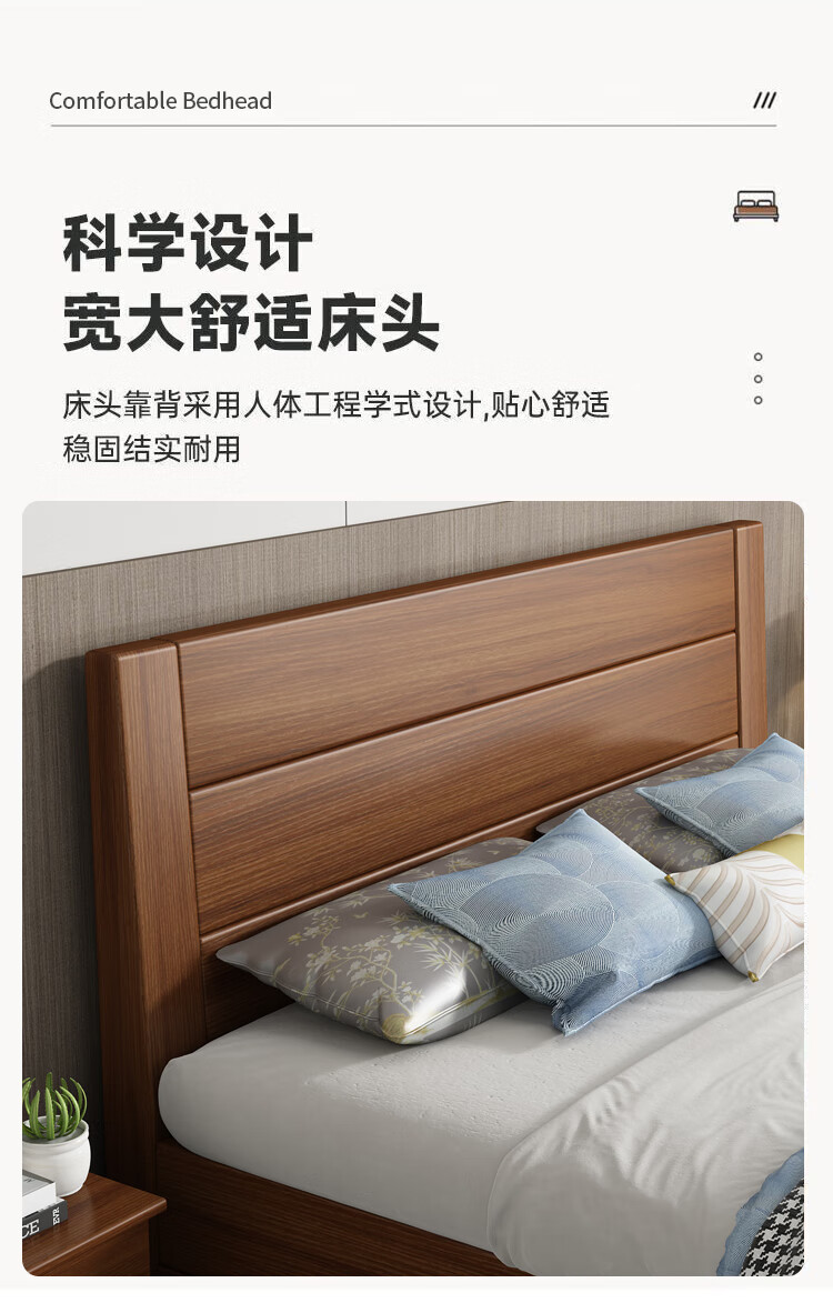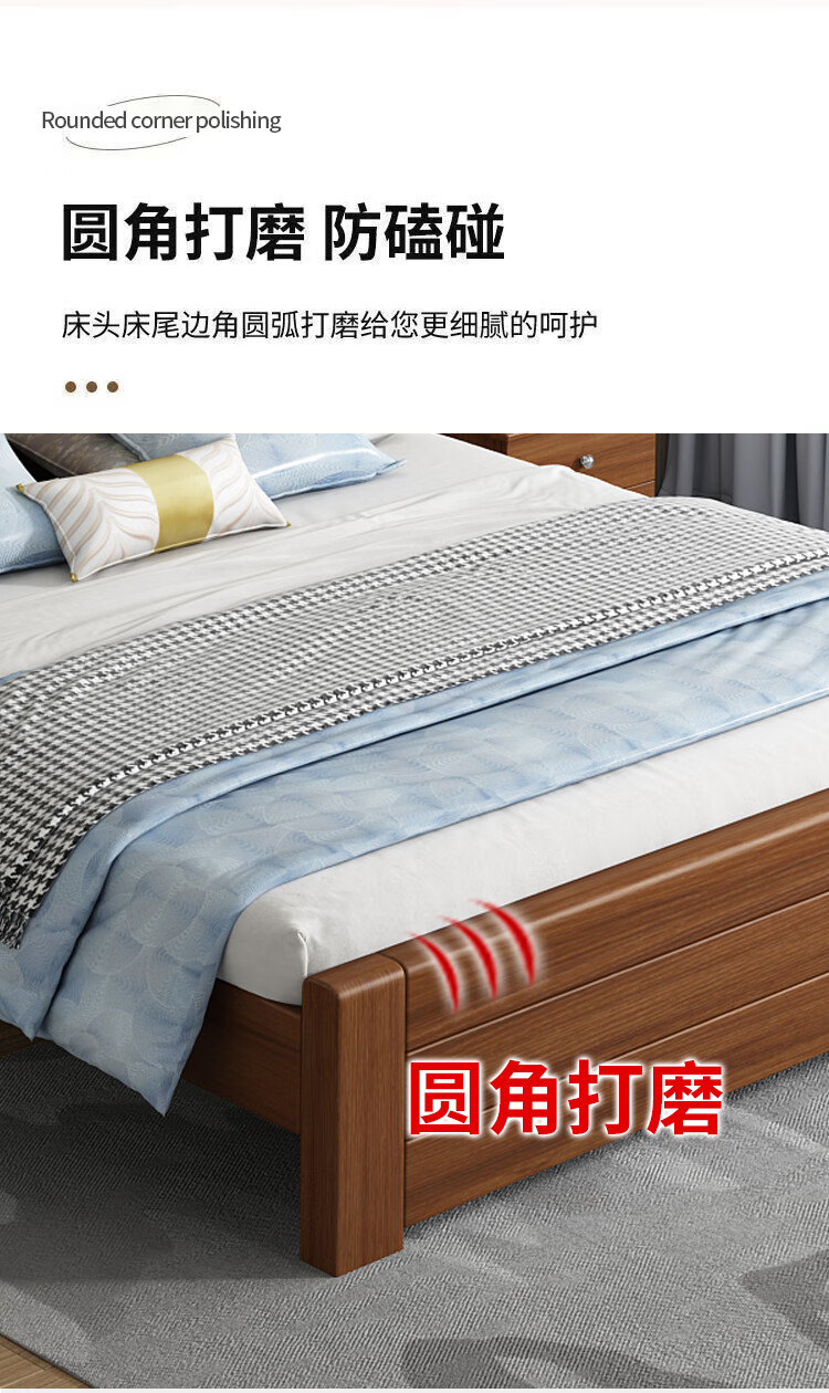 Kimber oak upgraded bed board solid wood bed new Chinese double bed walnut color wooden bed simple master bedroom home single bed walnut color single bed 1.5*2 meters upgraded bed board