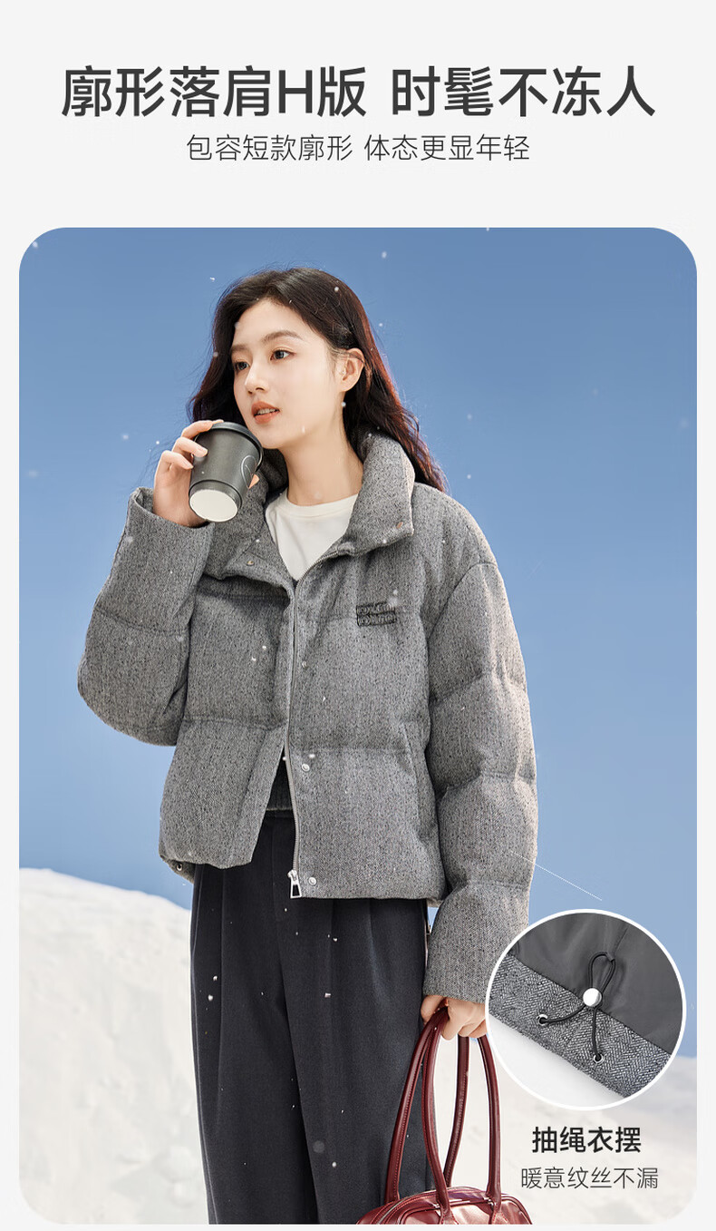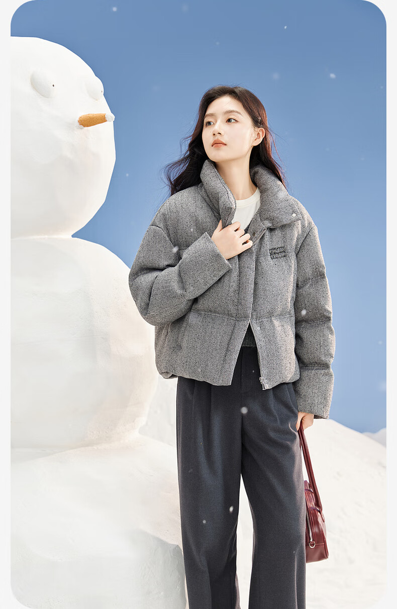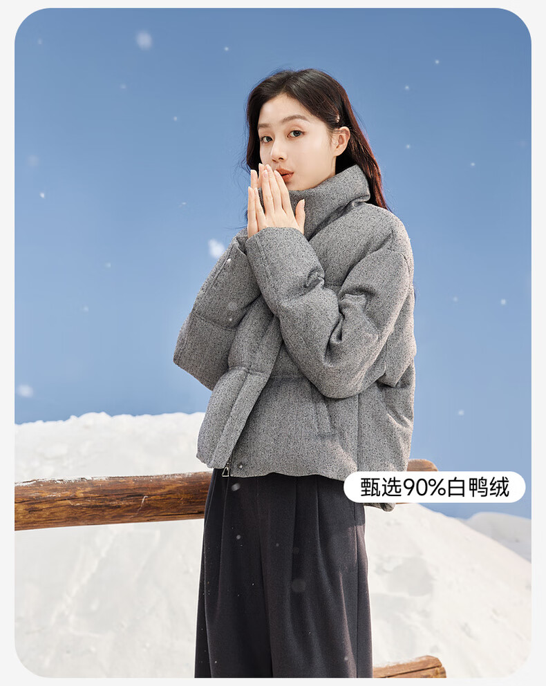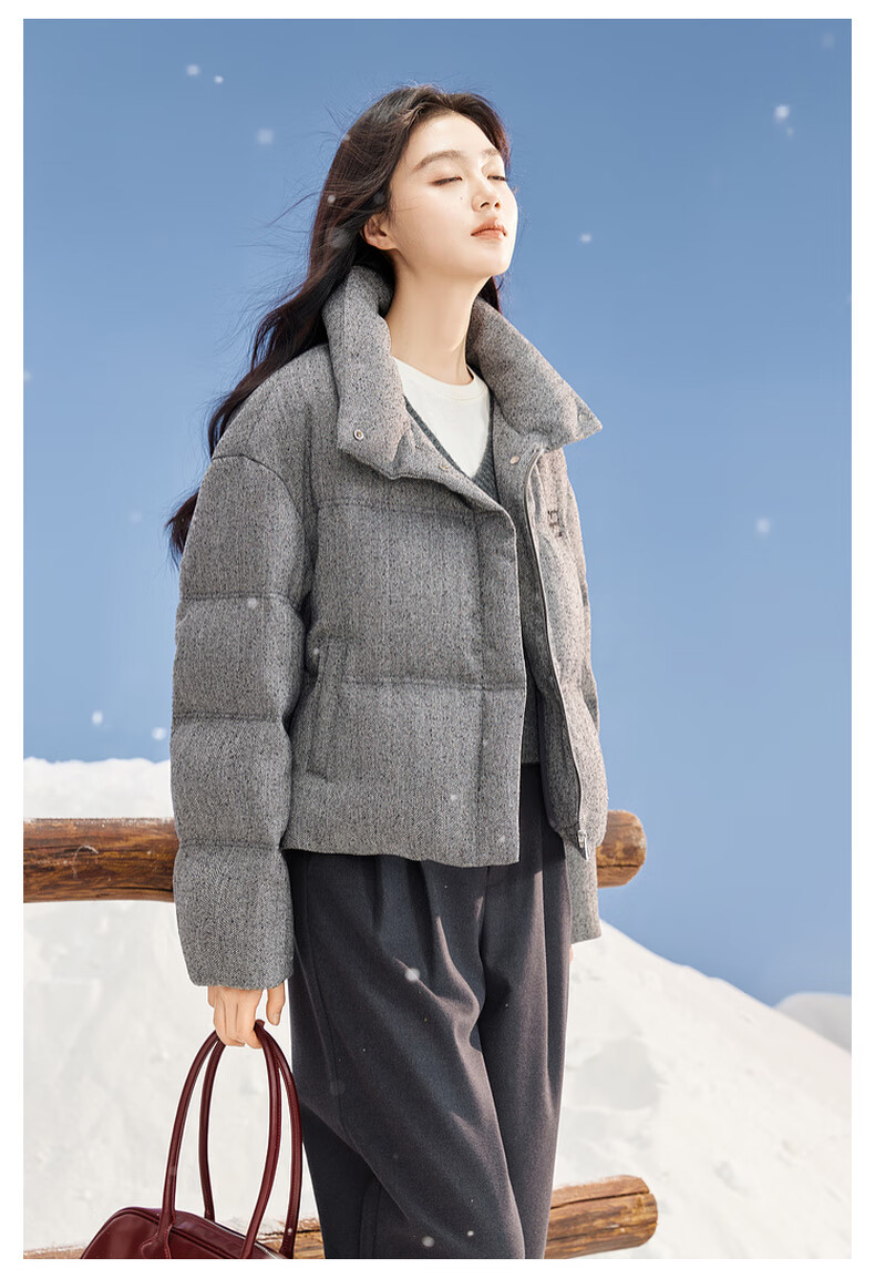 Xiangying Stand Collar Gray Down Jacket Women's Short 2025 Winter New Small High-end Bread Jacket Gray S